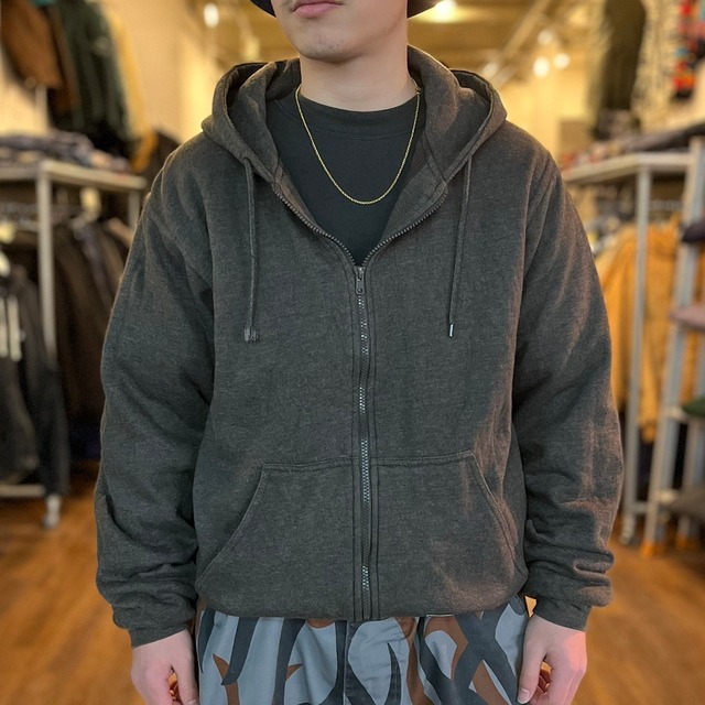 【裏サーマル】BERNE Zip Up Hoodie 裏地サーマルのダブルフェイスジップアップフーディーのご紹介。 やっぱりダブルフェイスは別格にシルエットが良きです‼︎ 特有のアームホールの太さにふっくらとしたシルエットが堪りません 裾リブもしっかりと生きているので着丈を調節できる個体◎ 今時期はインナーとして大活躍の1着‼︎ 是非お早めにどうぞ。 着用モデル:163㎝ 56㎏ SIZE【M】 肩幅 約48.5㎝ 身幅 約60㎝ 袖丈 約65㎝ 着丈 約65㎝ 【コンディション】 フード紐にほつれありますが、その他特筆するようなダメージ等はございません。 ※ 当店の取り扱い商品の殆どがビンテージ古着になりますので明らかな計測ミスや着用に支障が出るレベルの大きなダメージ(アジとして捉えるには難しいレベル)の記載忘れ等が無い限りは返品、交換は受け付けておりません。