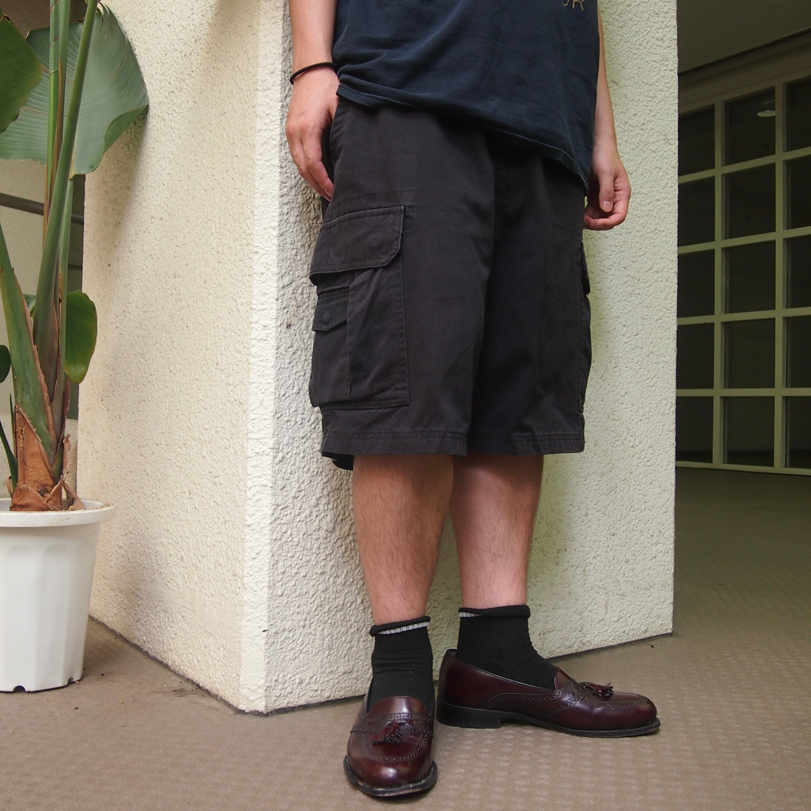 黒、太め、カーゴ、良ブランド、ポケットONポケット、人気の要素が詰め込まれた良いショーツです