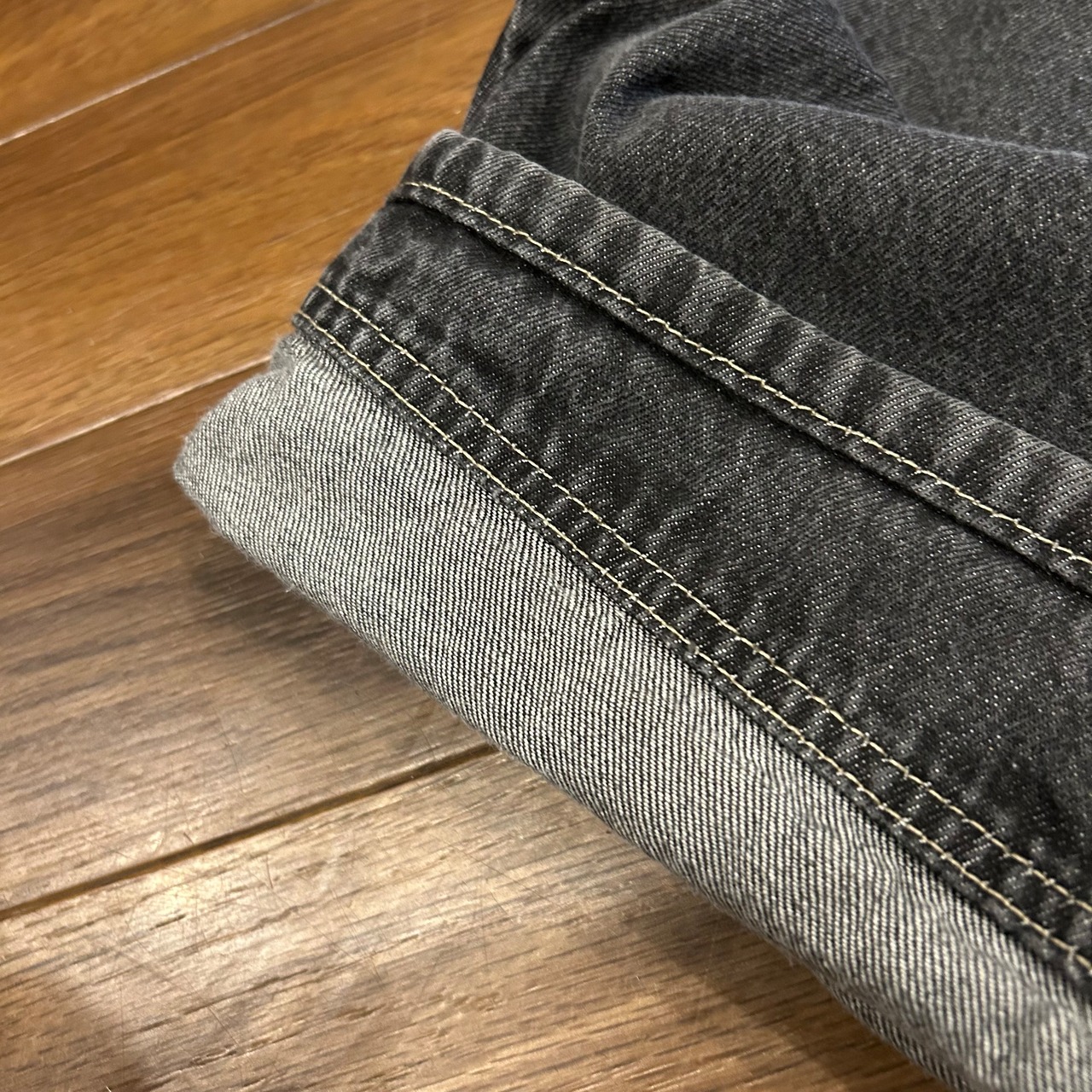 色落ち、ほつれ、1箇所横糸の白が飛び出しています。