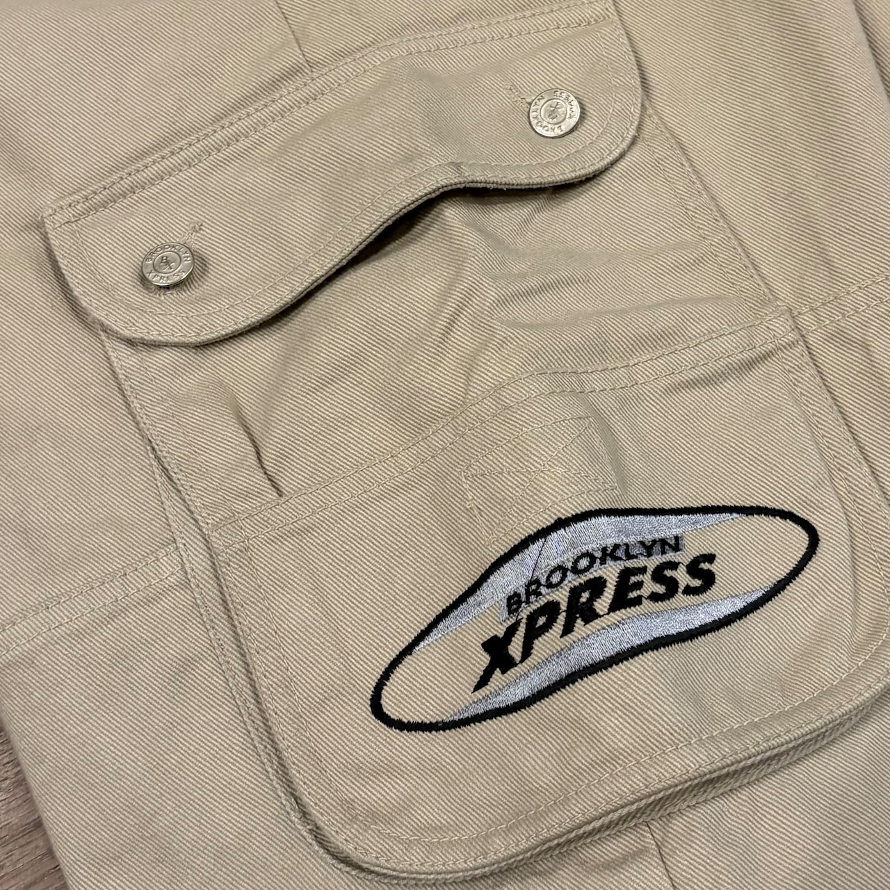 デッカいマチ付きポケットやストリートカルチャーならではの刺繍が魅力的なアイテム。