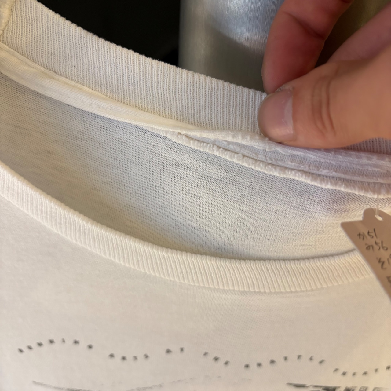 背面側の首リブにピンホールあり