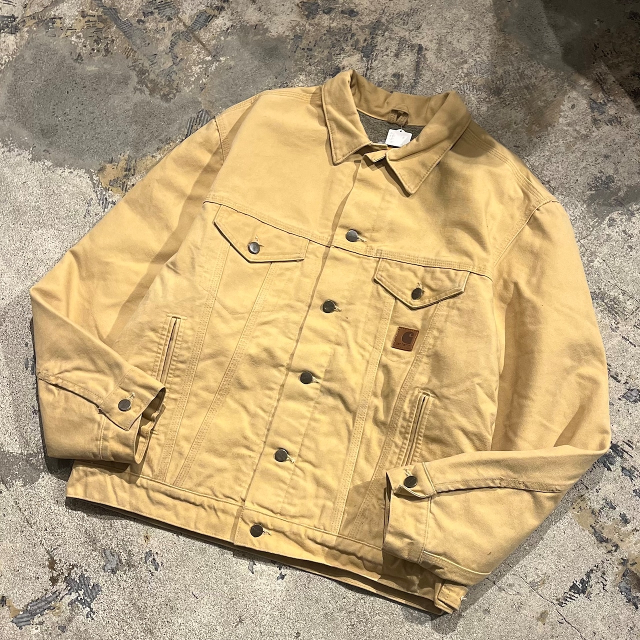 Carharttらしいガッシリとしたダック地で、普遍的なトラッカージャケットを作るという古着好き大歓喜のモデルです