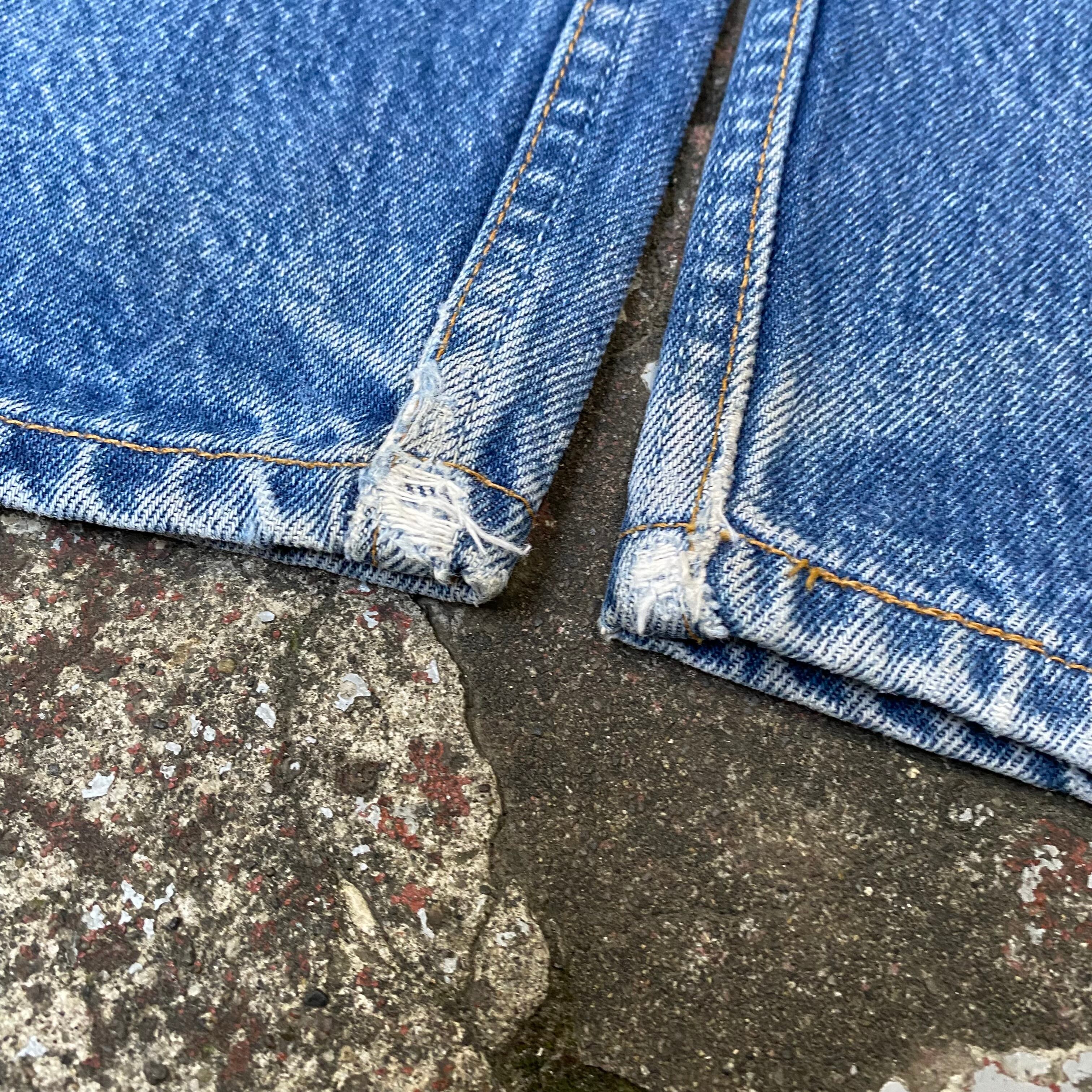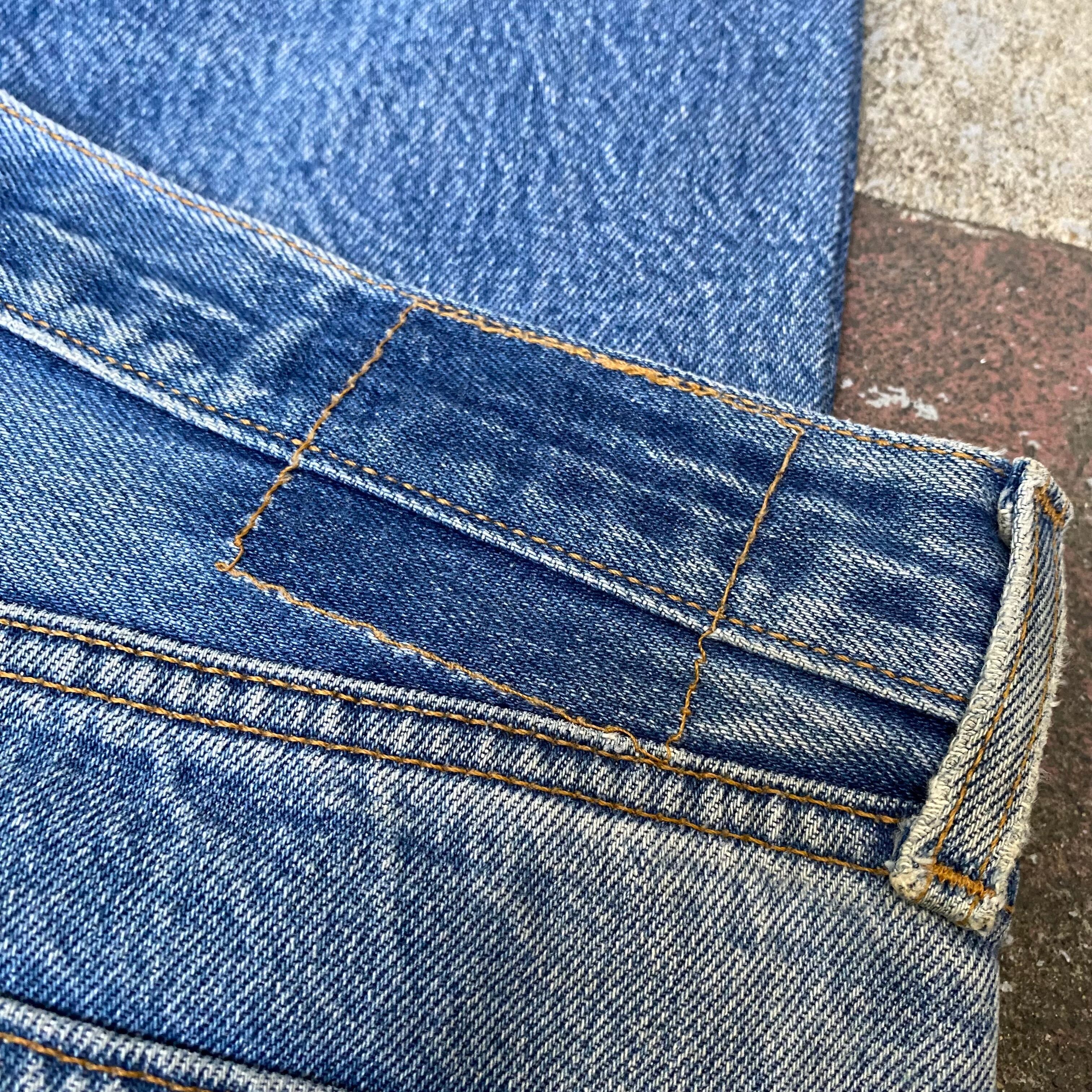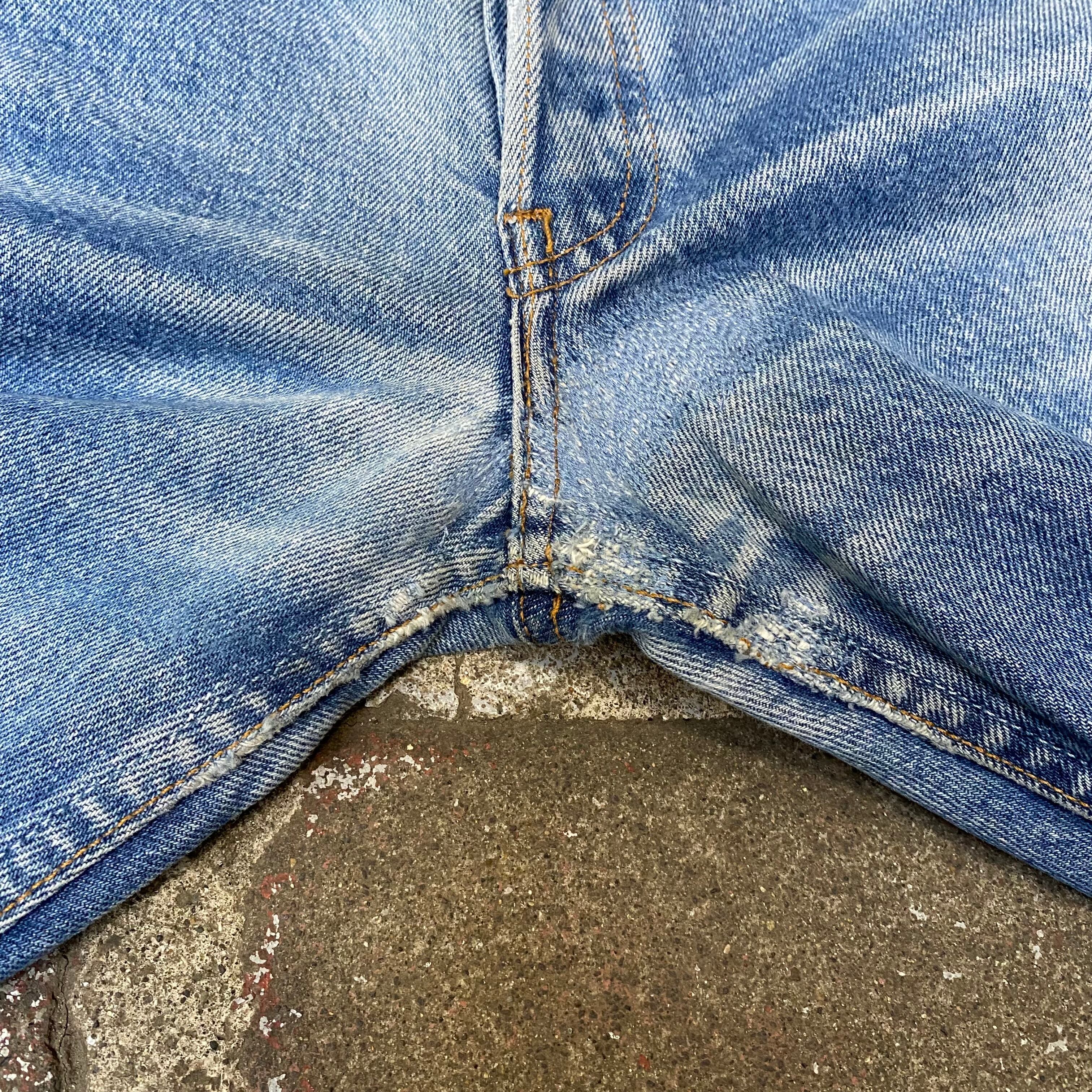 ボタンフライ付近、裾、股にダメージやリペア有り。