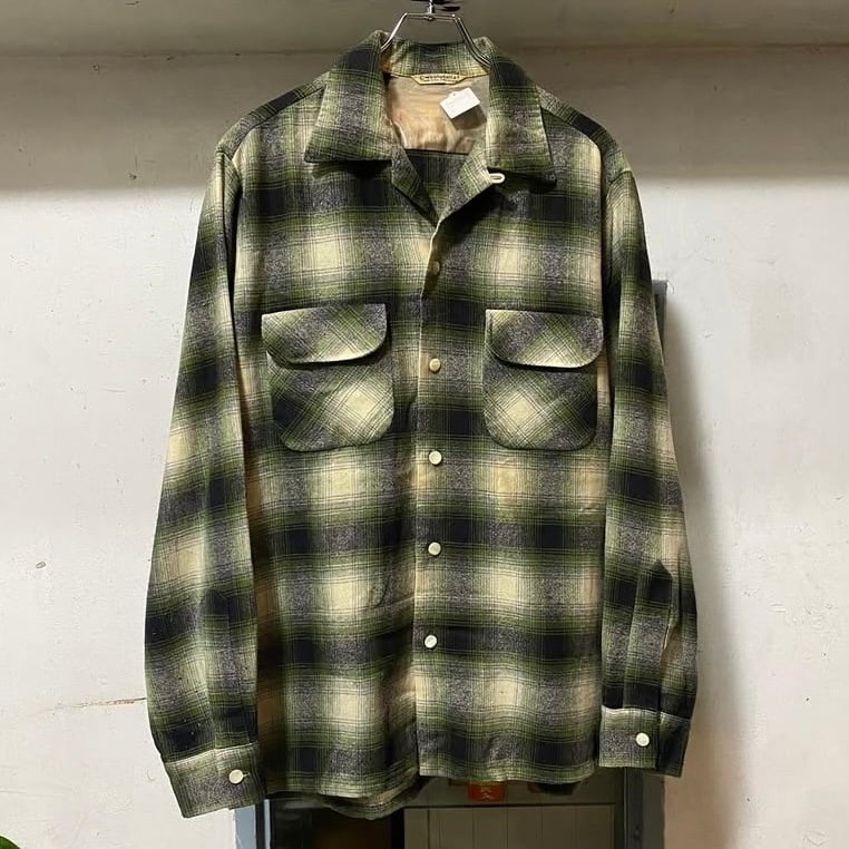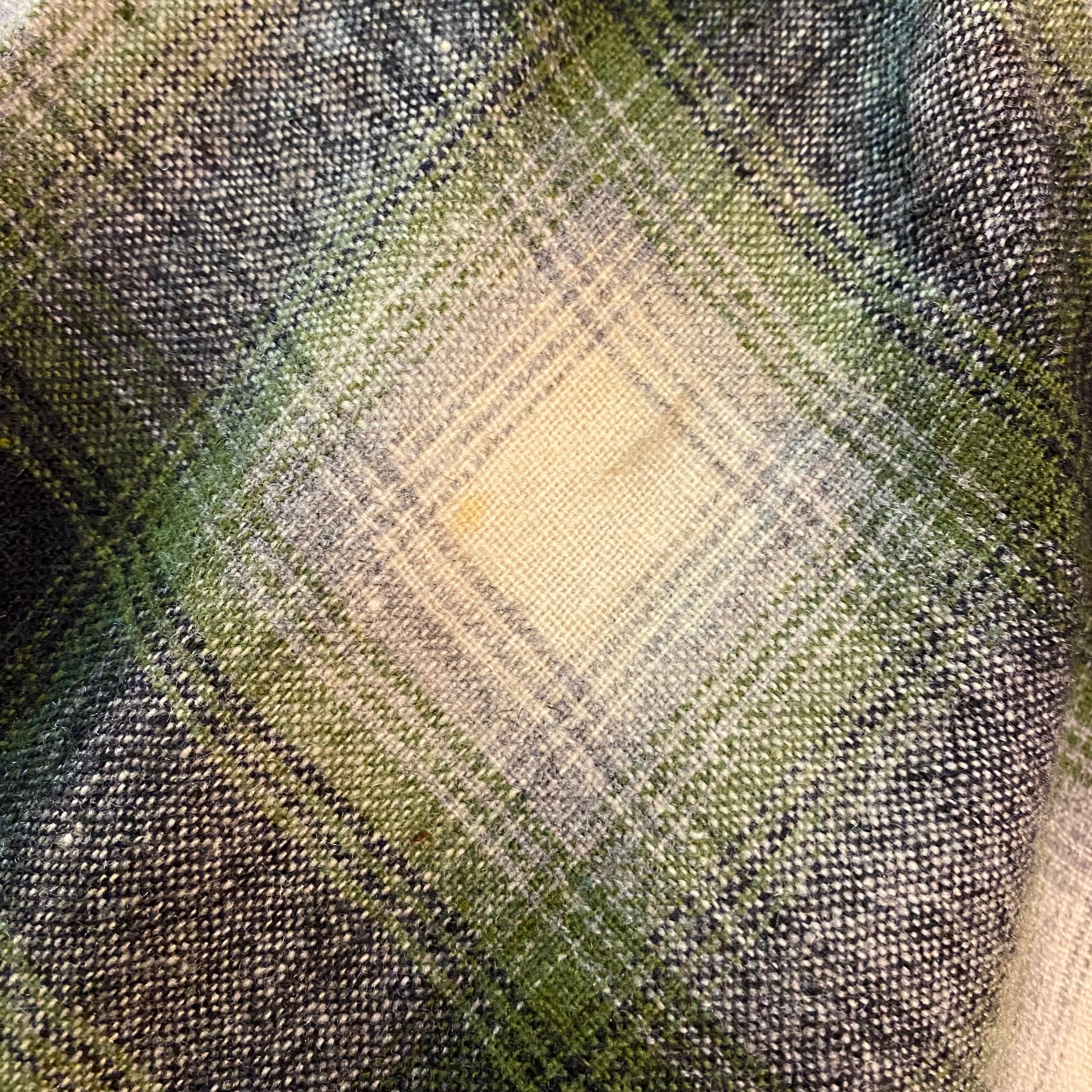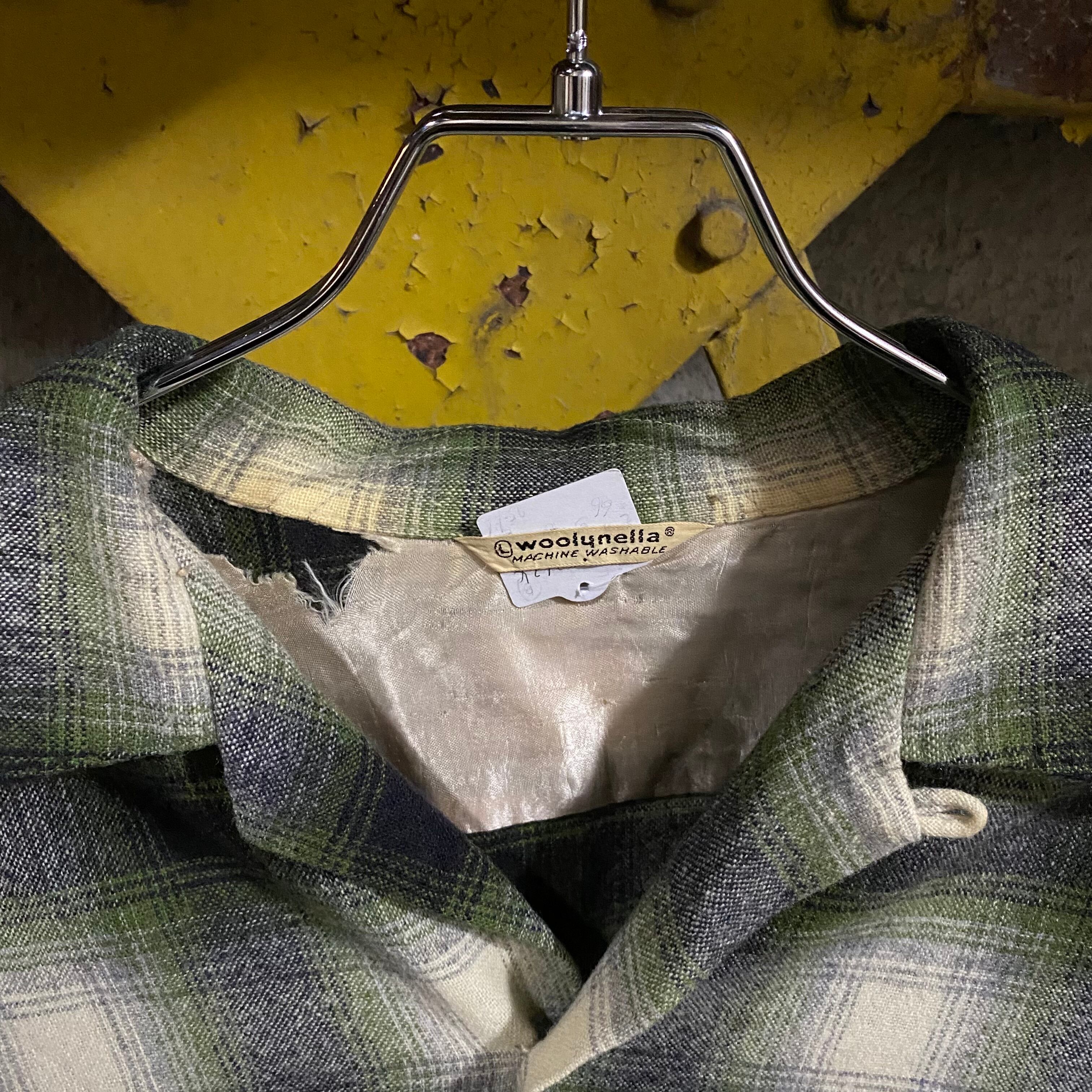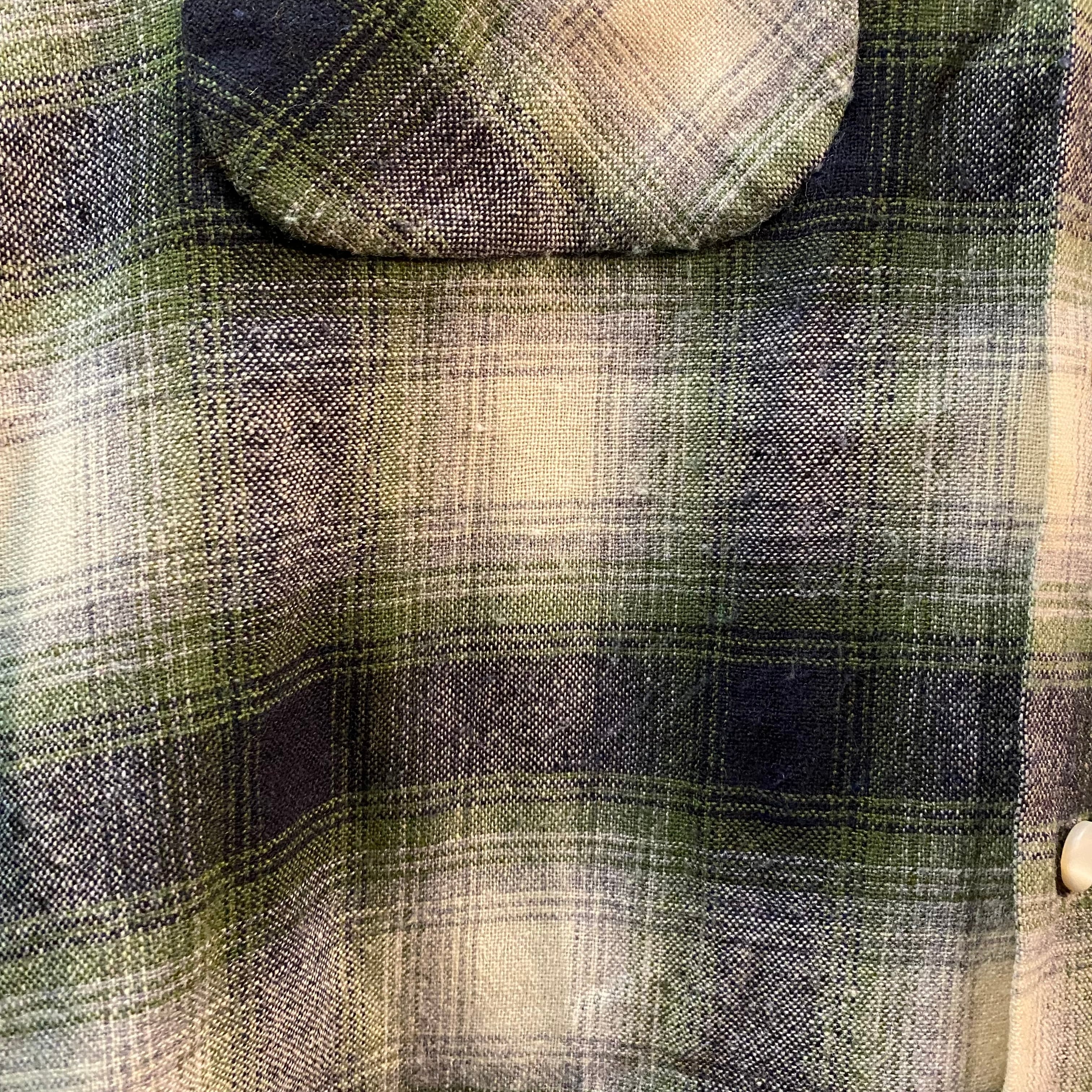 ~60’s Vintage Shadow Plaid Open Collar Wool Shirt