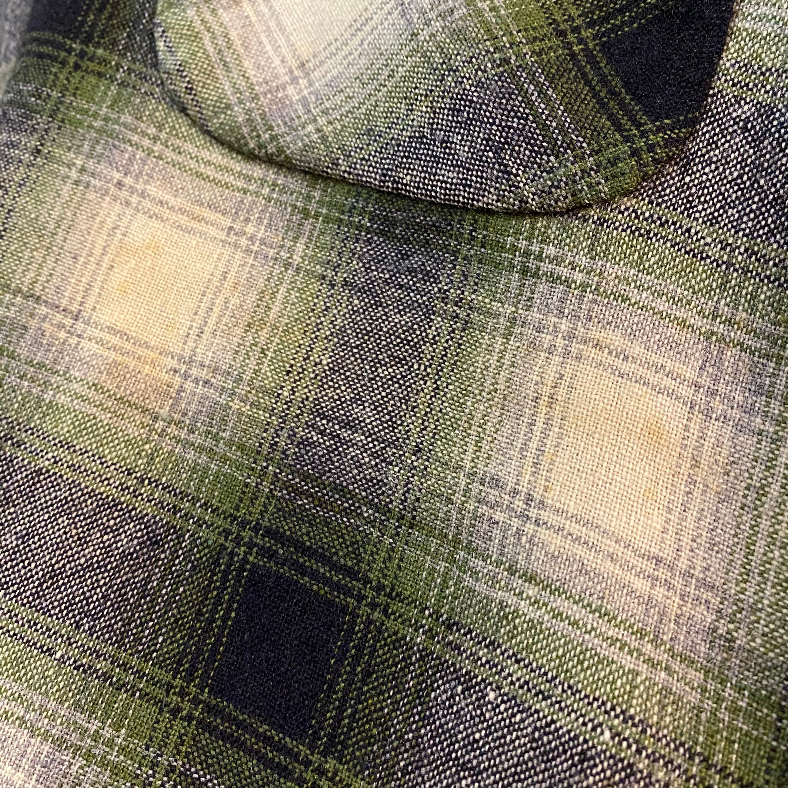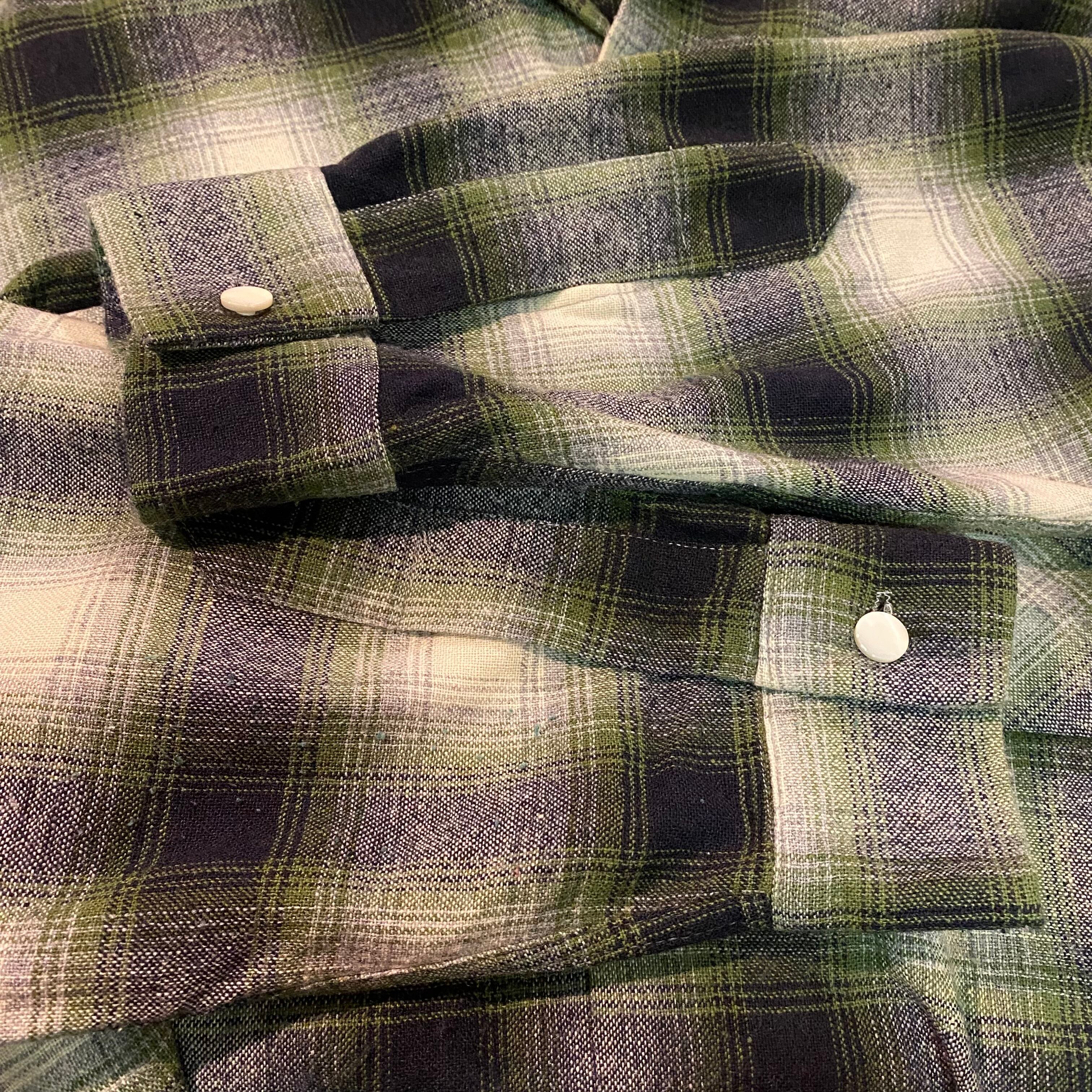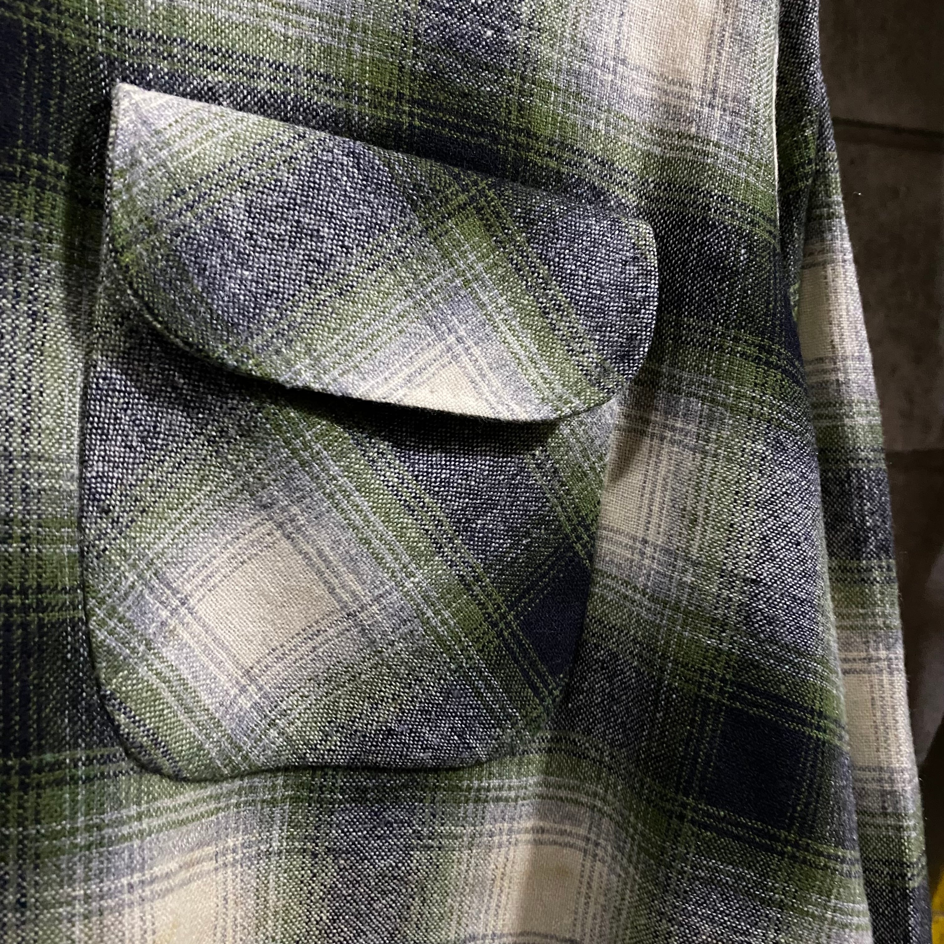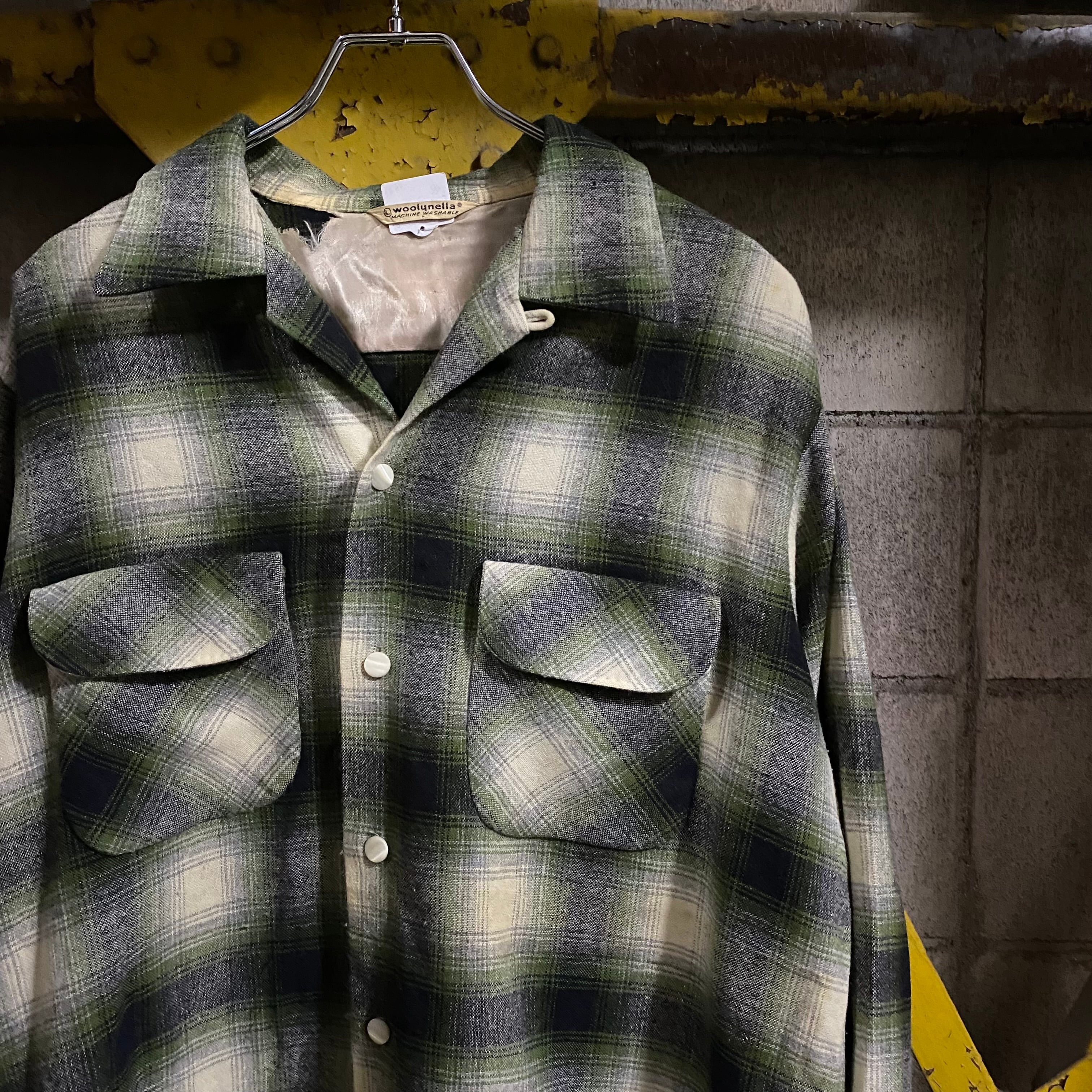 ~60’s Vintage Shadow Plaid Open Collar Wool Shirt