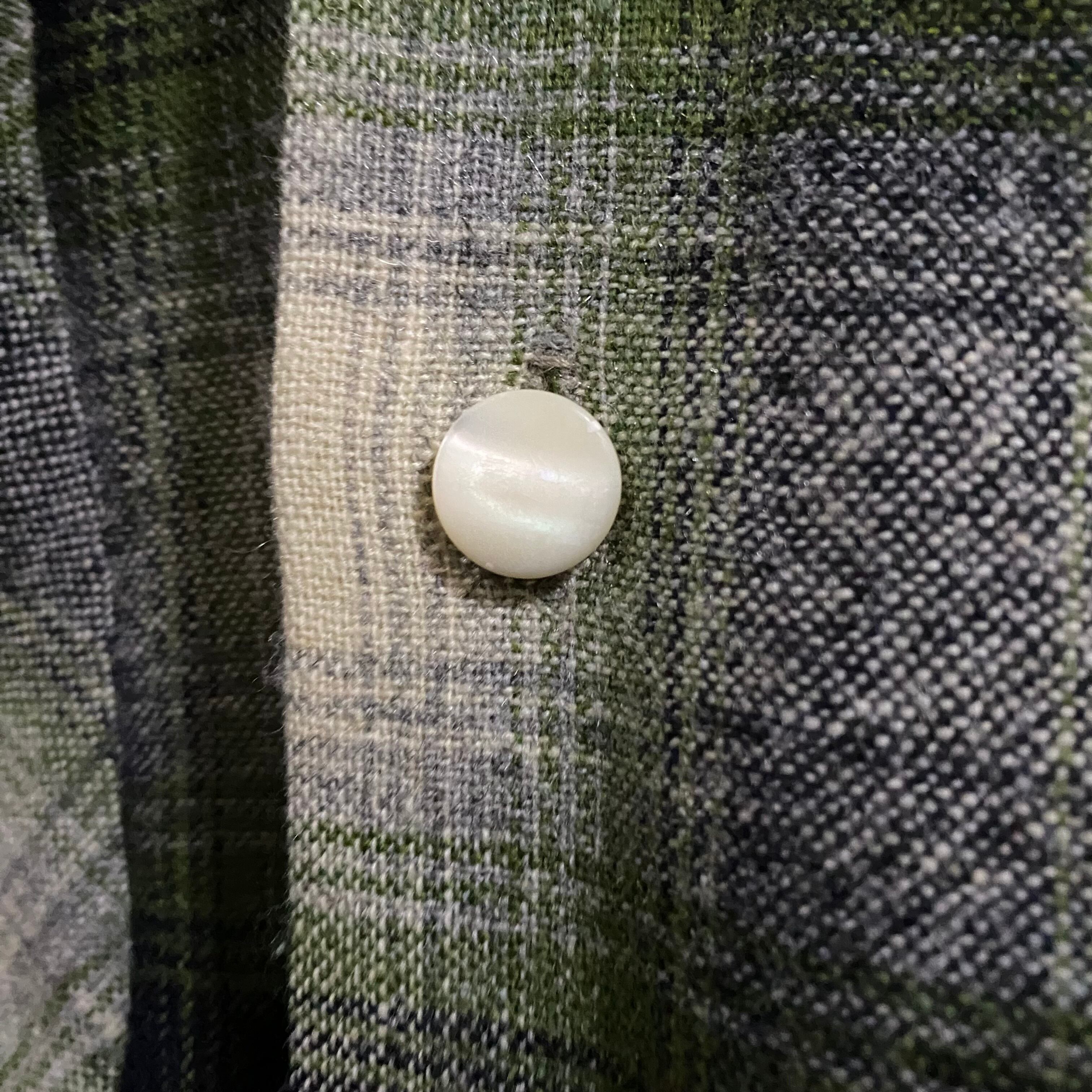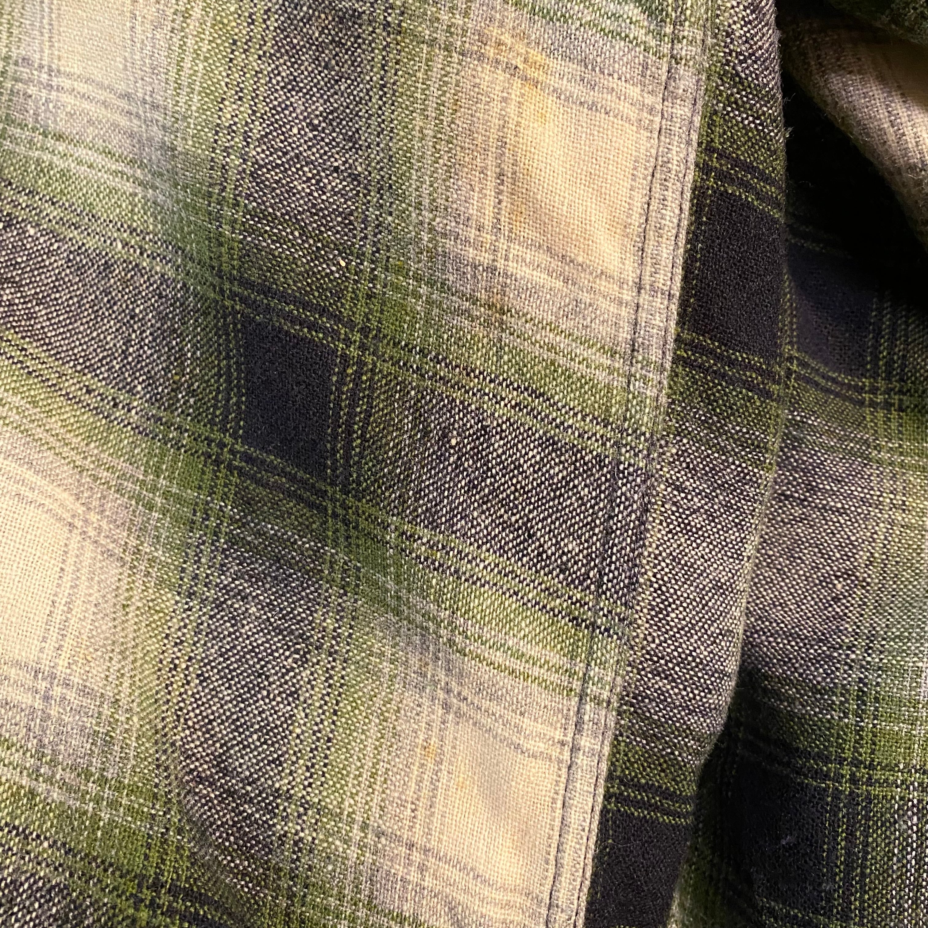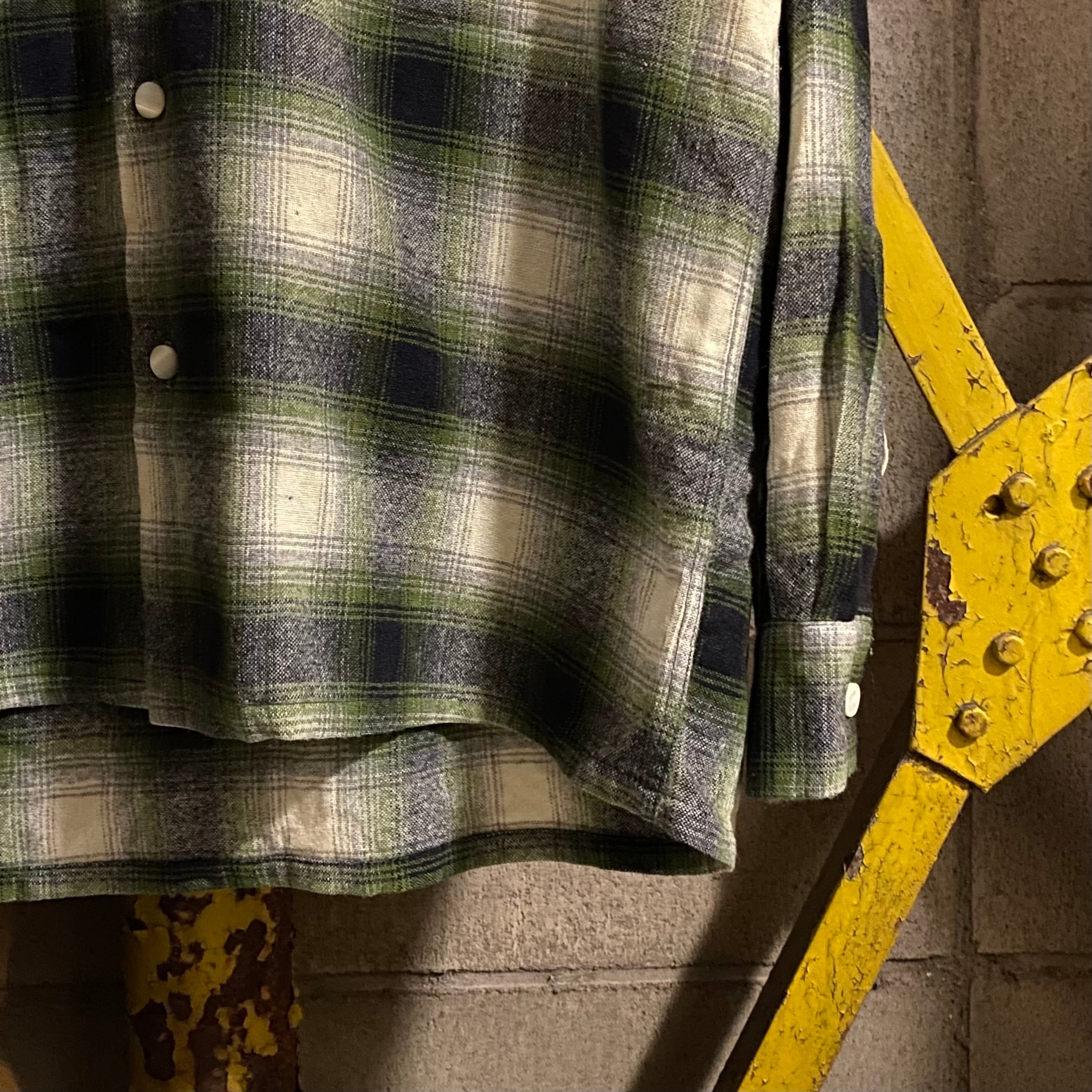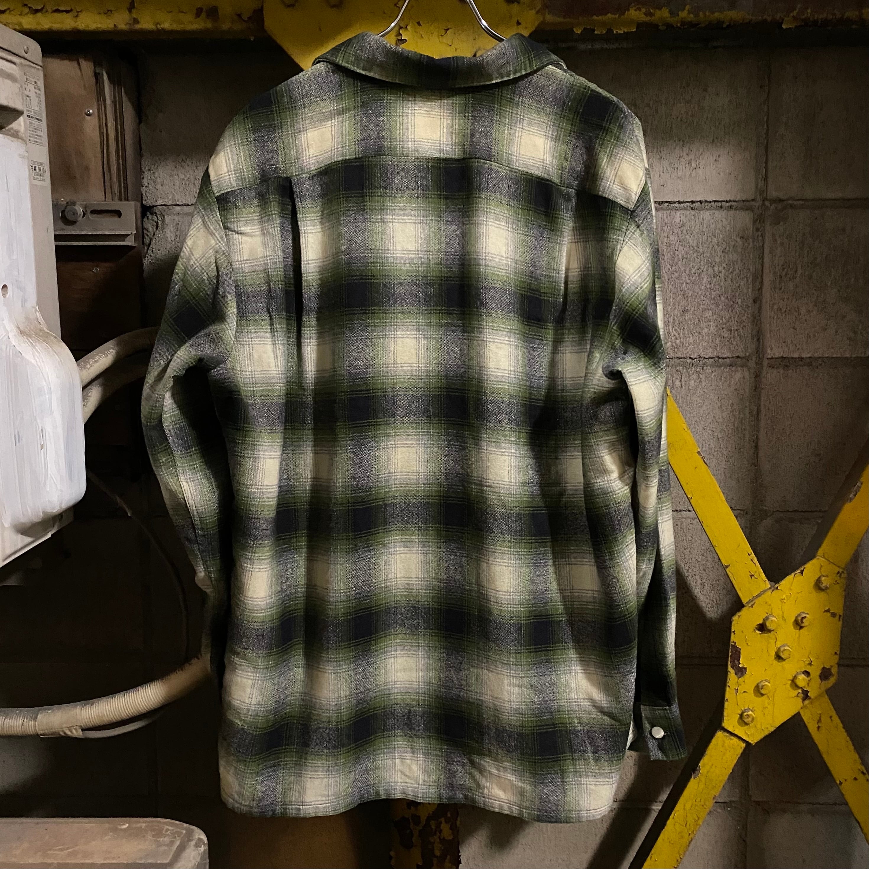~60’s Vintage Shadow Plaid Open Collar Wool Shirt