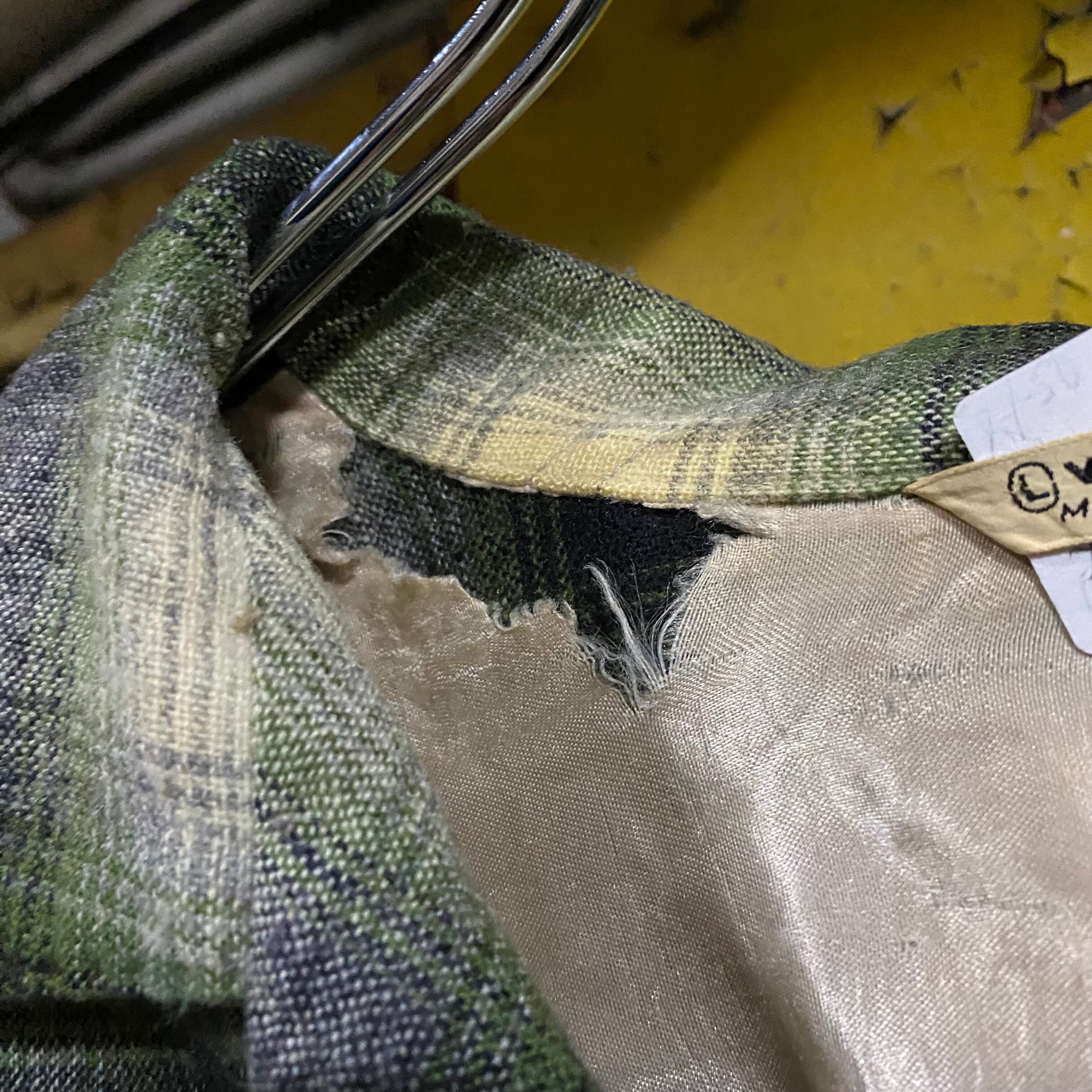 首元や正面、右袖にピンホールやダメージ有り。