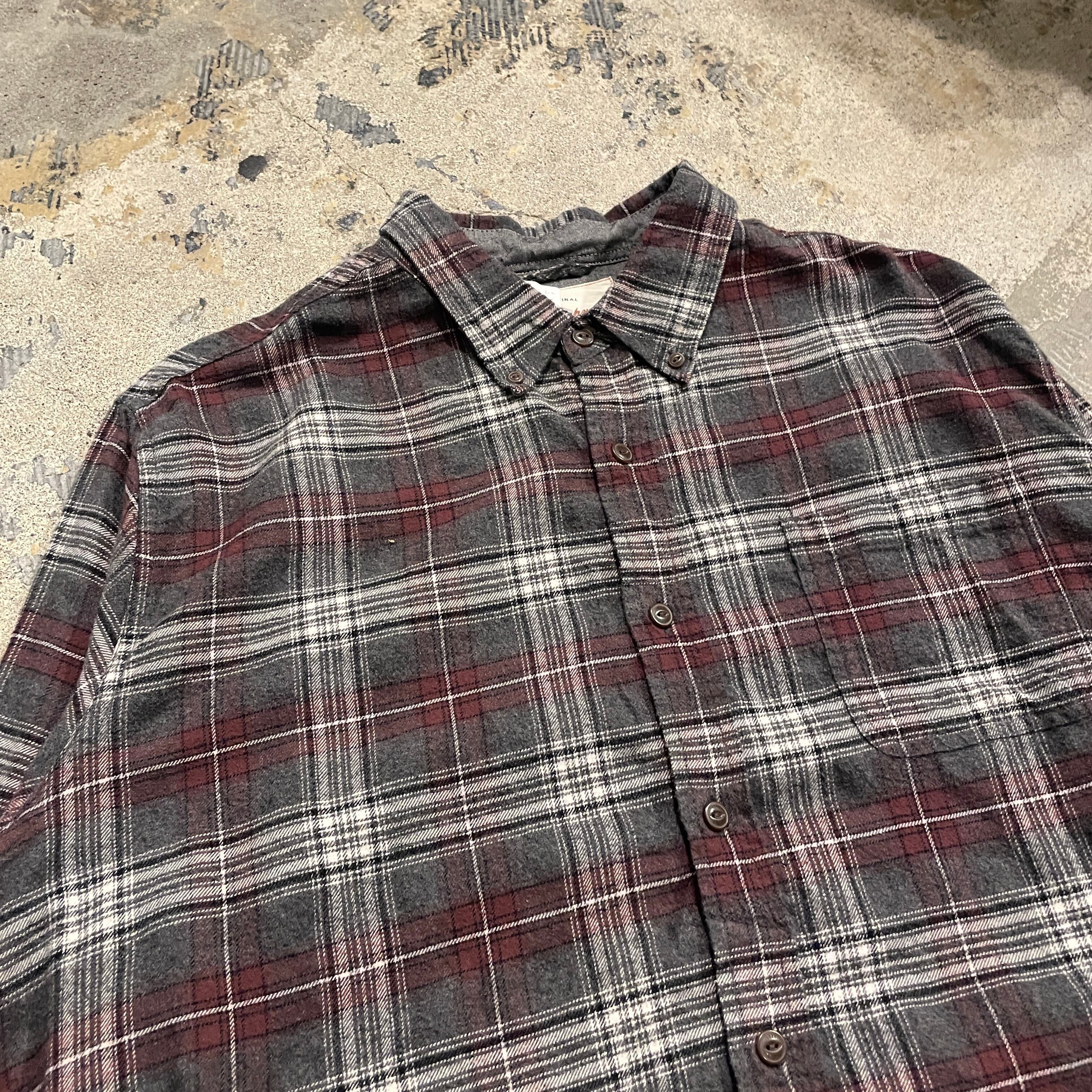 【赤紫グレー!!】00's Ombre Check Cotton Shirt "SHADOW RED"