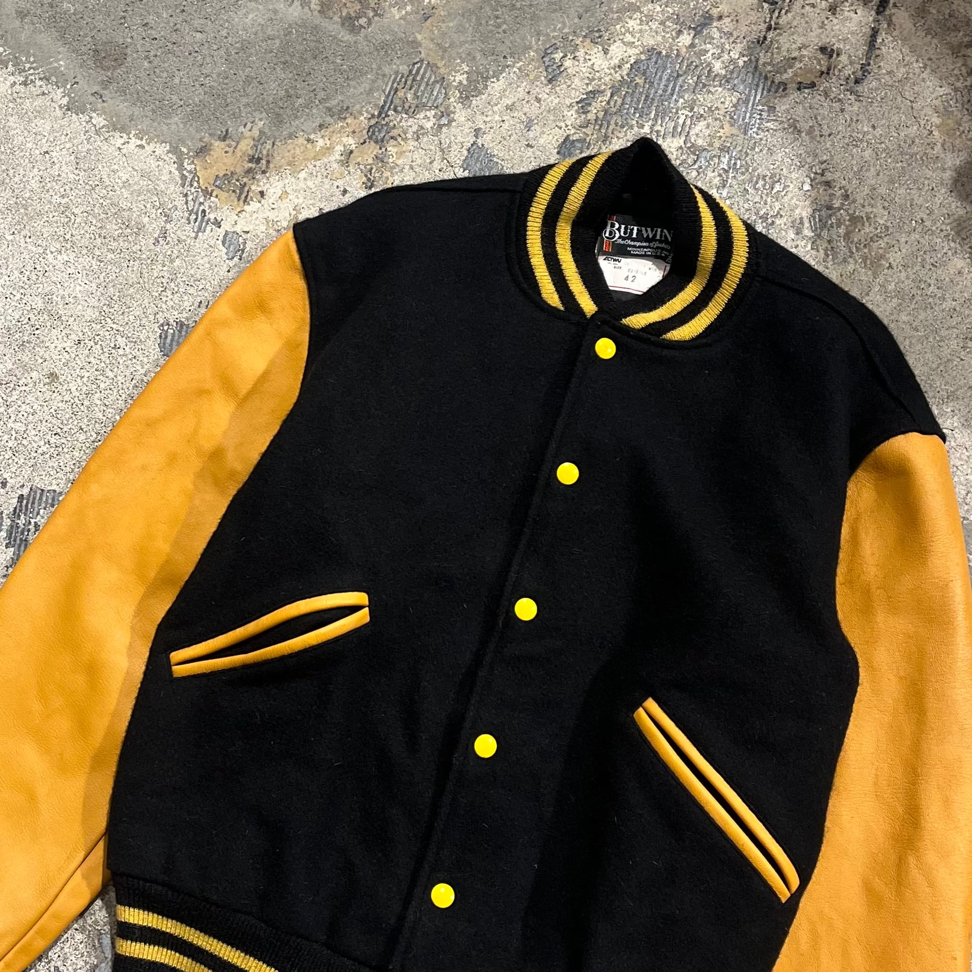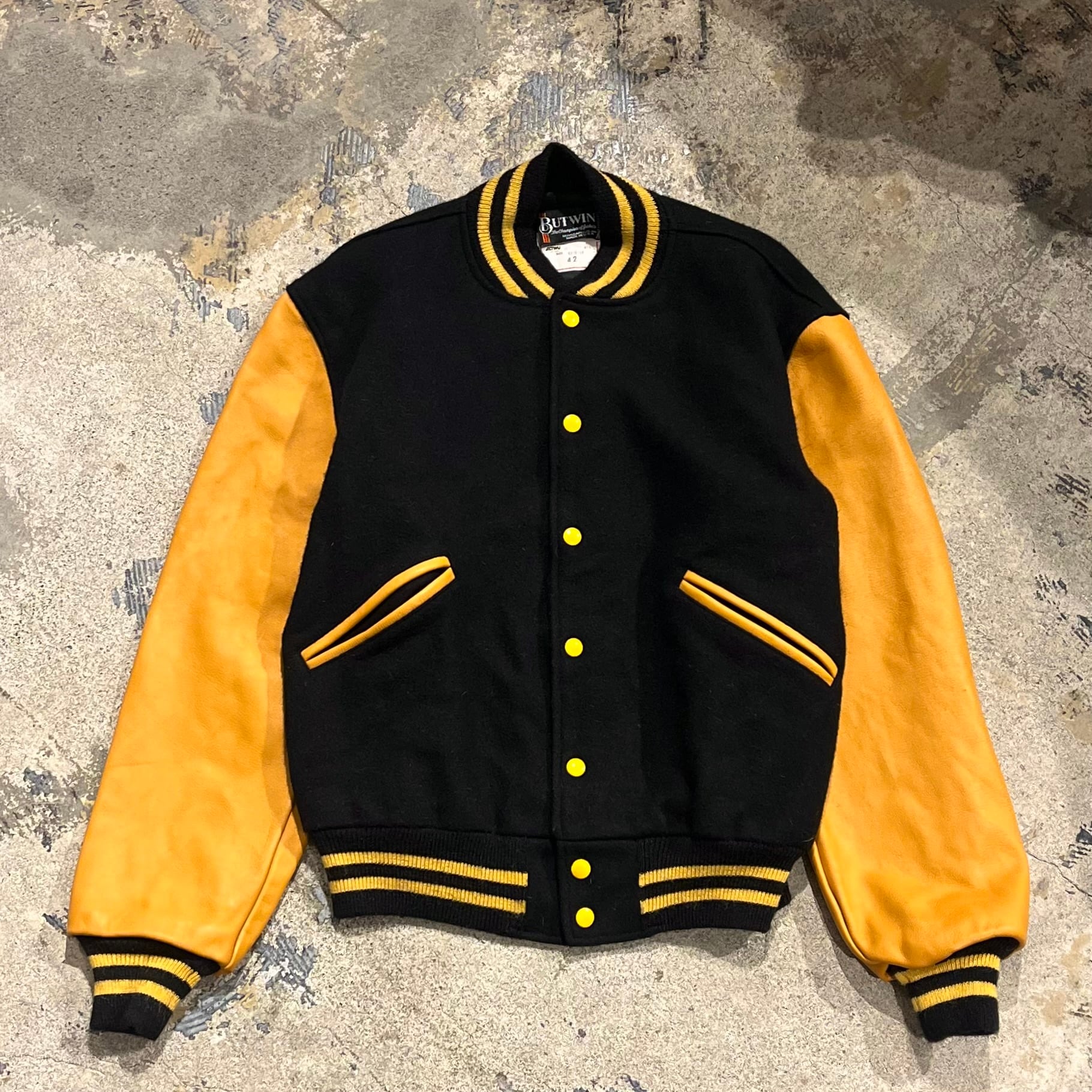 【黒×黄】~80's BUT WIN Leather×Wool Stadium Jacket "42 size"