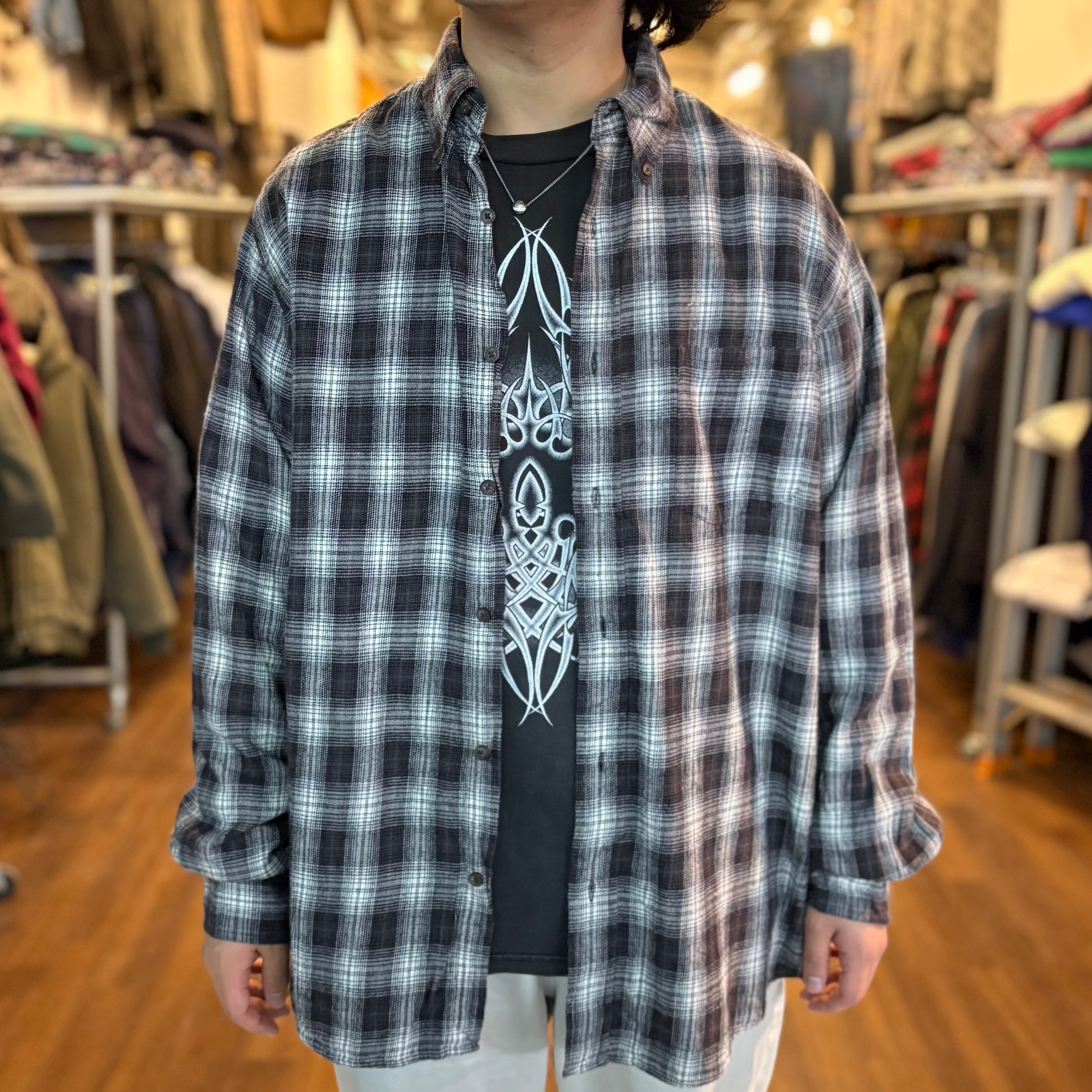 【白黒オンブレ】ST. JOHN'S BAY Ombre Plaid Flannel Shirt