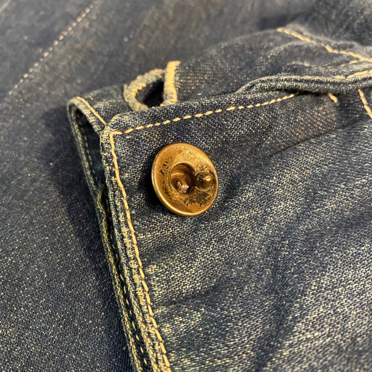左袖のボタンが打ち直したのか、ボタンの皿の部分に打ち込まれています。