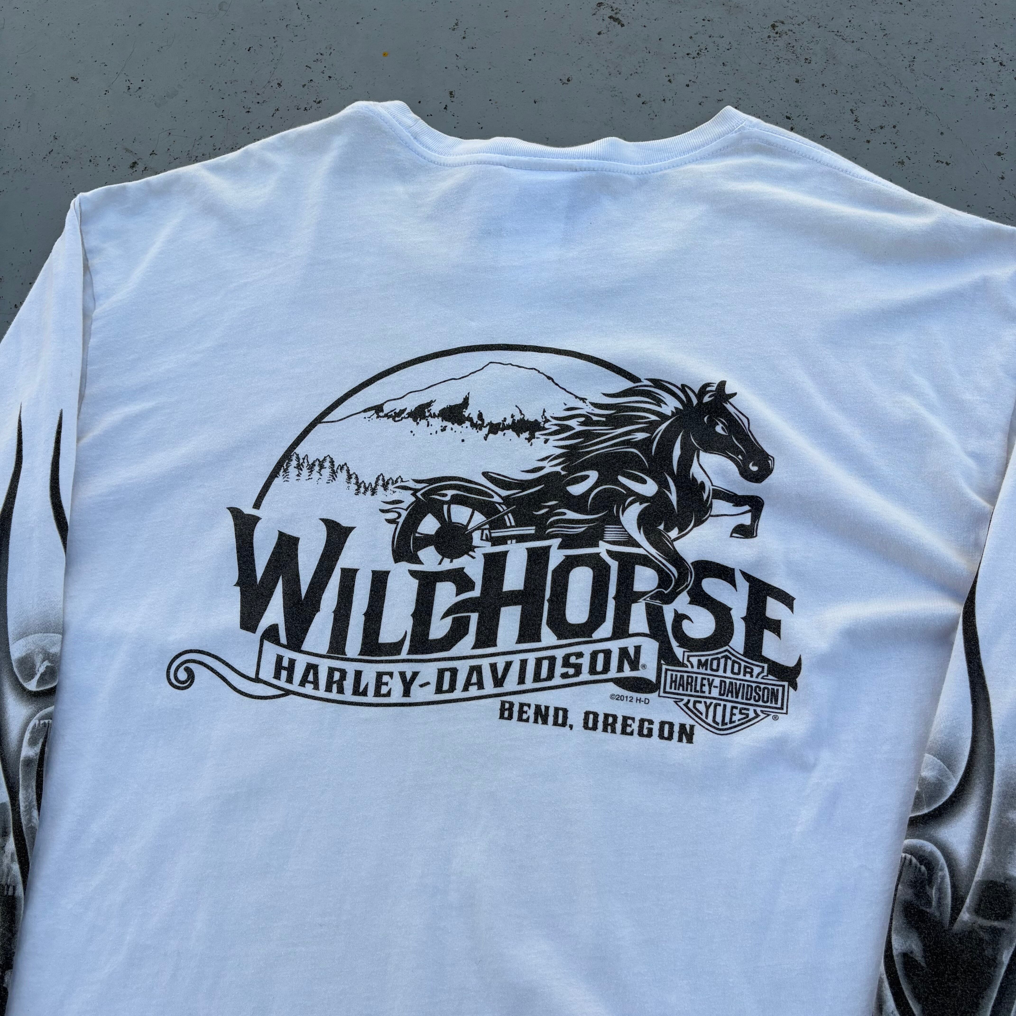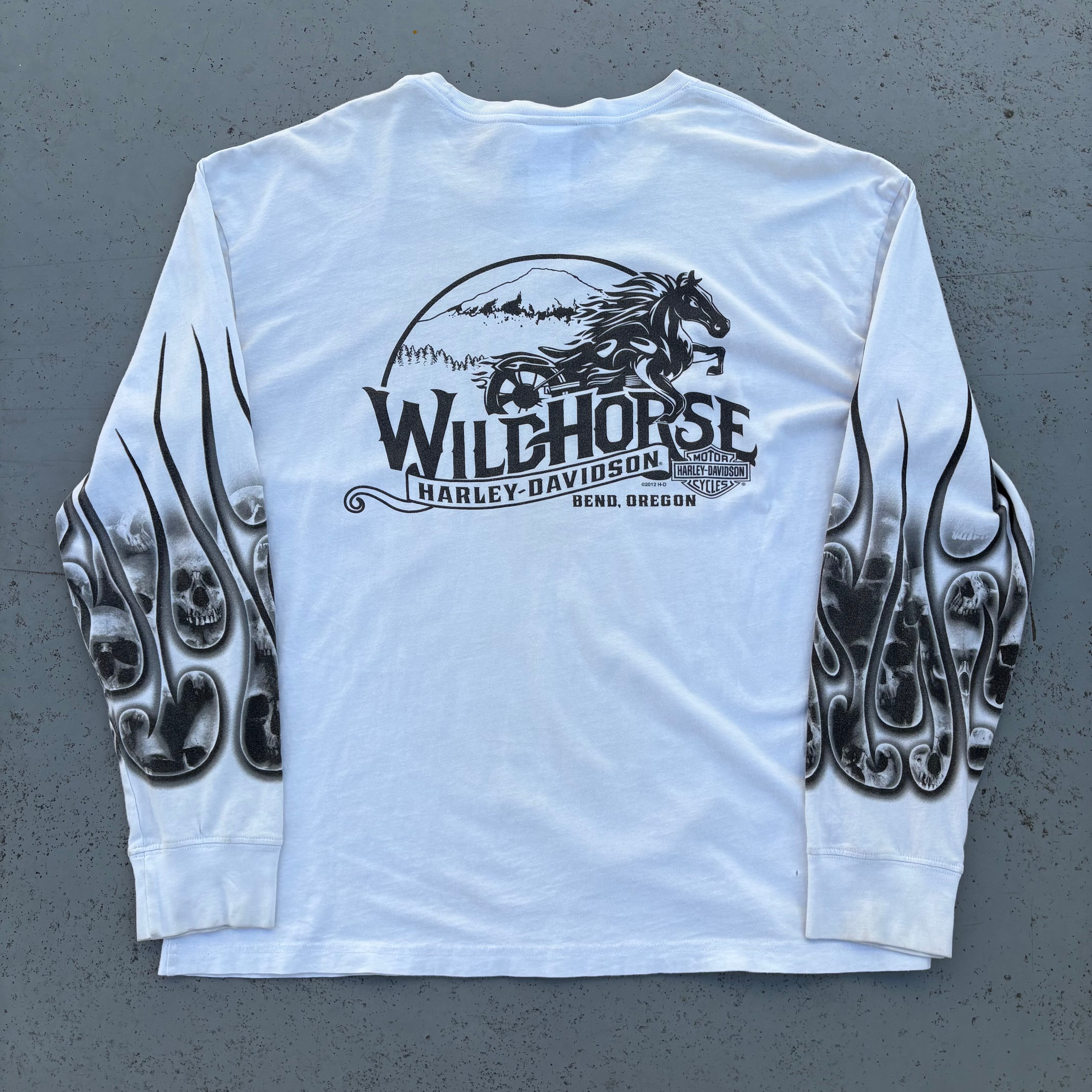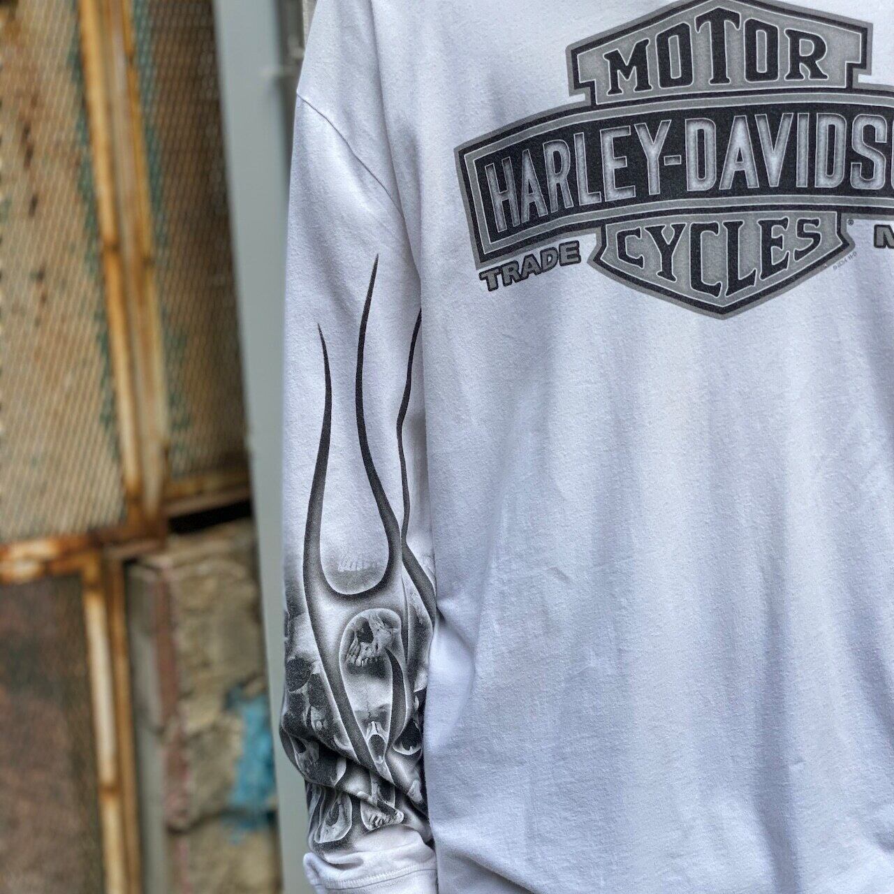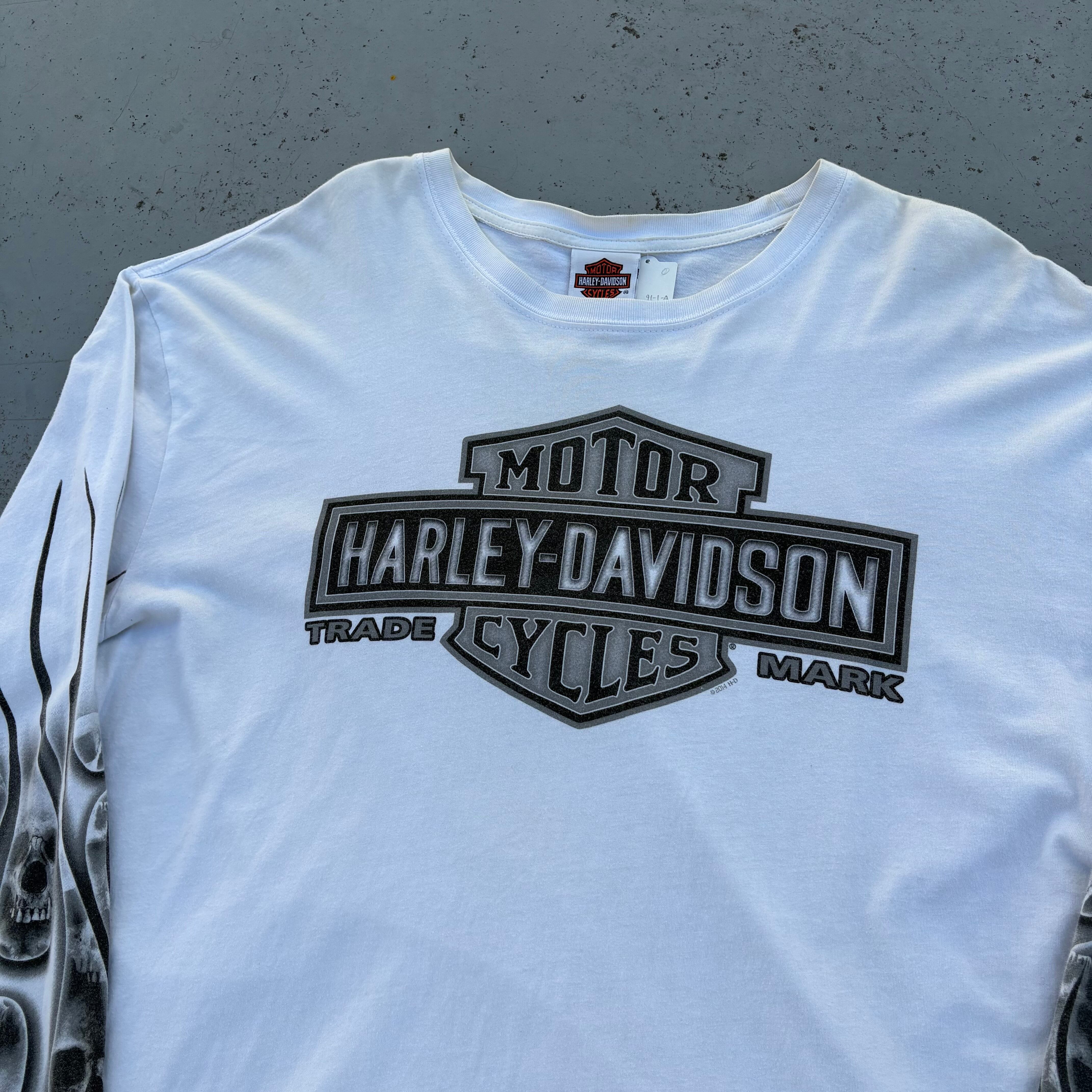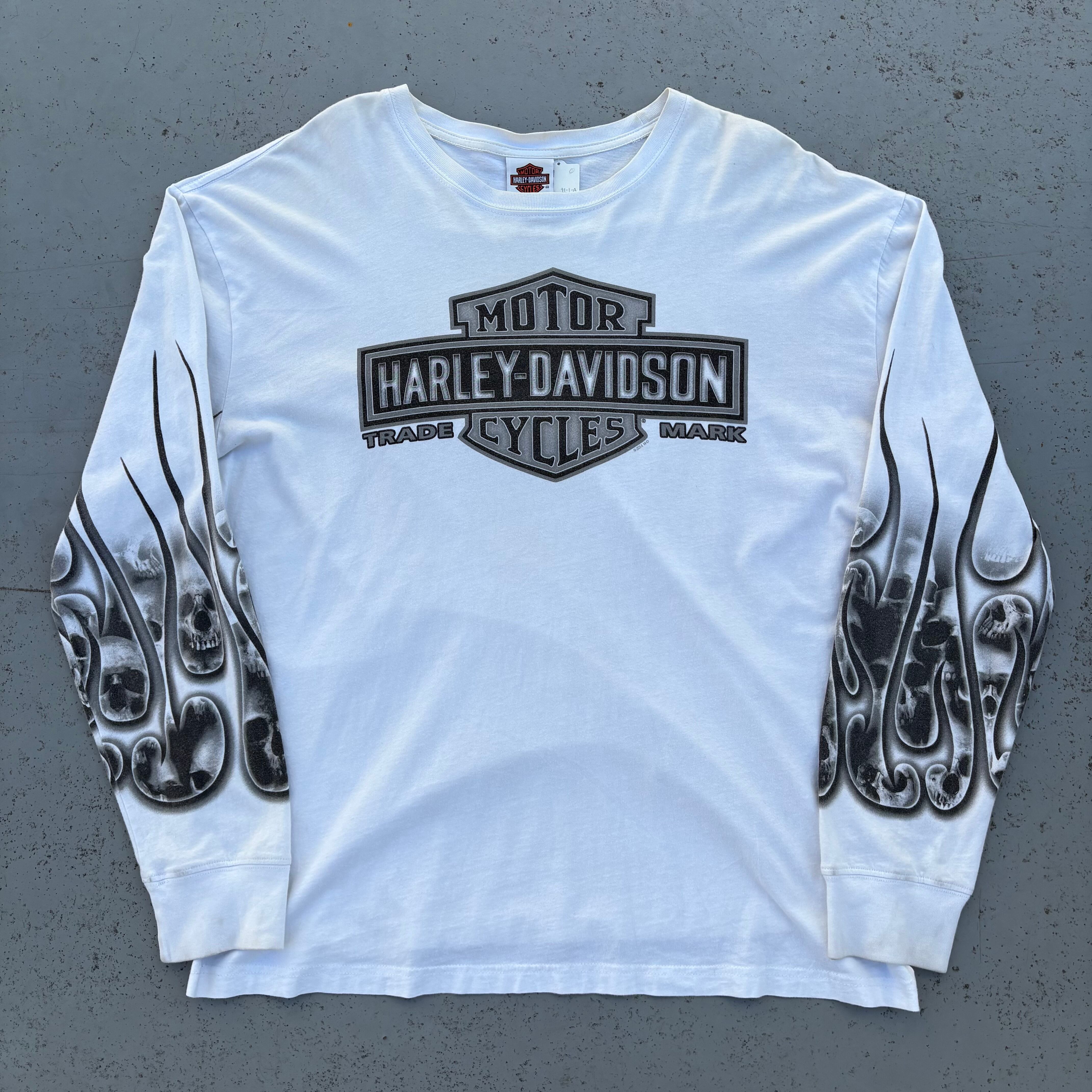 隠れた名作が多い印象の近年ハーレーの中でも珍しいスカルモチーフのロンTです。