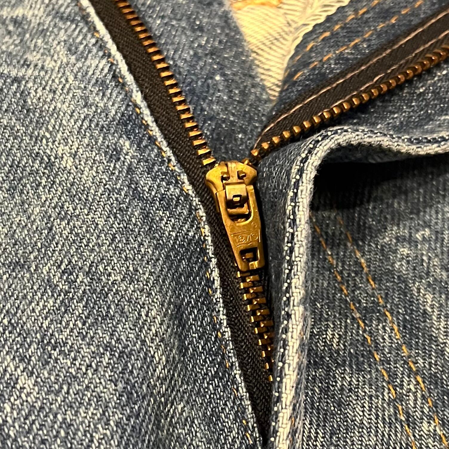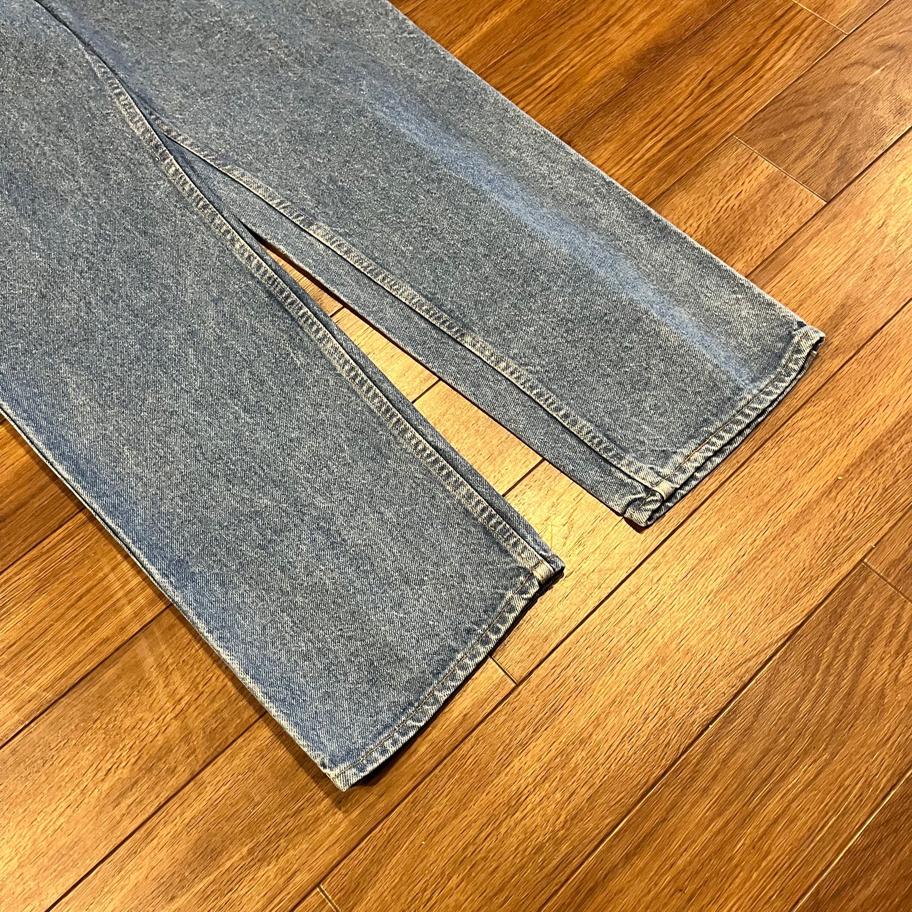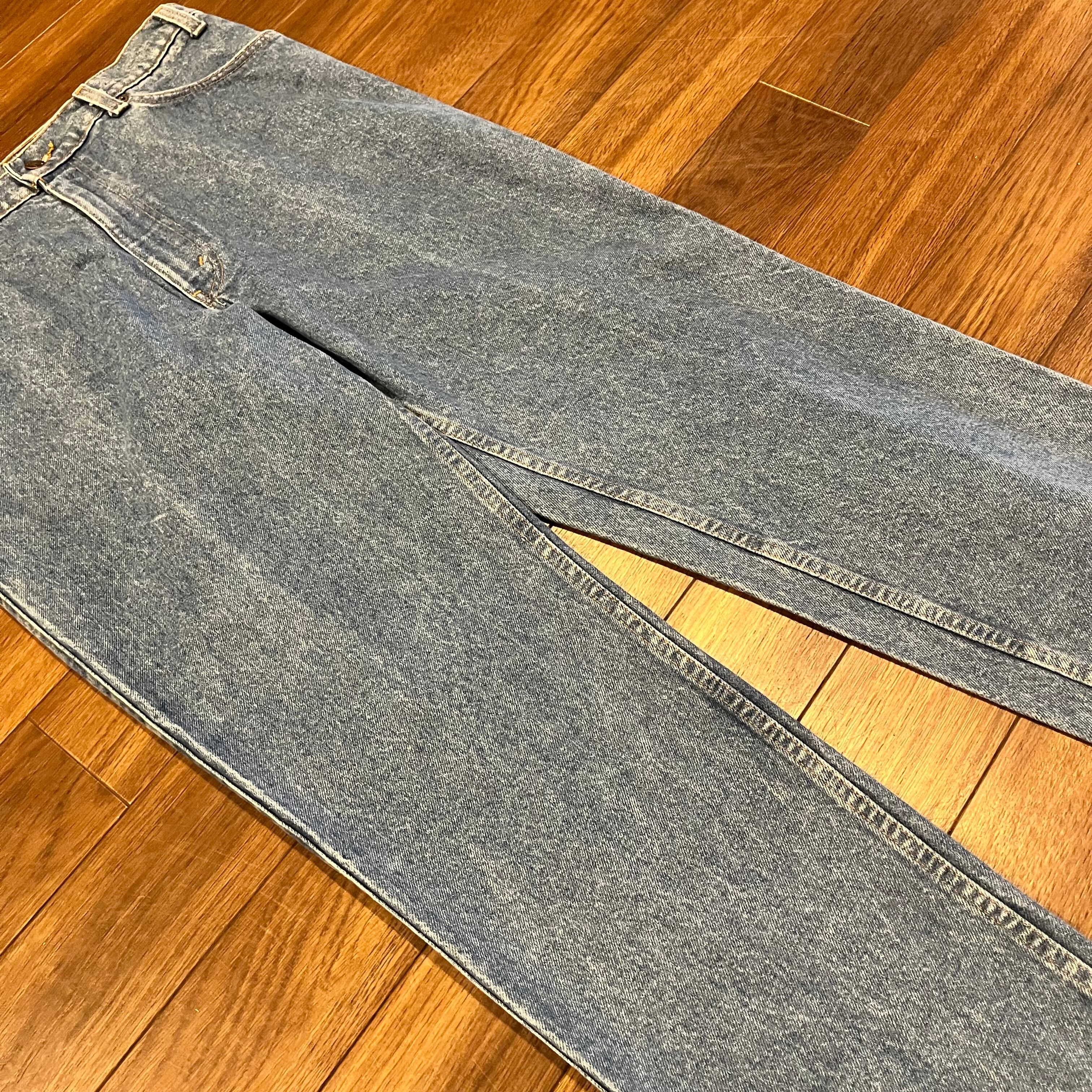 両足に薄く縦ラインの色落ちあり。