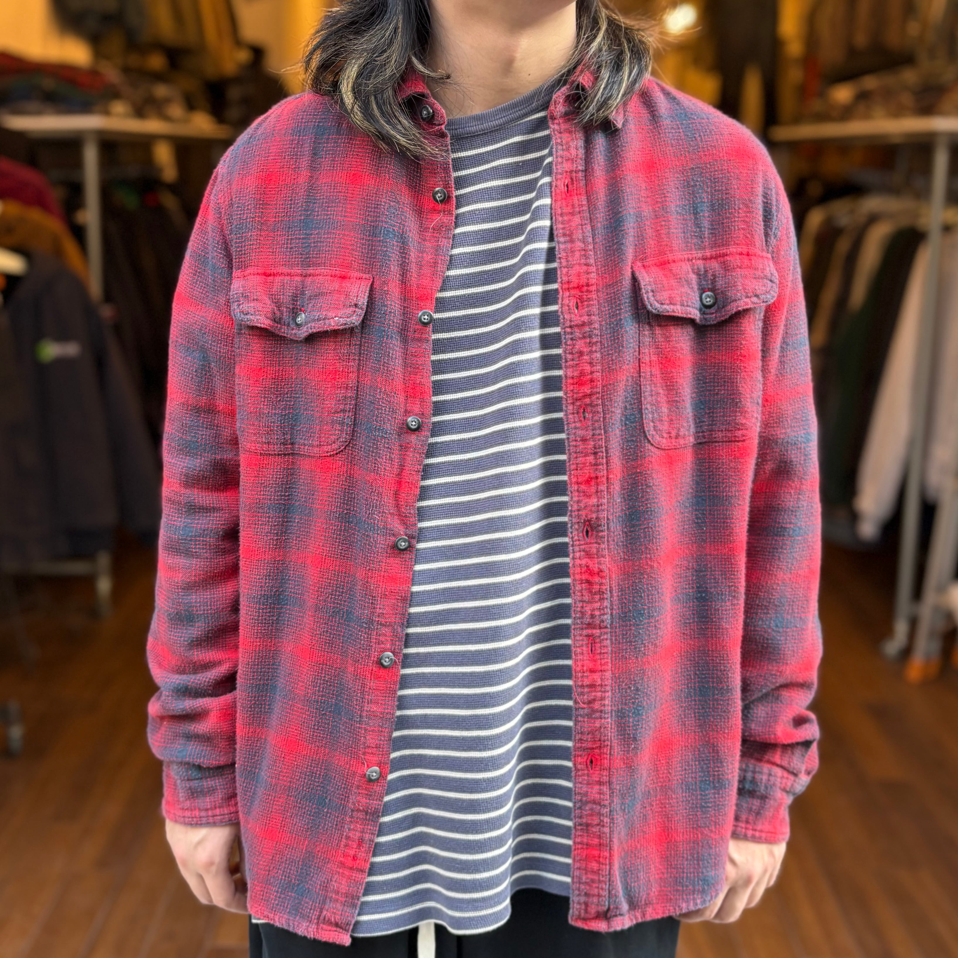 経年による若干のフェードと、ネルシャツ特有の起毛感が堪らない逸品。