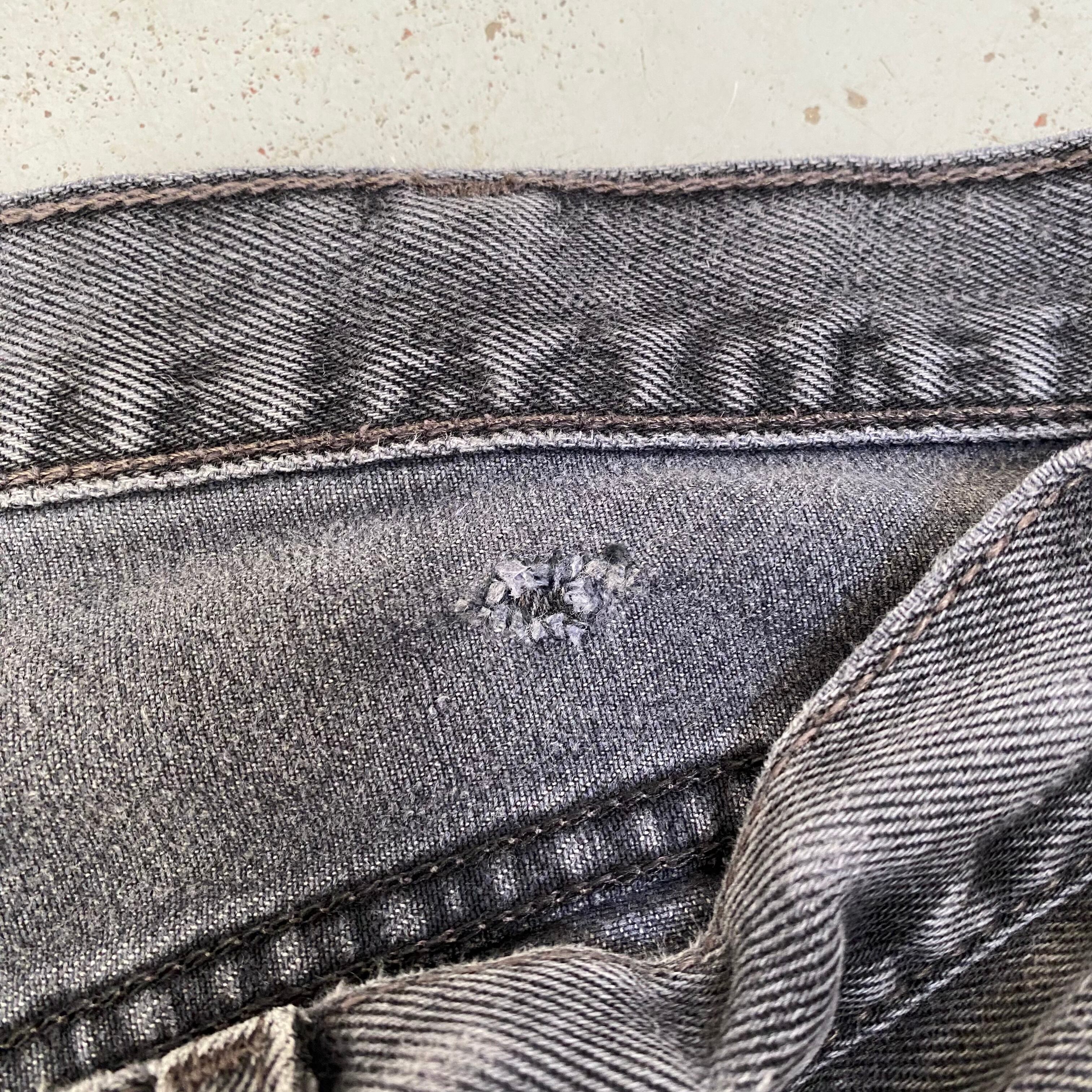 ポケット部分や股下、裾にダメージや擦れ感有り。