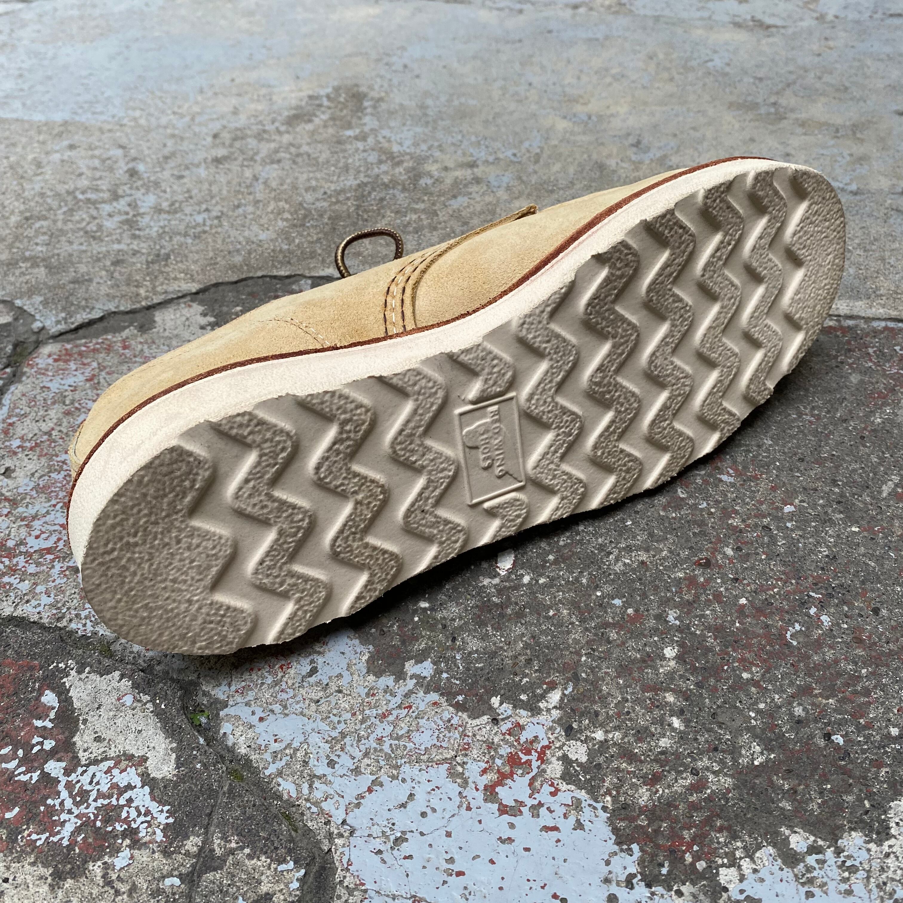 ベージュのラフアウトレザーはスエードとは違い、履き込んでいくと汚れなども味になるため経年変化を楽しめるかと。