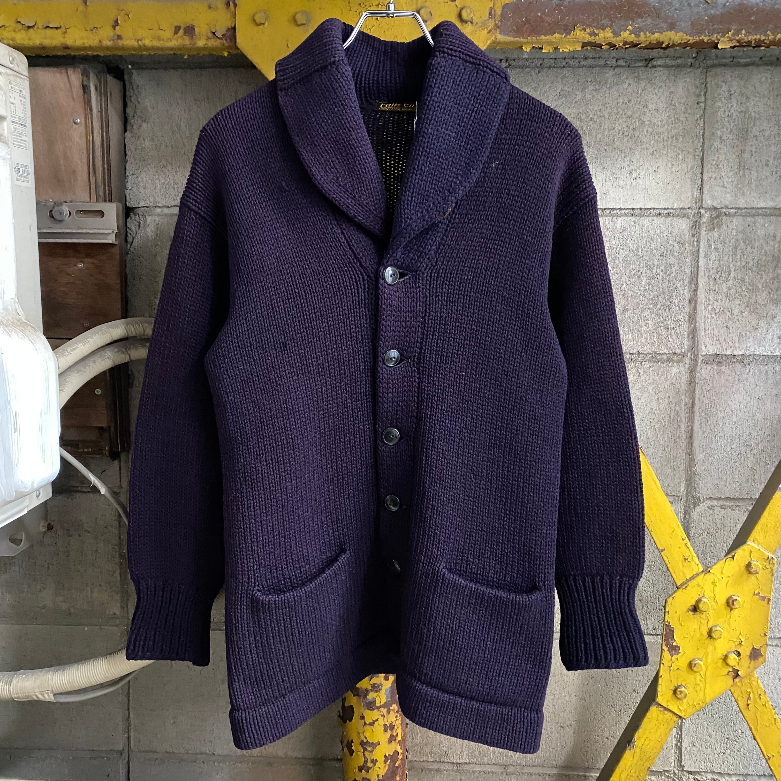 【Fade Navy】30’s~ Vintage Shawl Collar Knit Cardigan