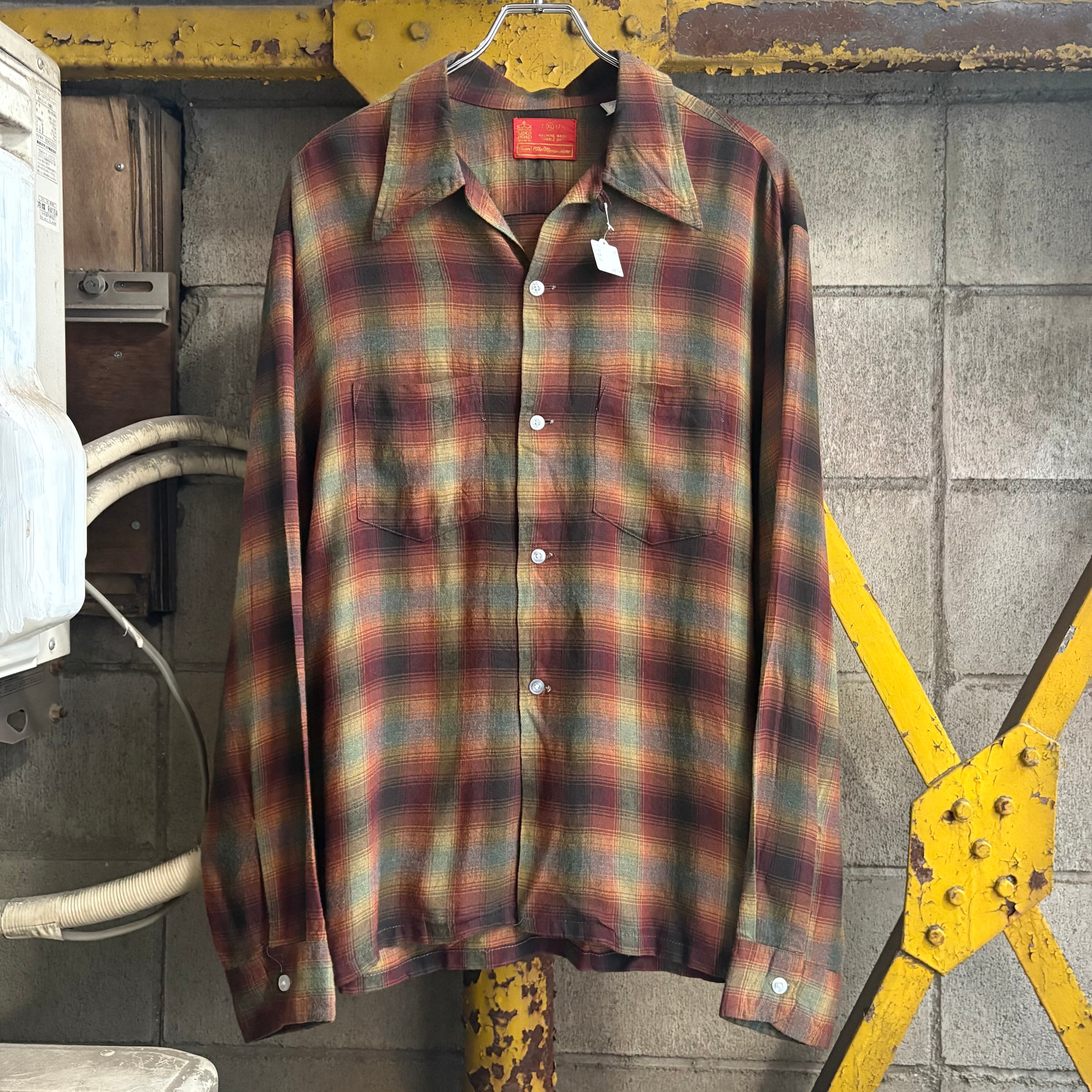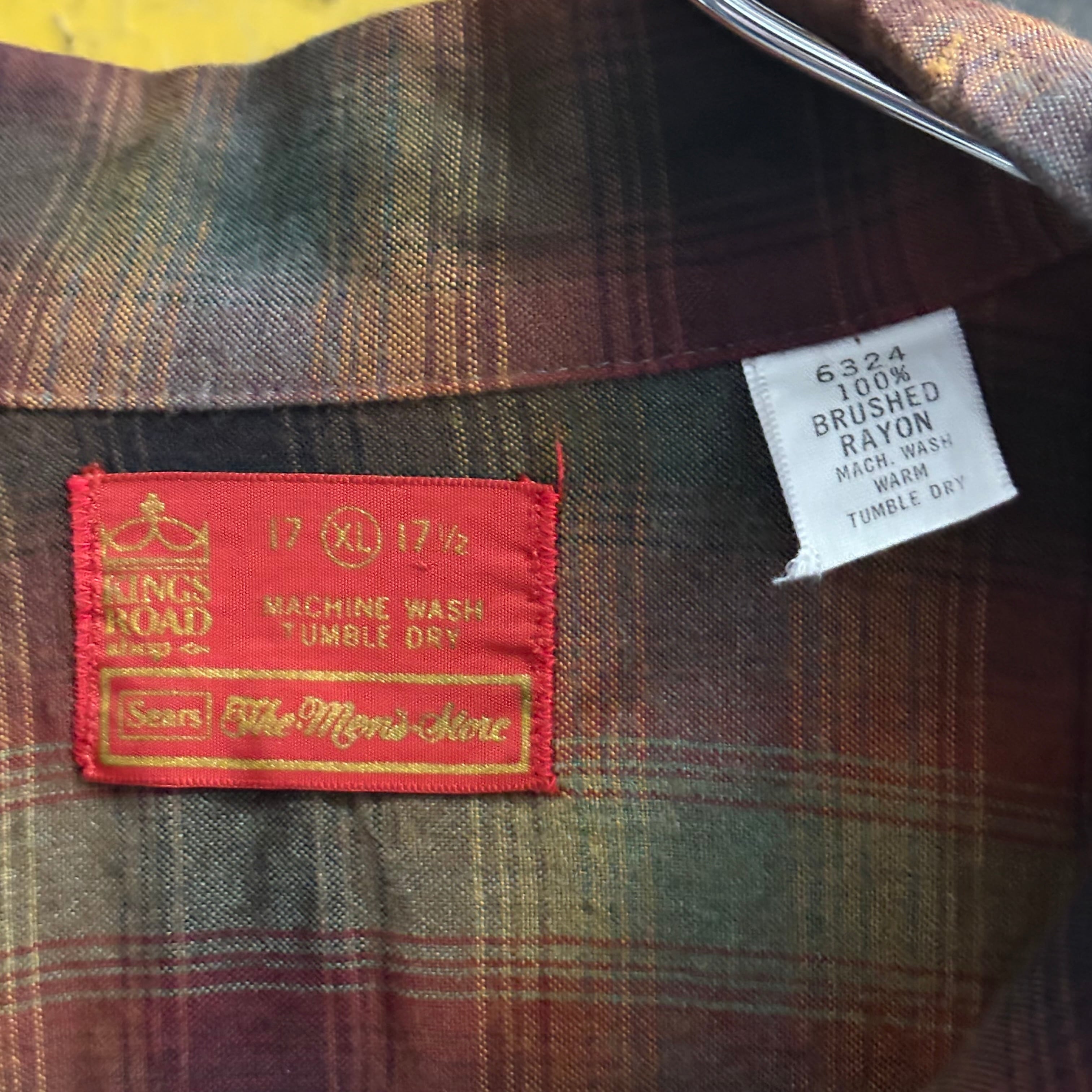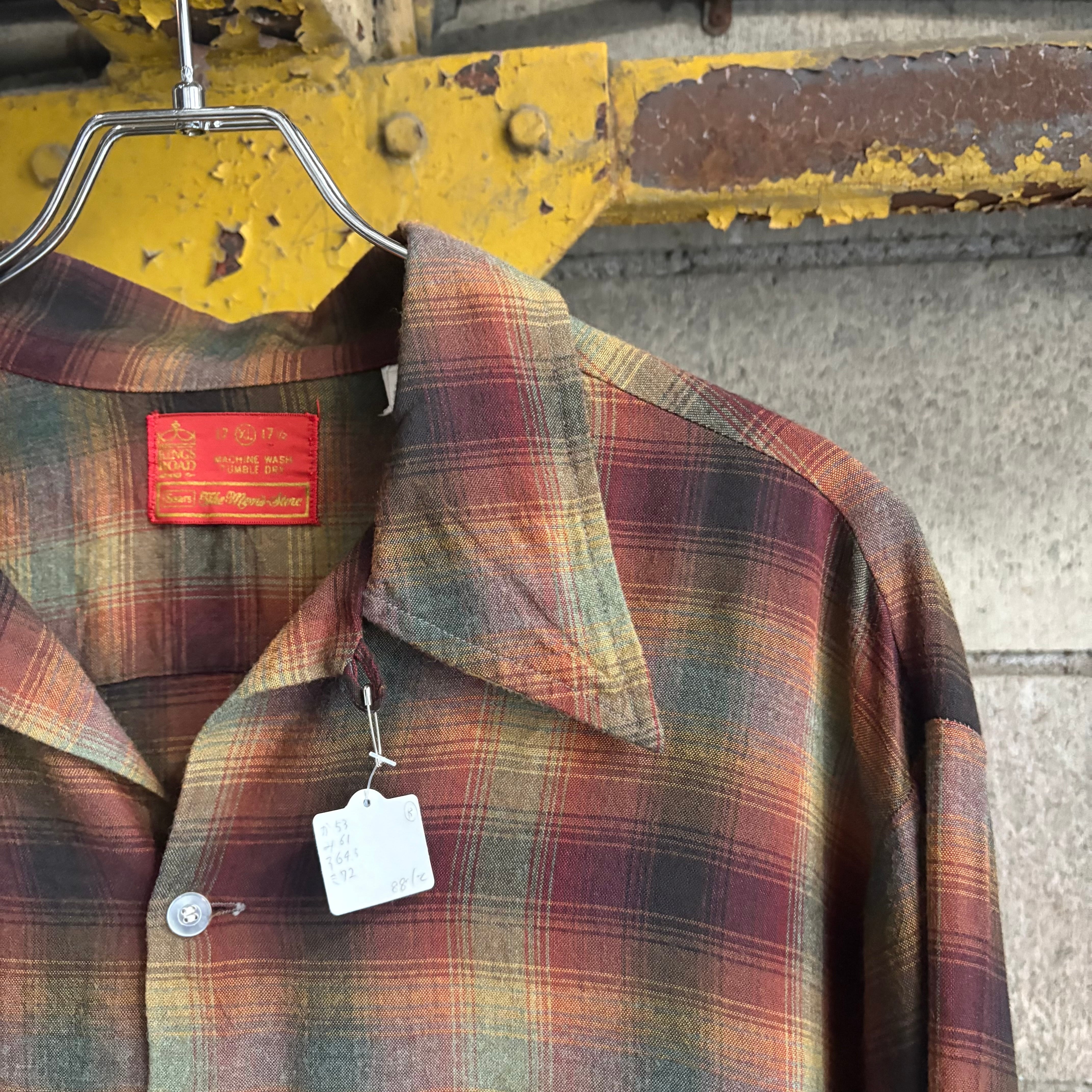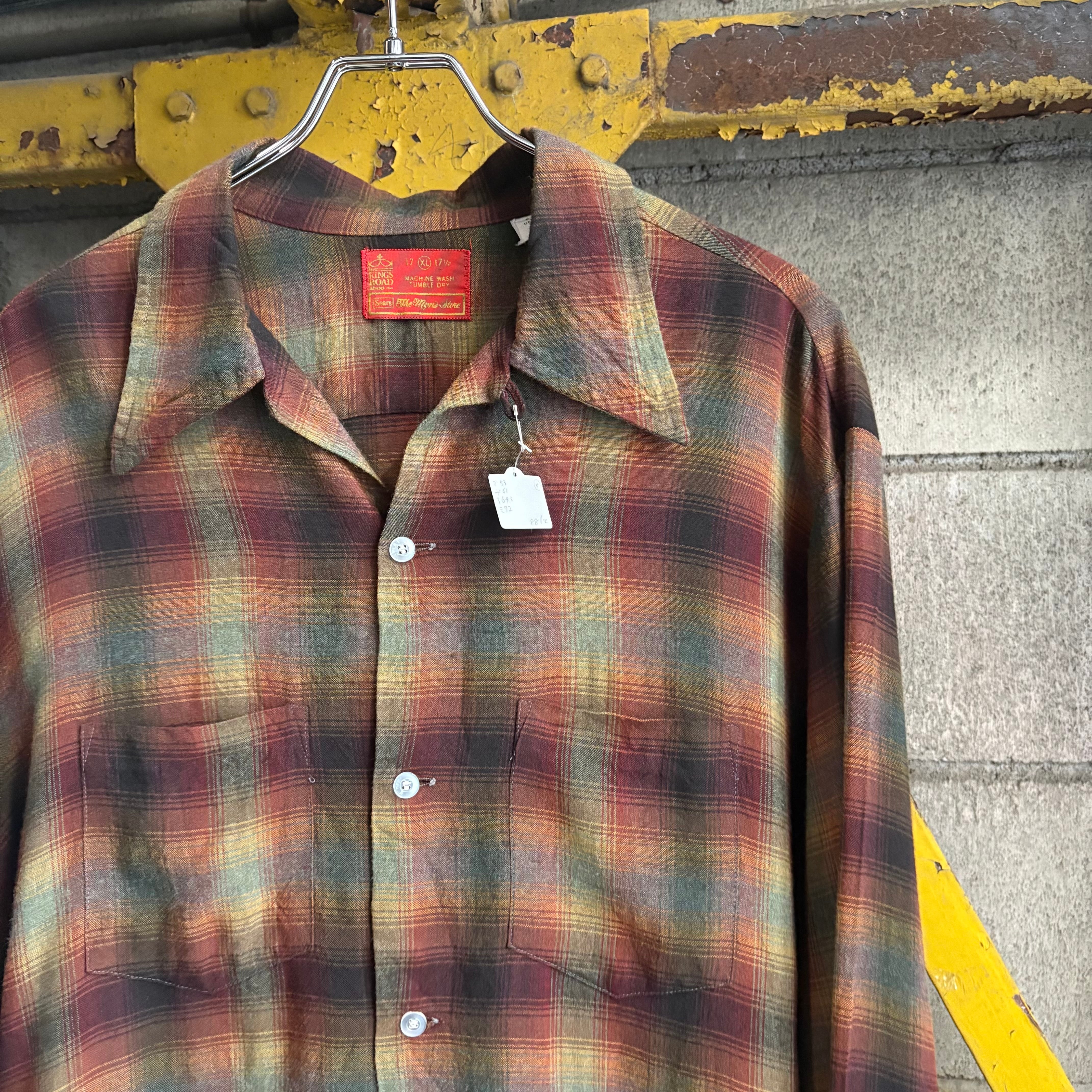 【XL‼︎】70’s Sears Shadow Plaid Open Collar Rayon Shirt “KINGS ROAD”