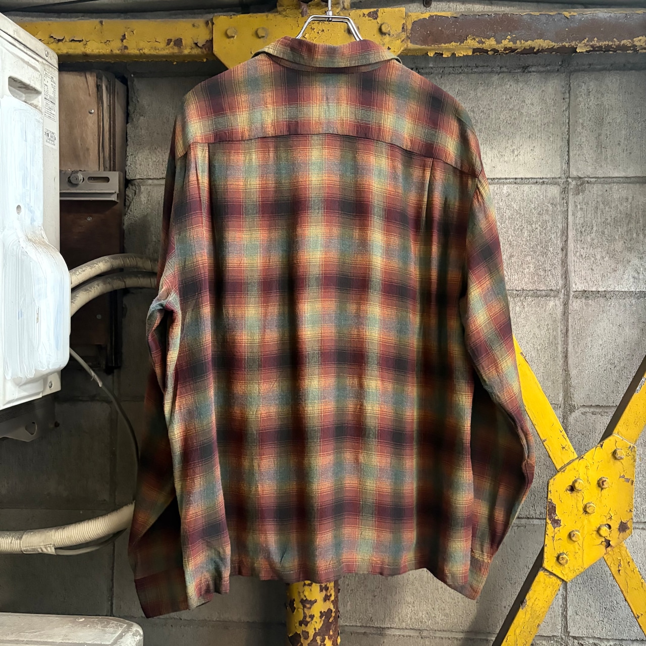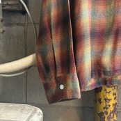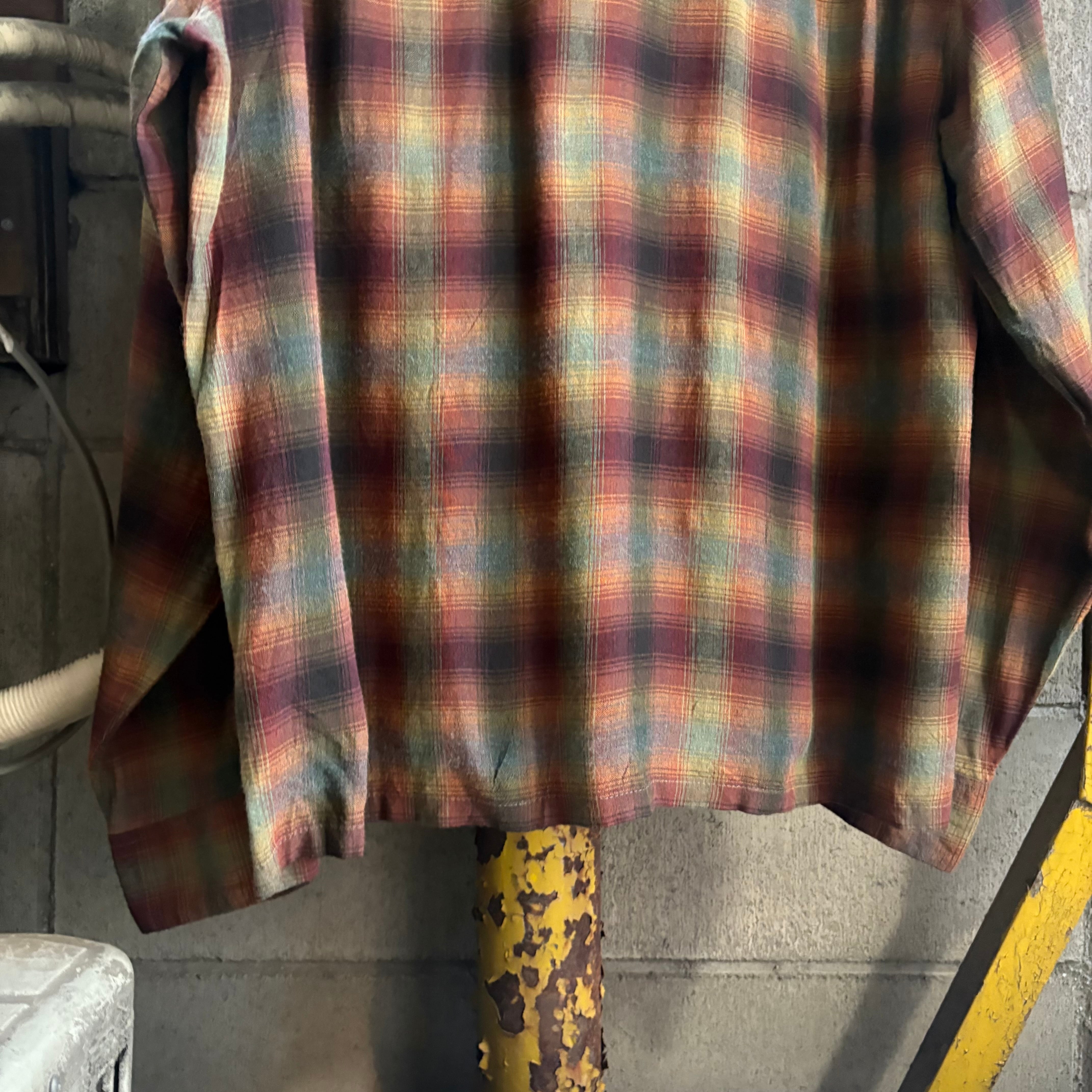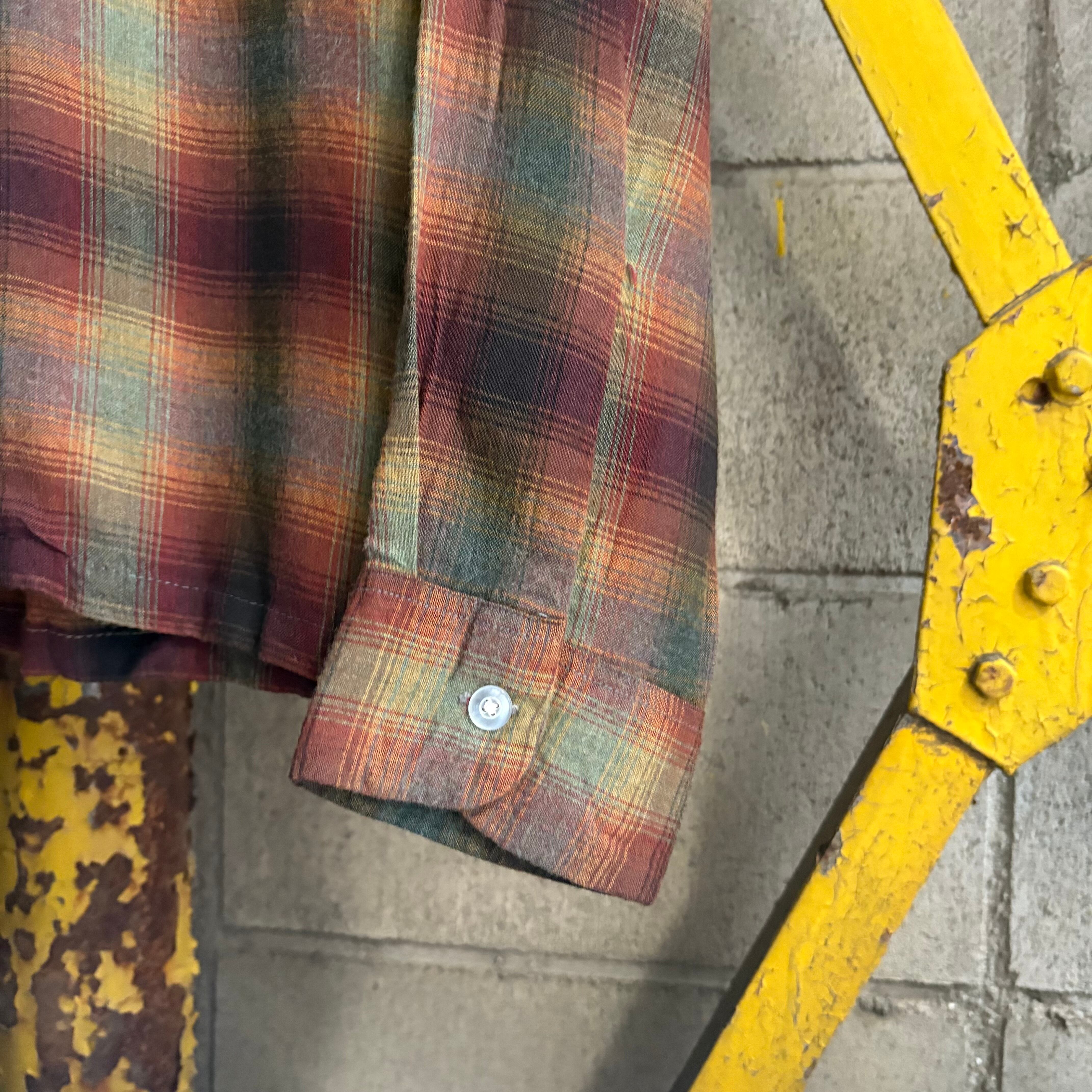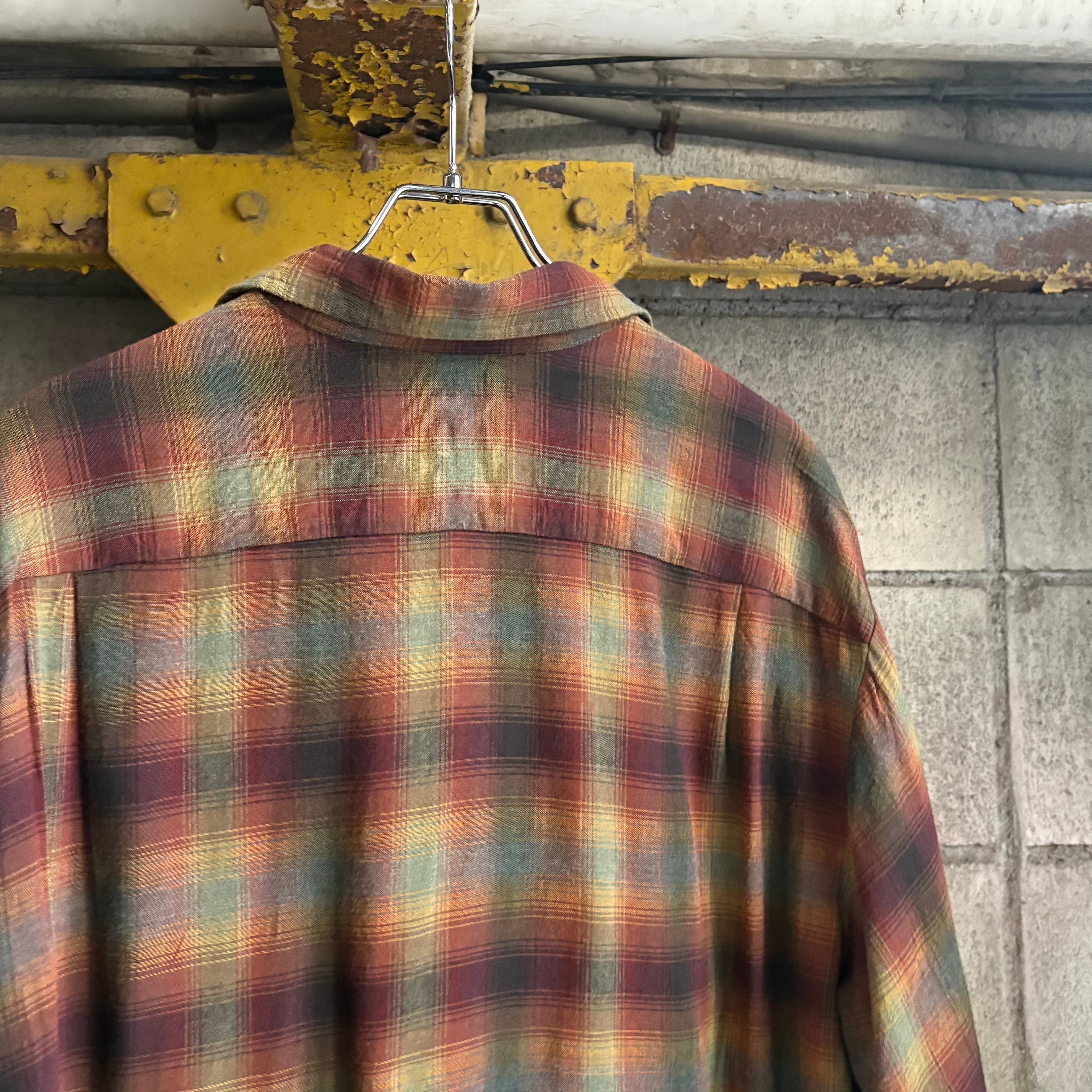 【XL‼︎】70’s Sears Shadow Plaid Open Collar Rayon Shirt “KINGS ROAD”