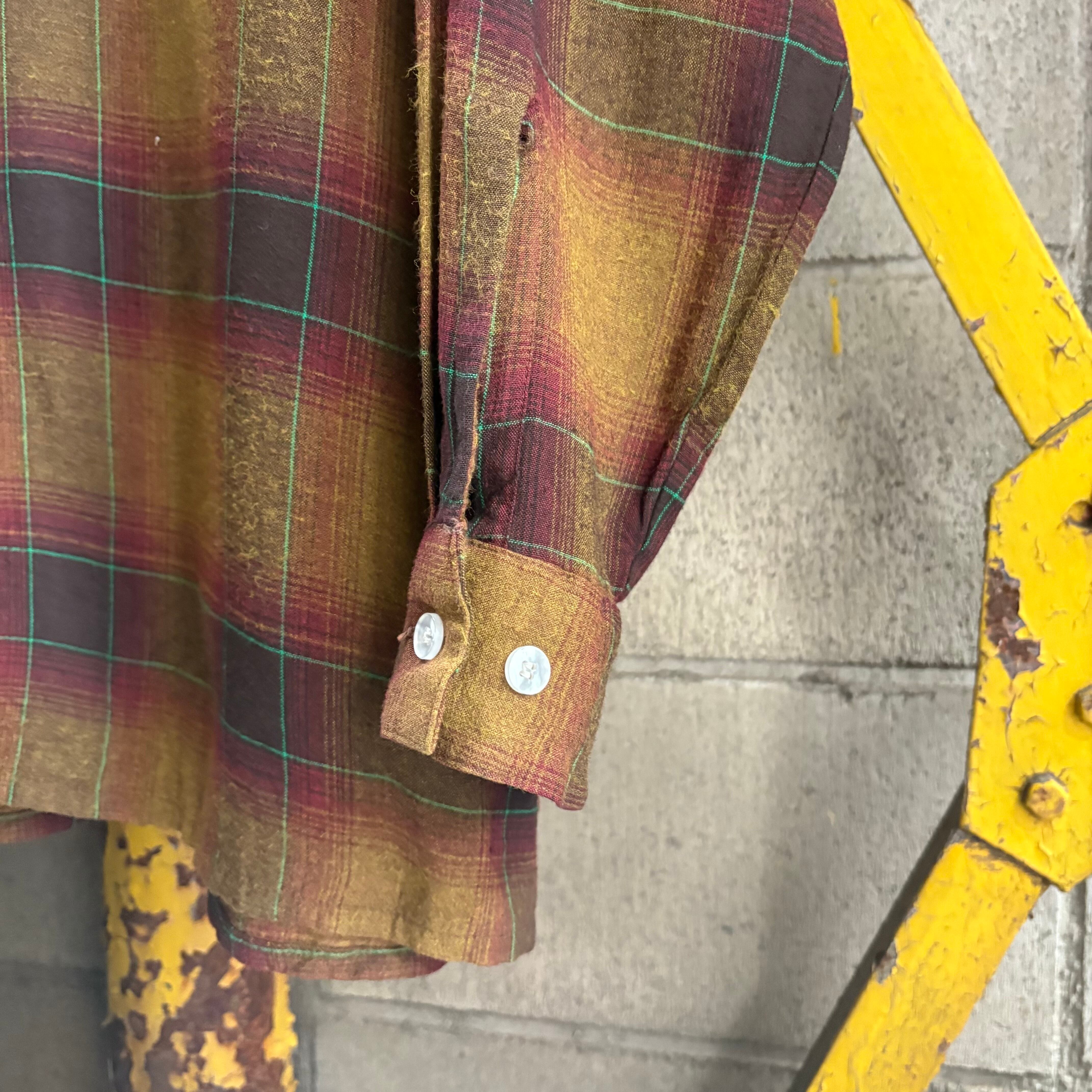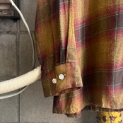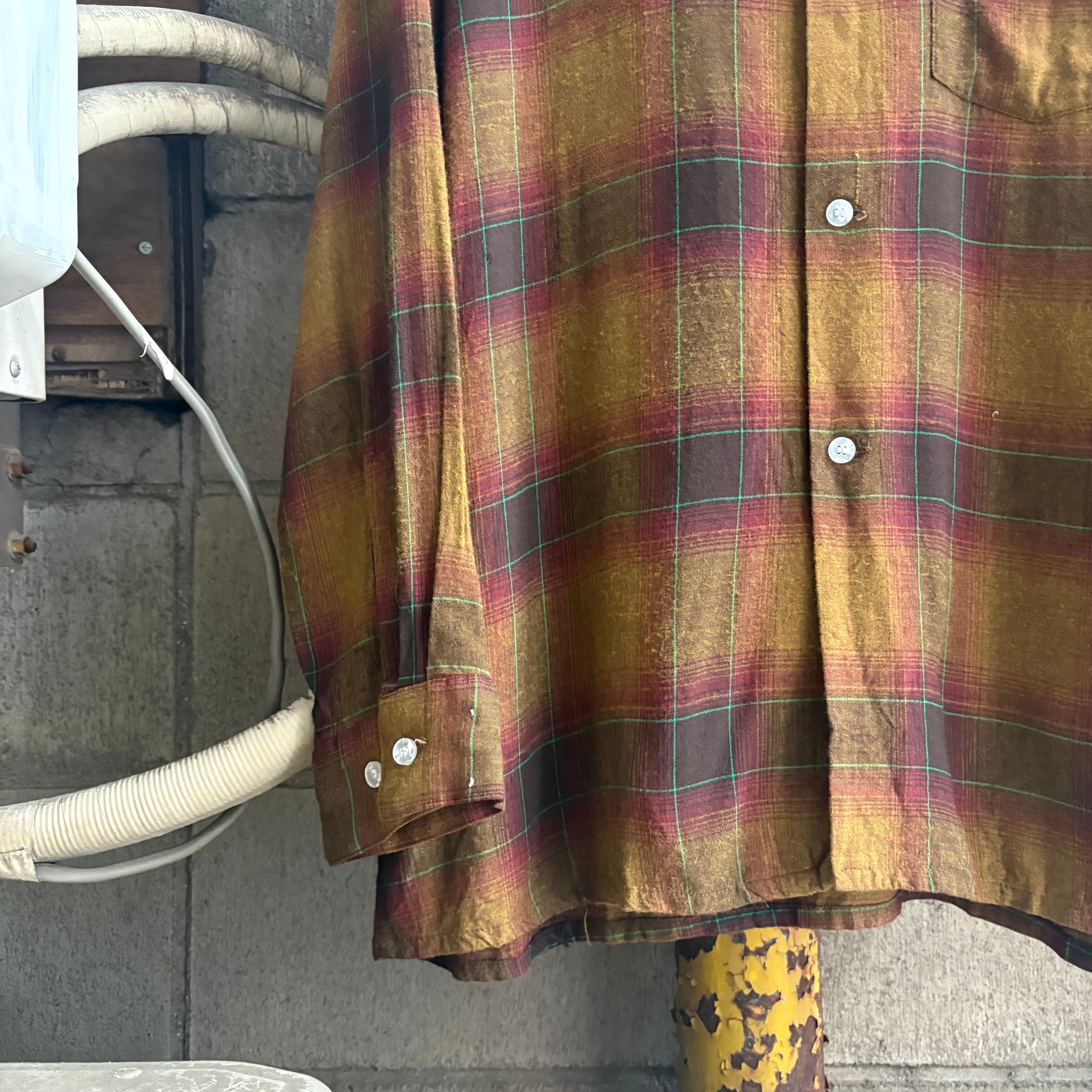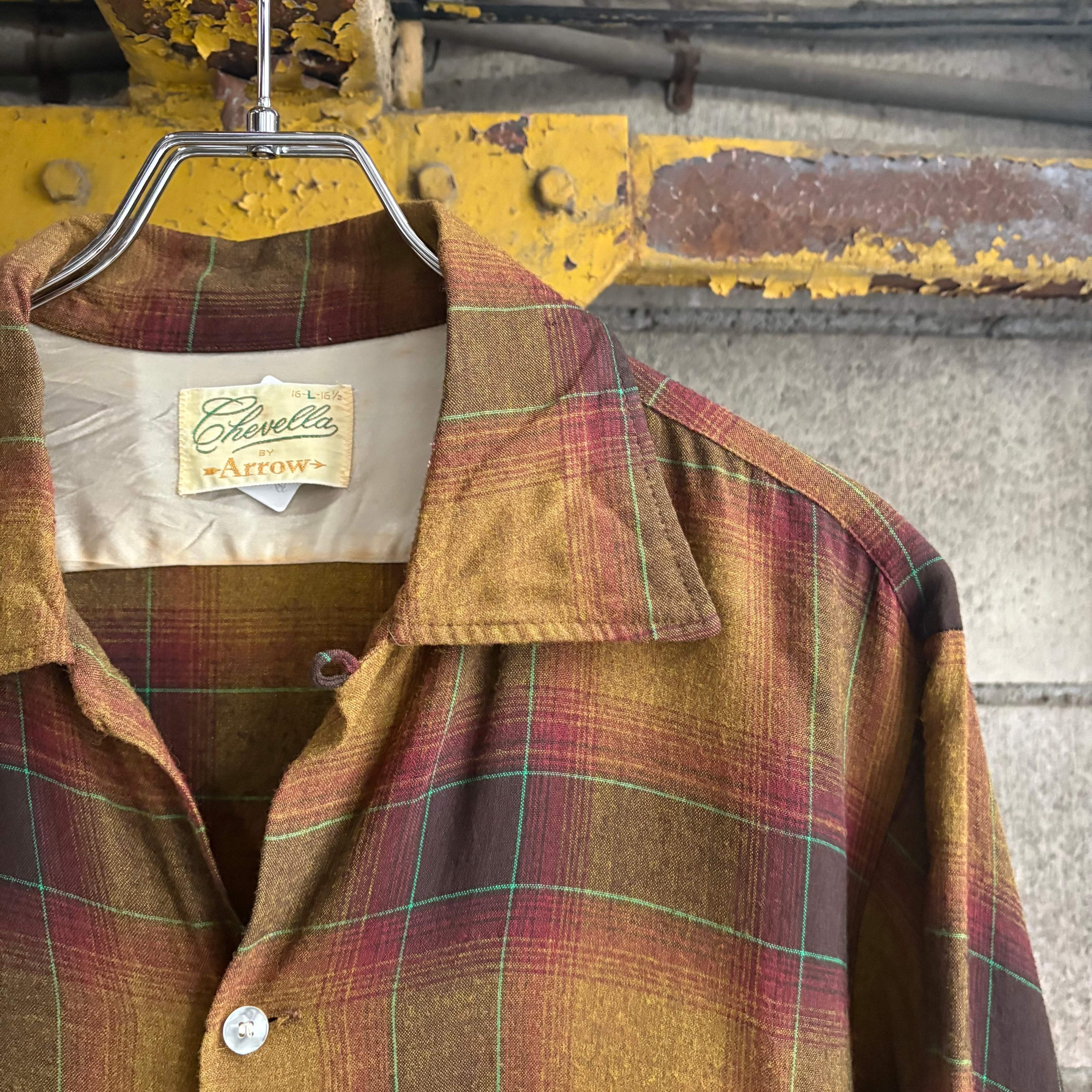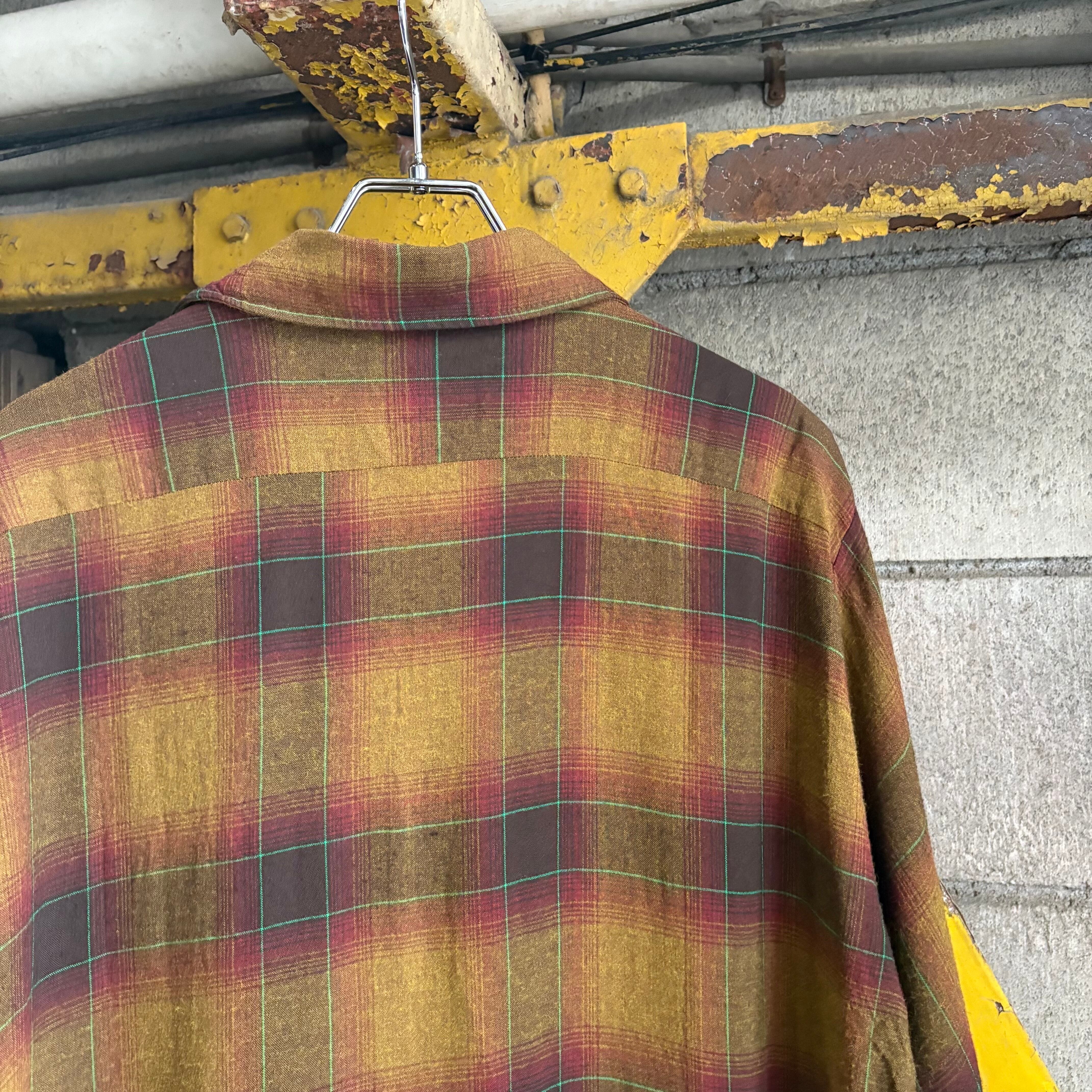 70’s Arrow Shadow Plaid Open Collar Rayon Shirt