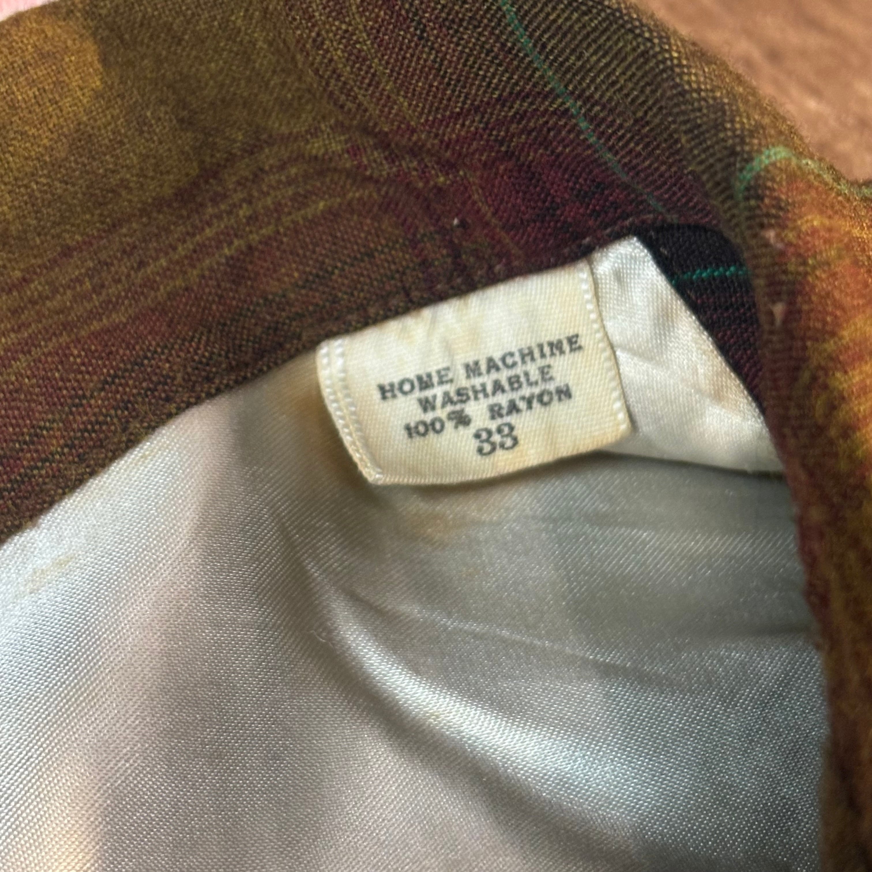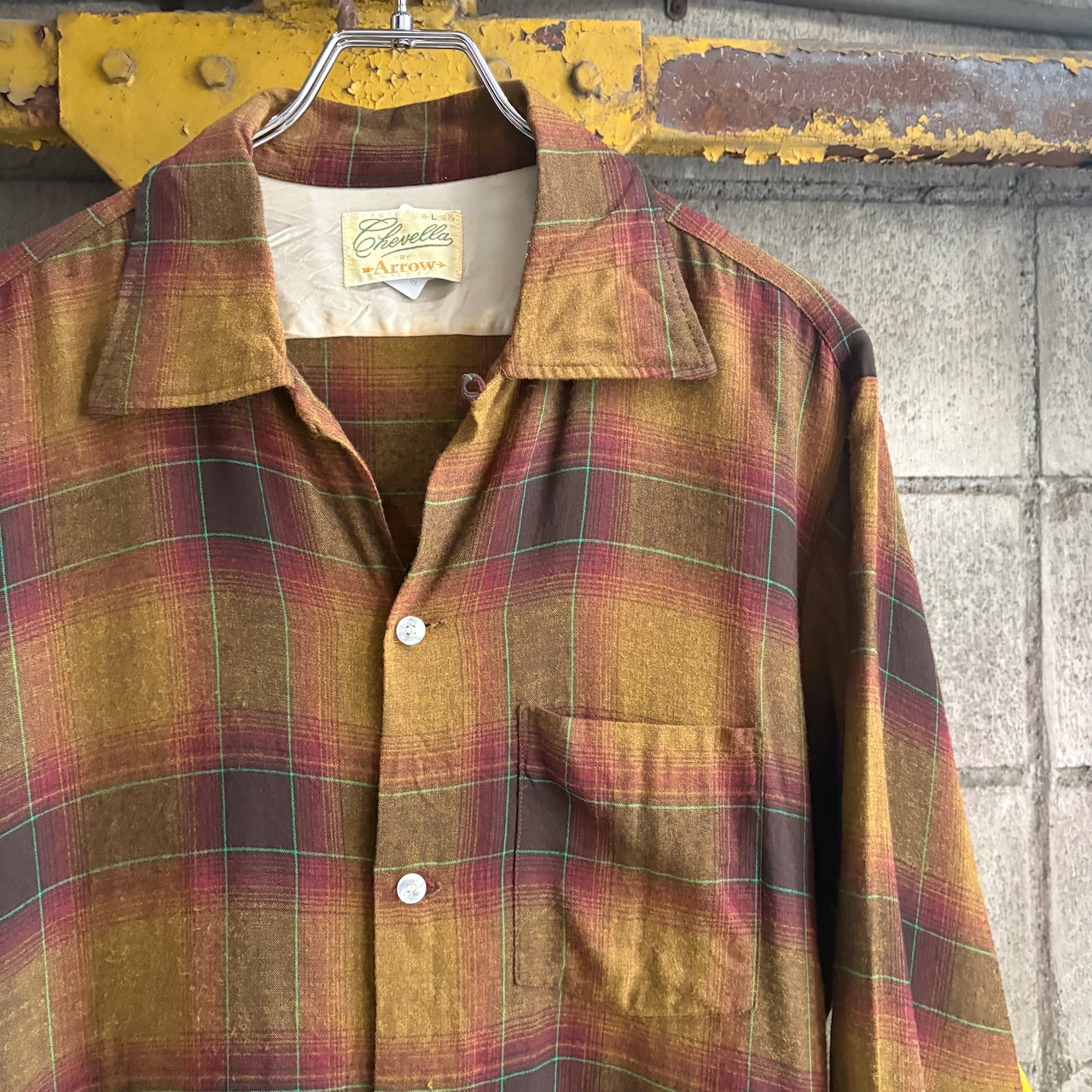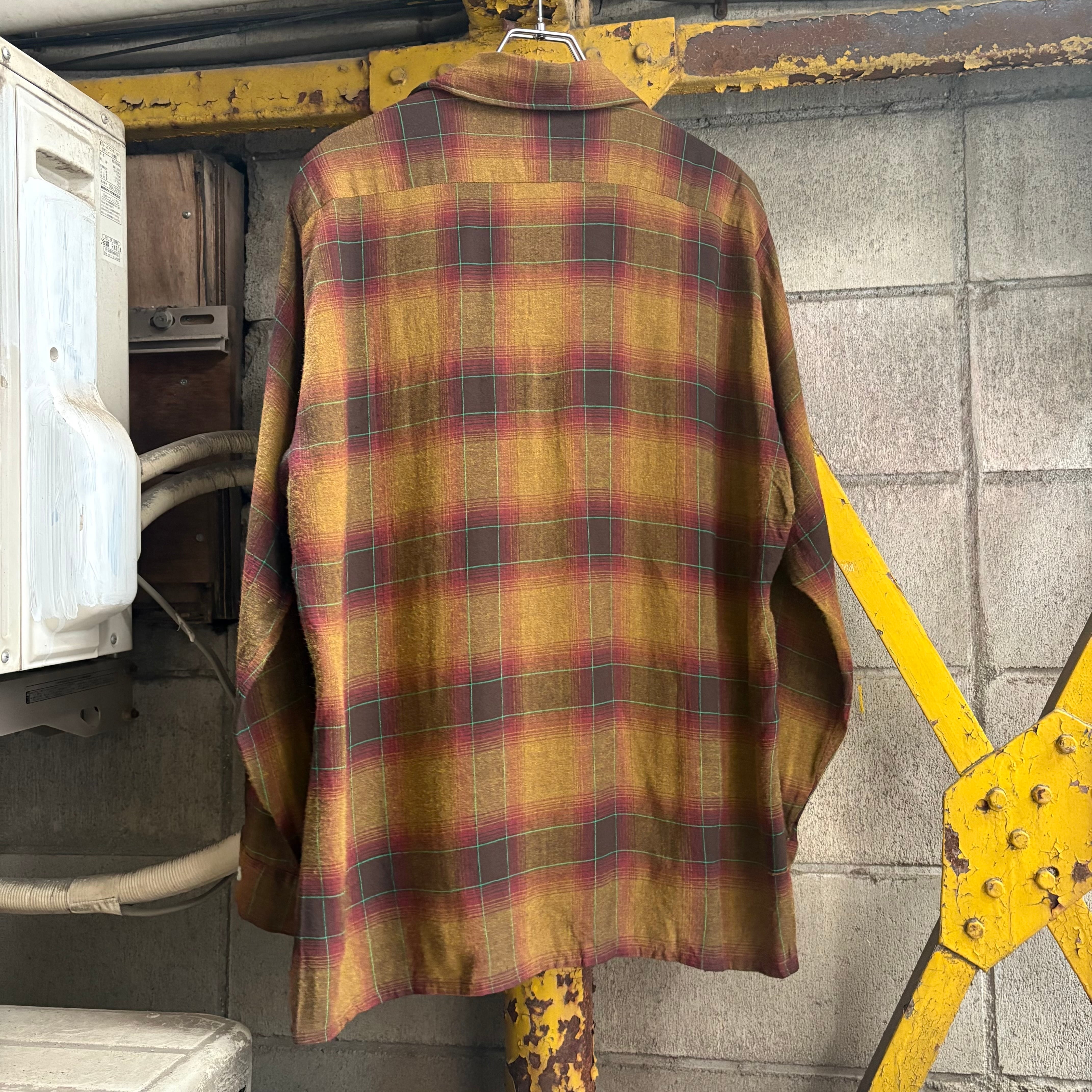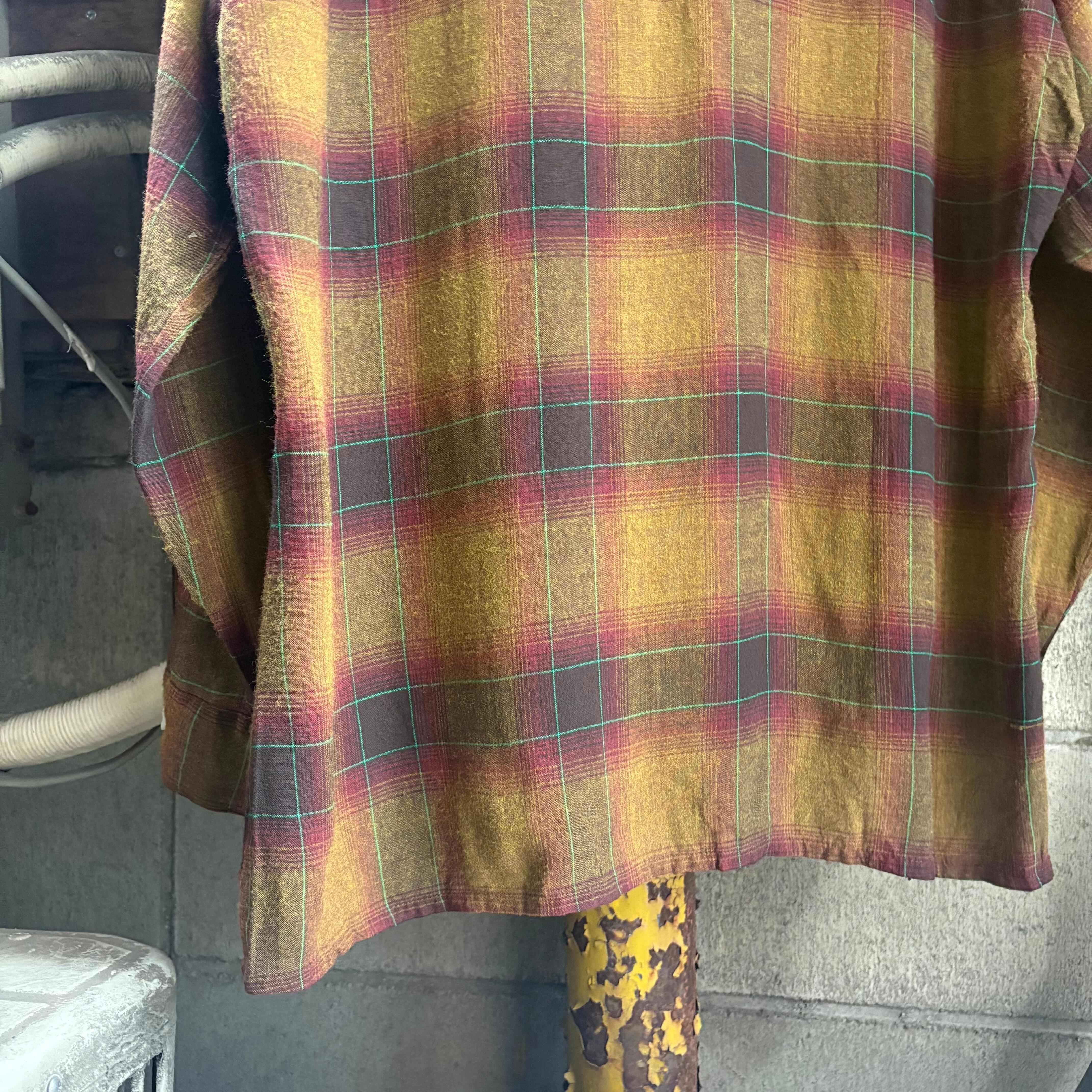 70’s Arrow Shadow Plaid Open Collar Rayon Shirt