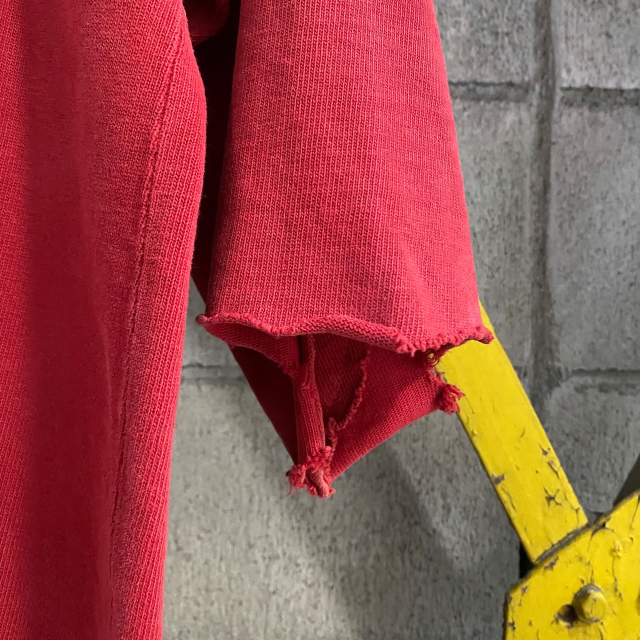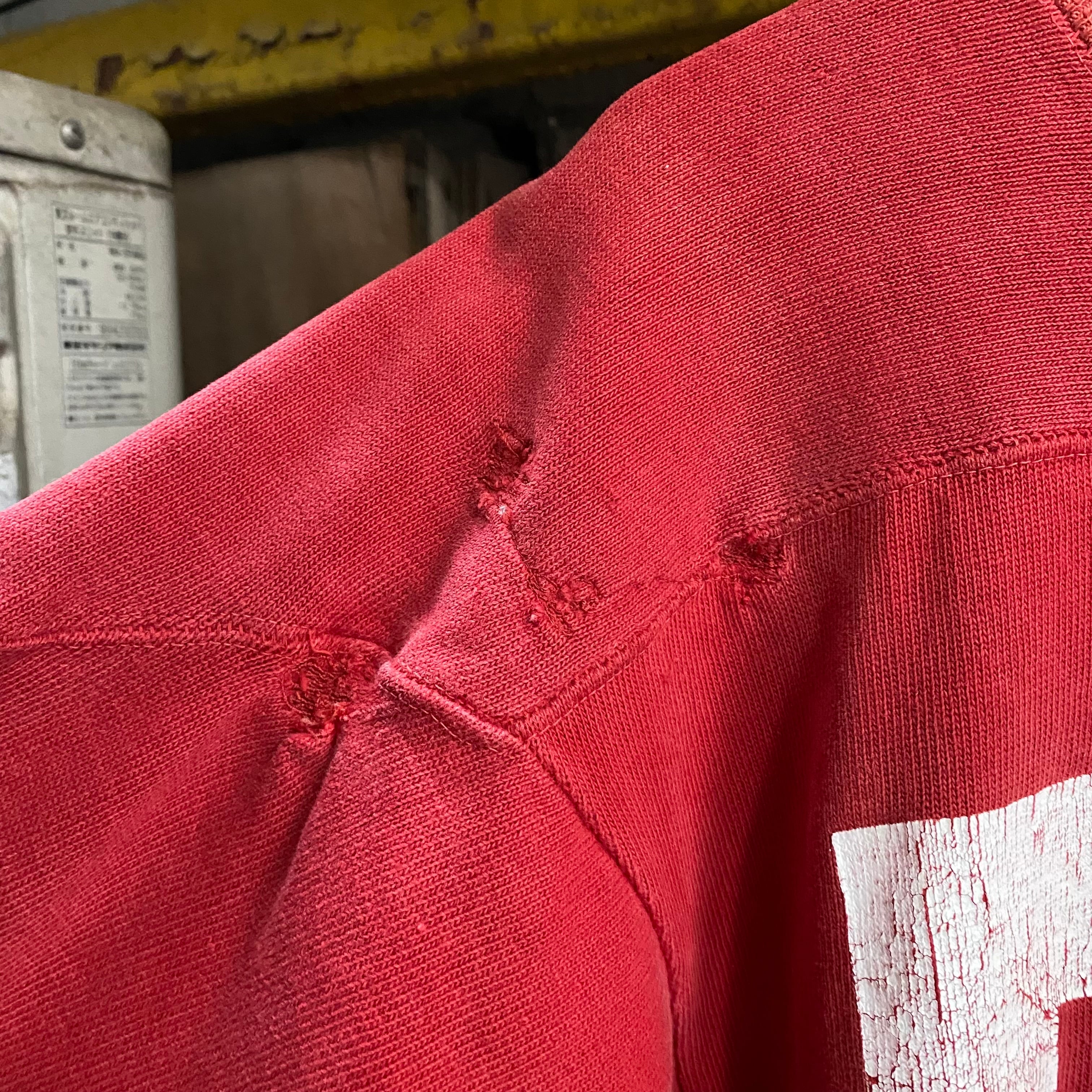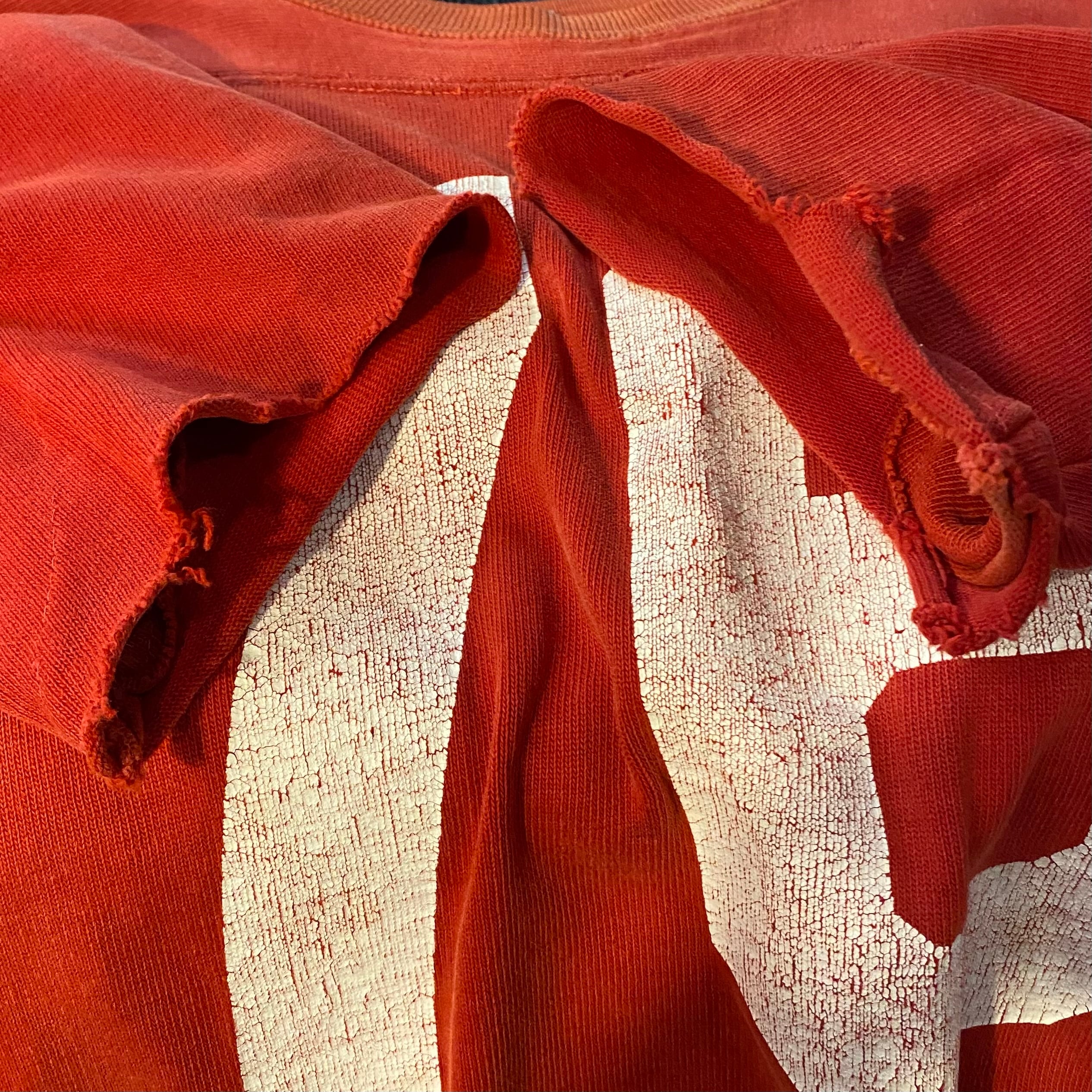 プリントのクラッキングもそうですがところどころリペアやダメージ、袖カットされている個体ですが、フェードのおかげか良い雰囲気にまとまっています。