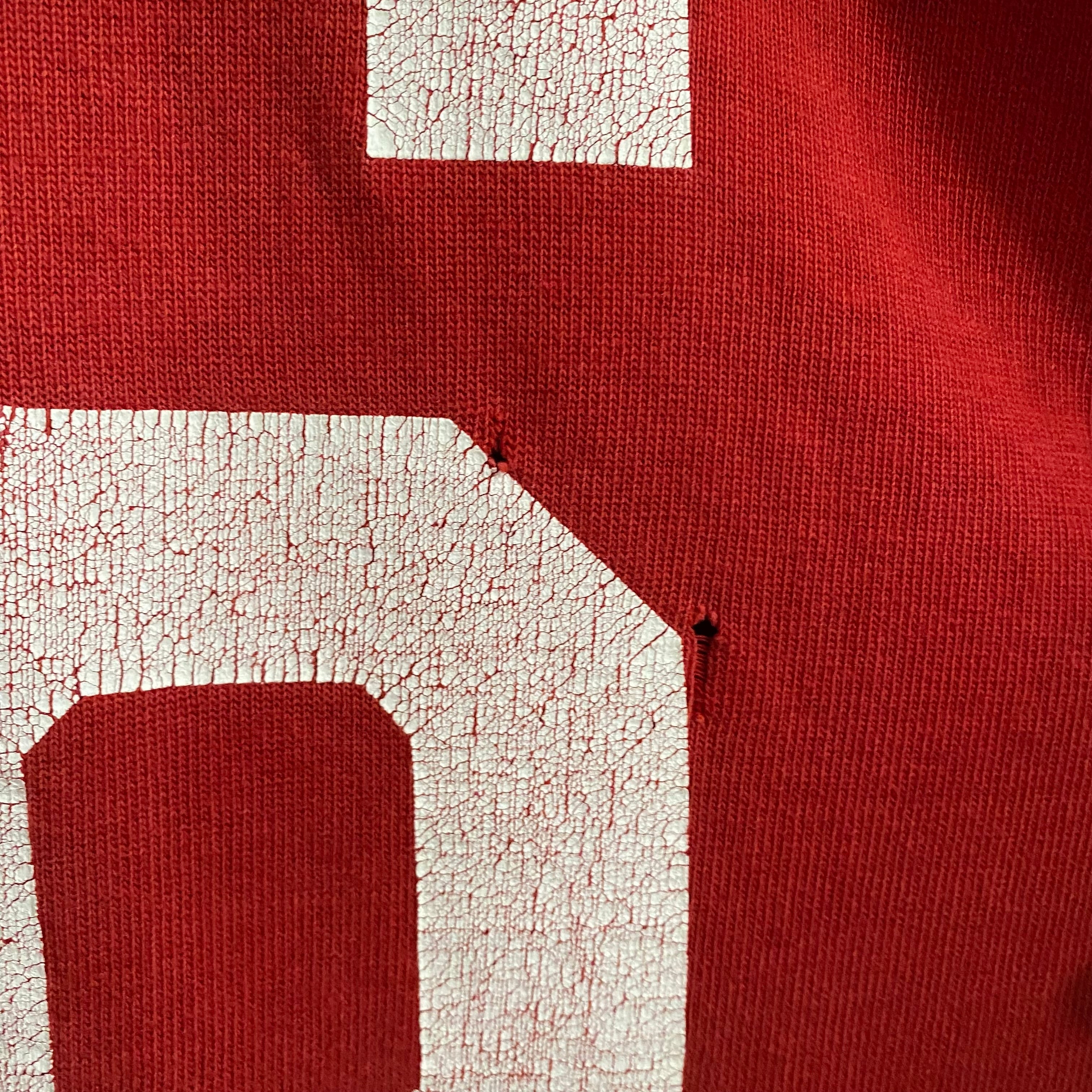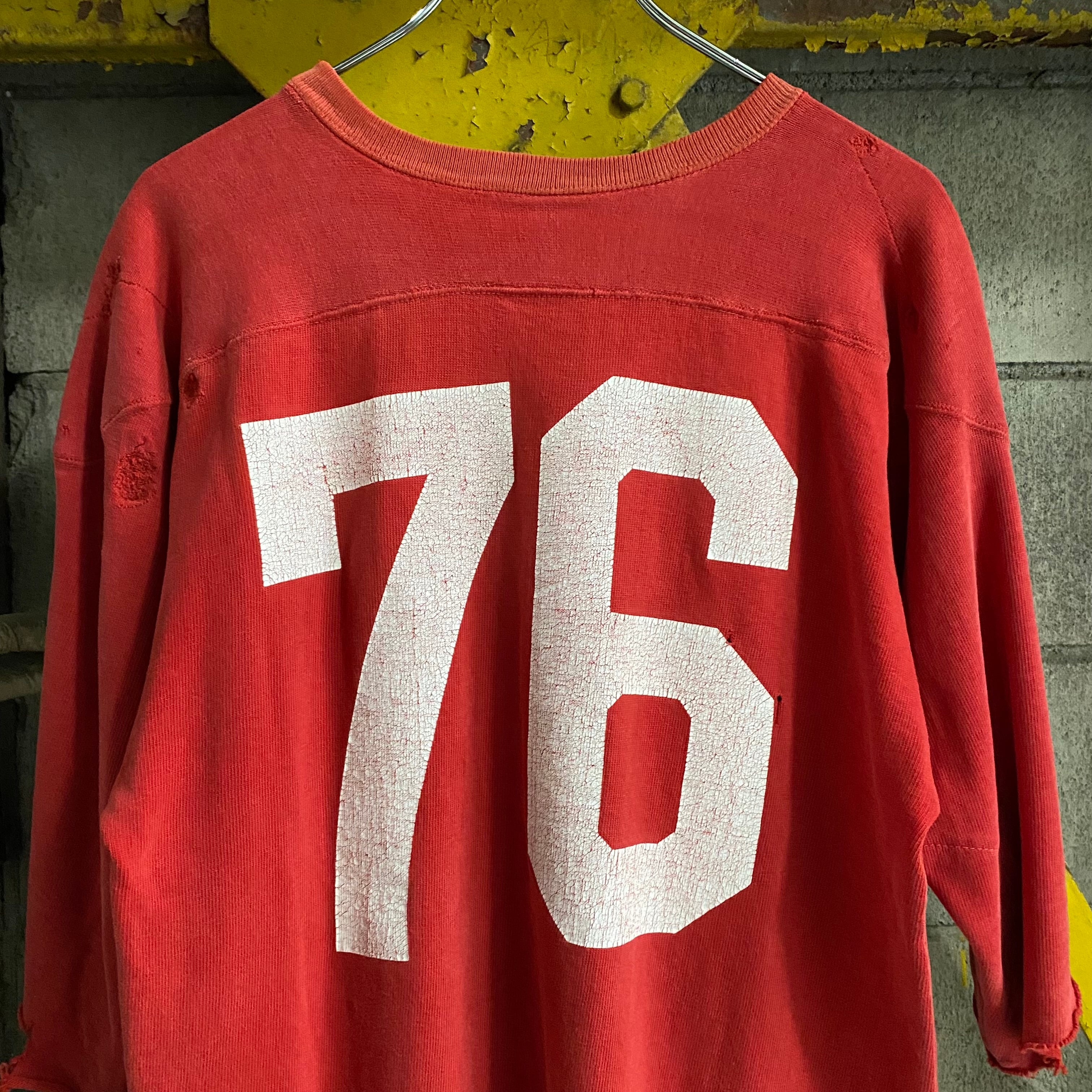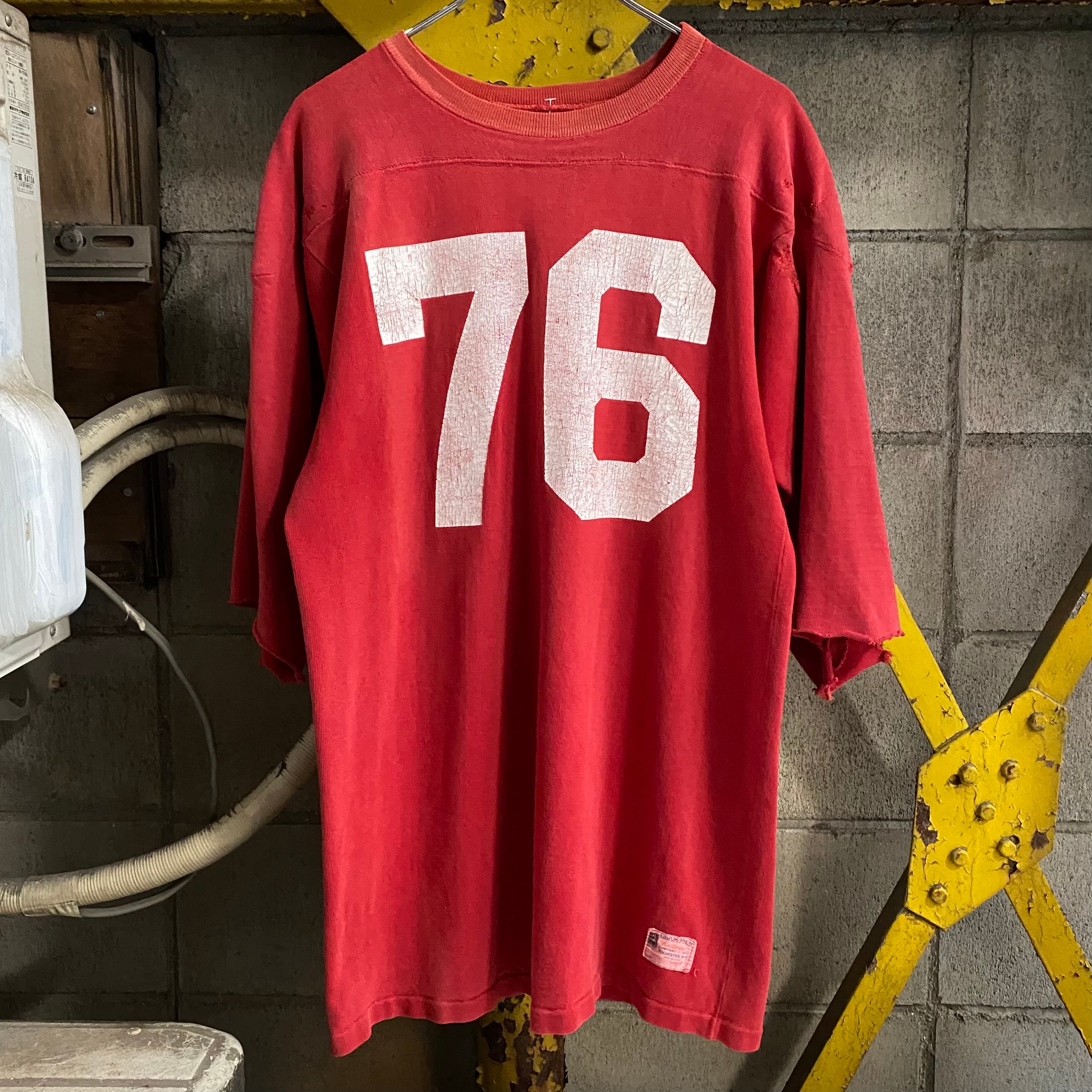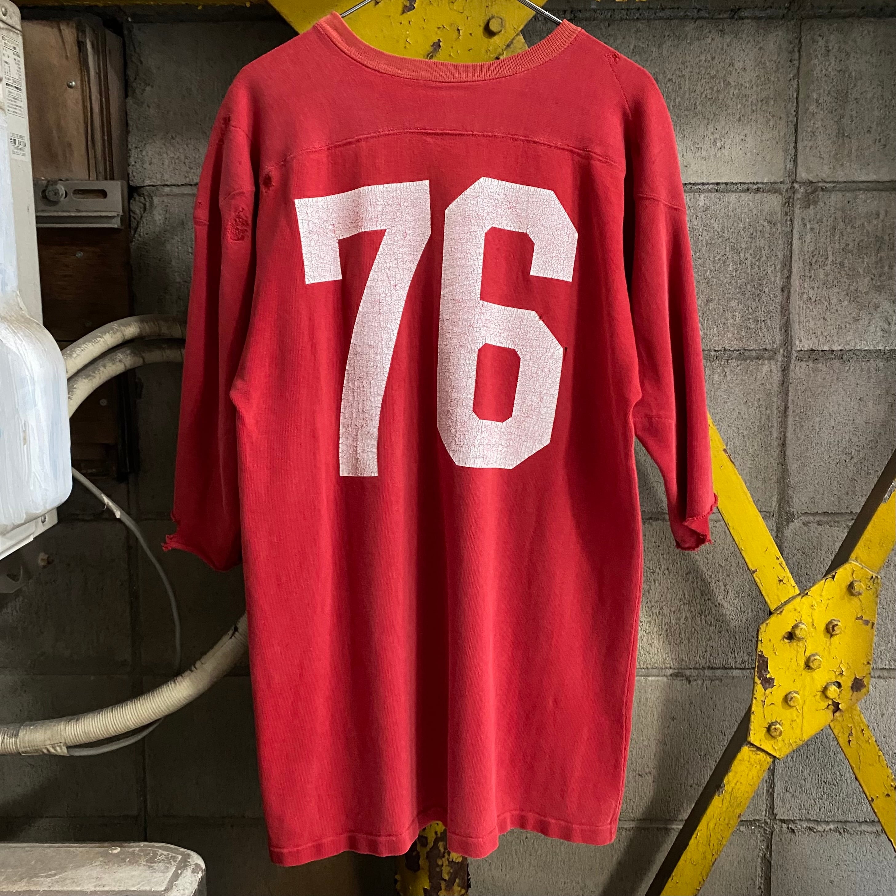 プリントのクラッキングもそうですがところどころリペアやダメージ、袖カットされている個体ですが、フェードのおかげか良い雰囲気にまとまっています。