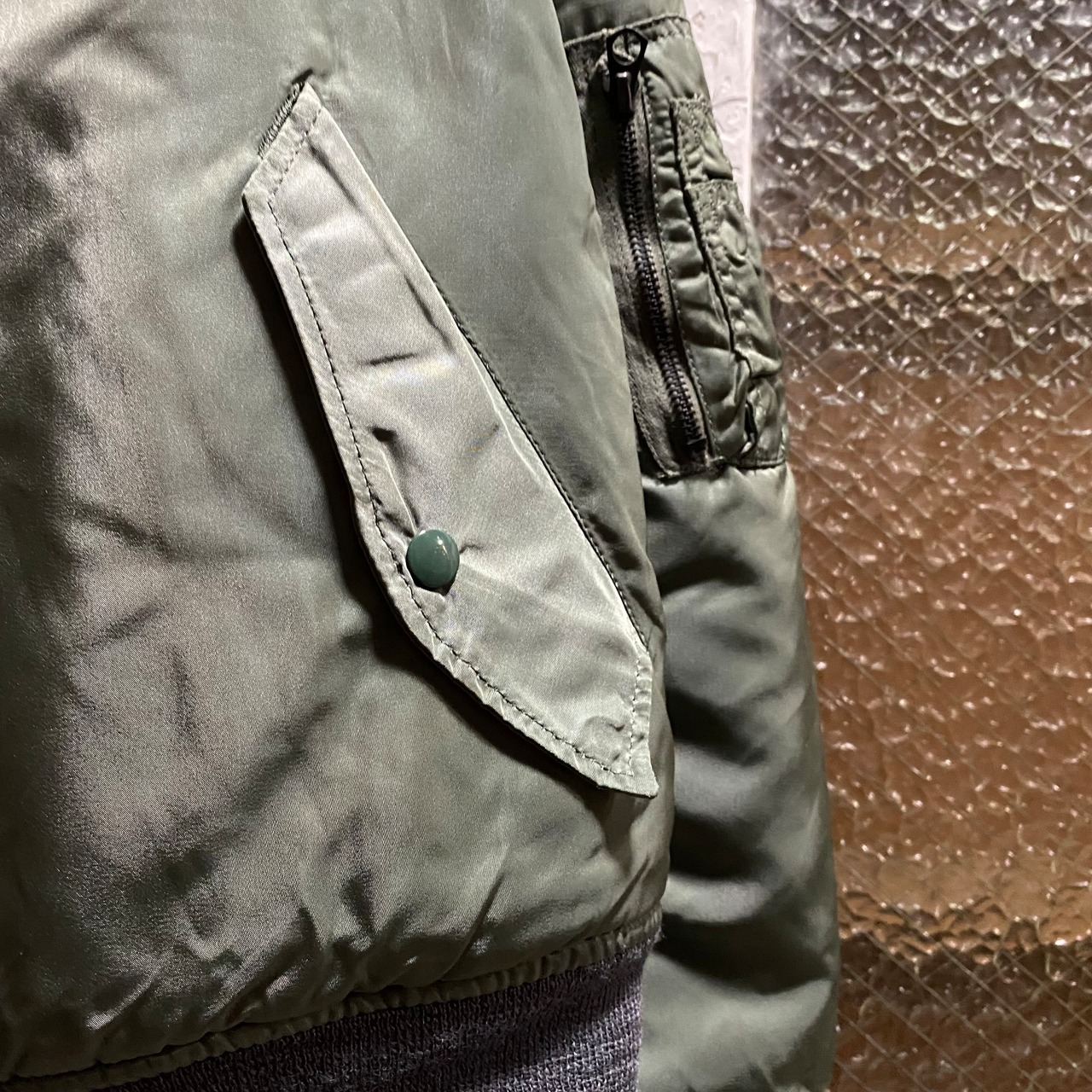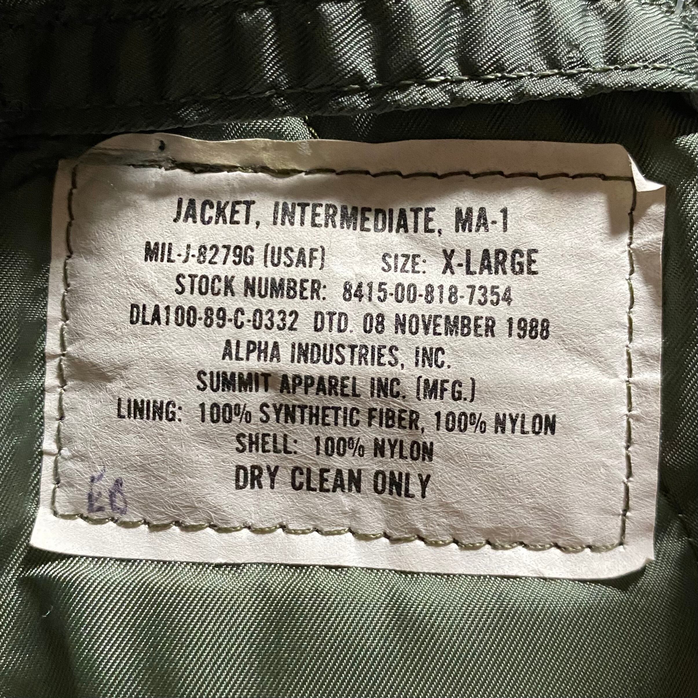 80年代になるとCWUの台頭から実戦で使われることが減り、グランドクルー用に支給されることが増えましたが、こちらは裏キルティングのためおそらく最後のフライトジャケットとしてのMA-1。