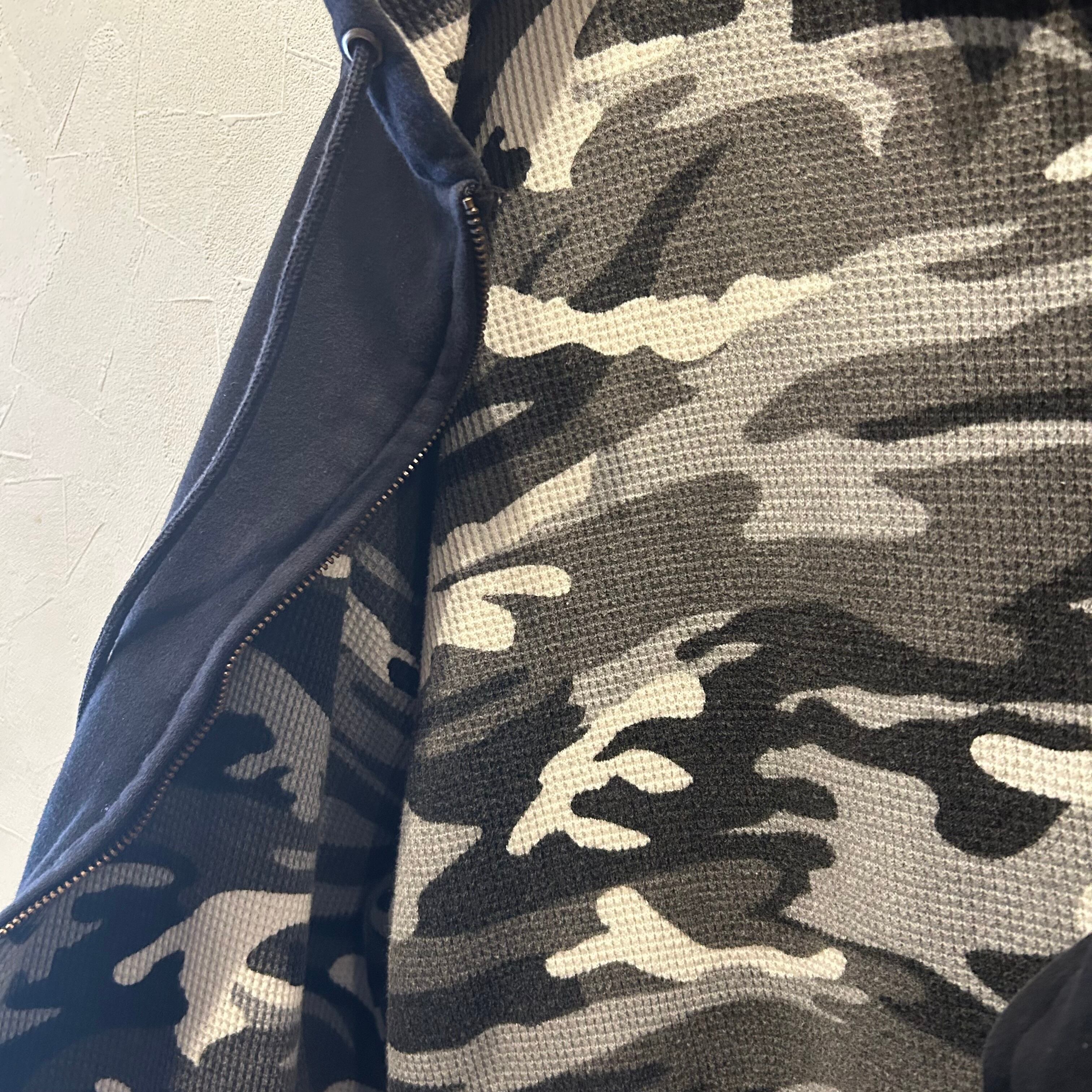 その中でも、ブラックのボディに、裏地はサーマルのダブルフェイス。それだけではなく、無彩色でデザインされた裏地のカモ柄!