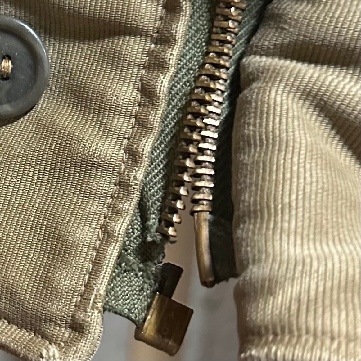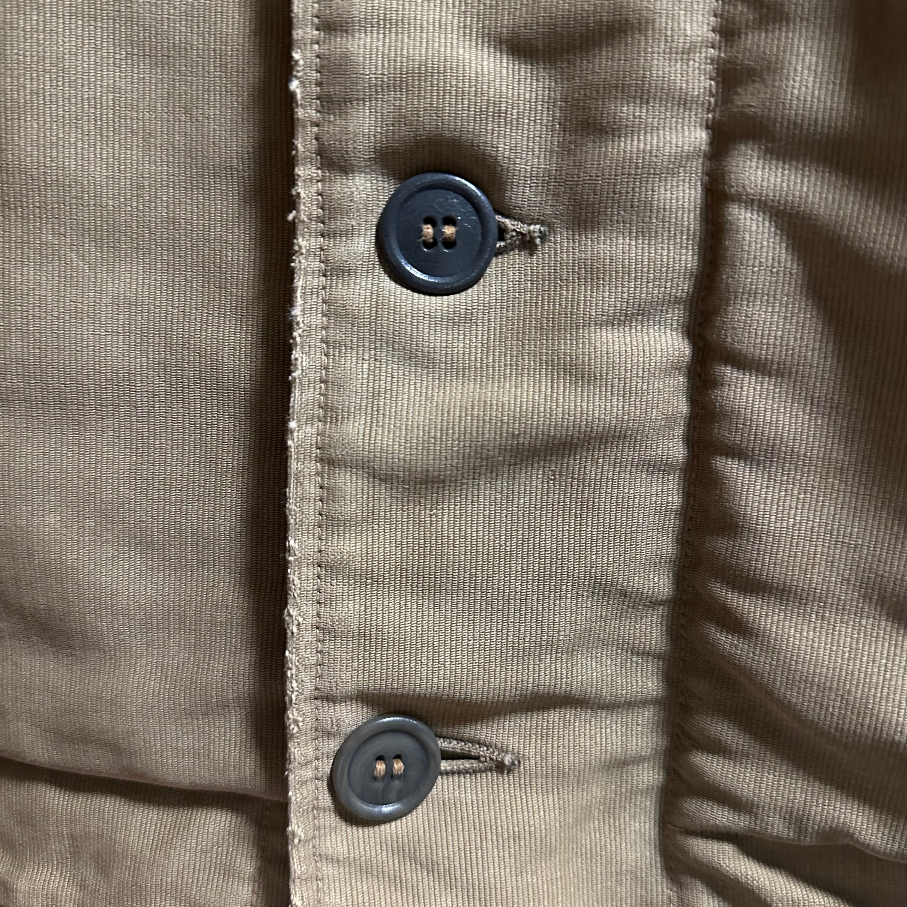 ジップ欠損。ボタン一部変更。袖、裾ほつれあり。フロント一部汚れ有り。首周りライナー1部剥がれ有り。