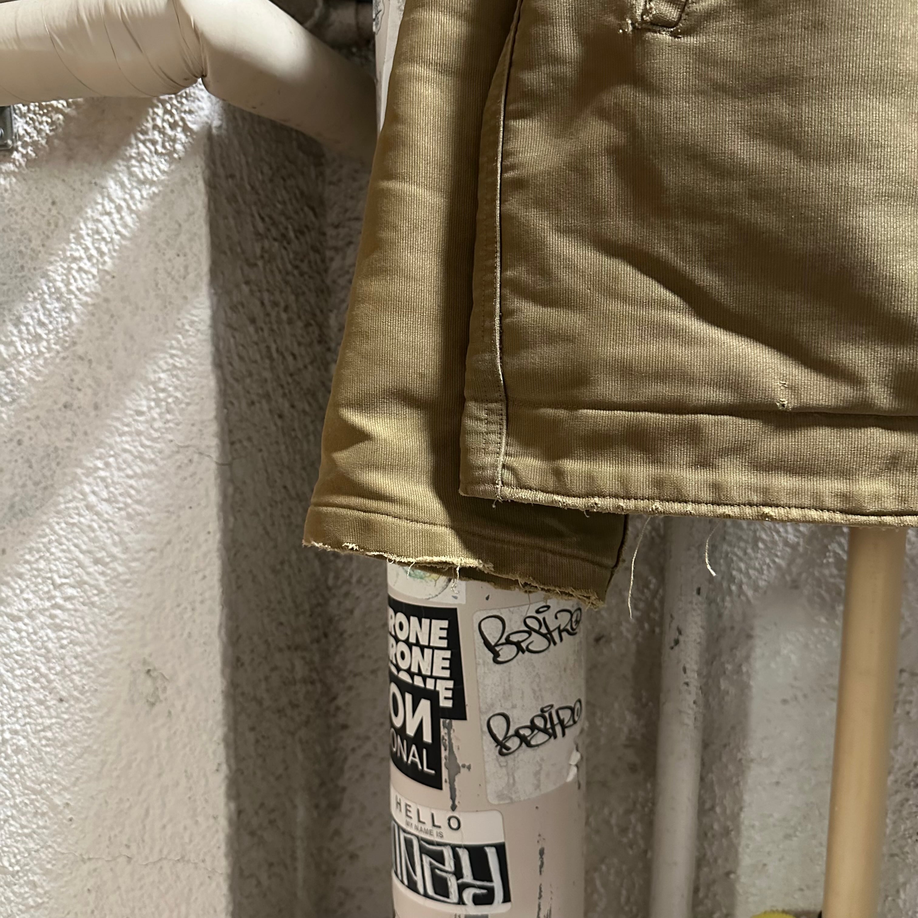 着用する時は大体ジップは使わず、前開けで着用するか、ボタンを止めるかなのでジップが無くてもあまり支障はありません。