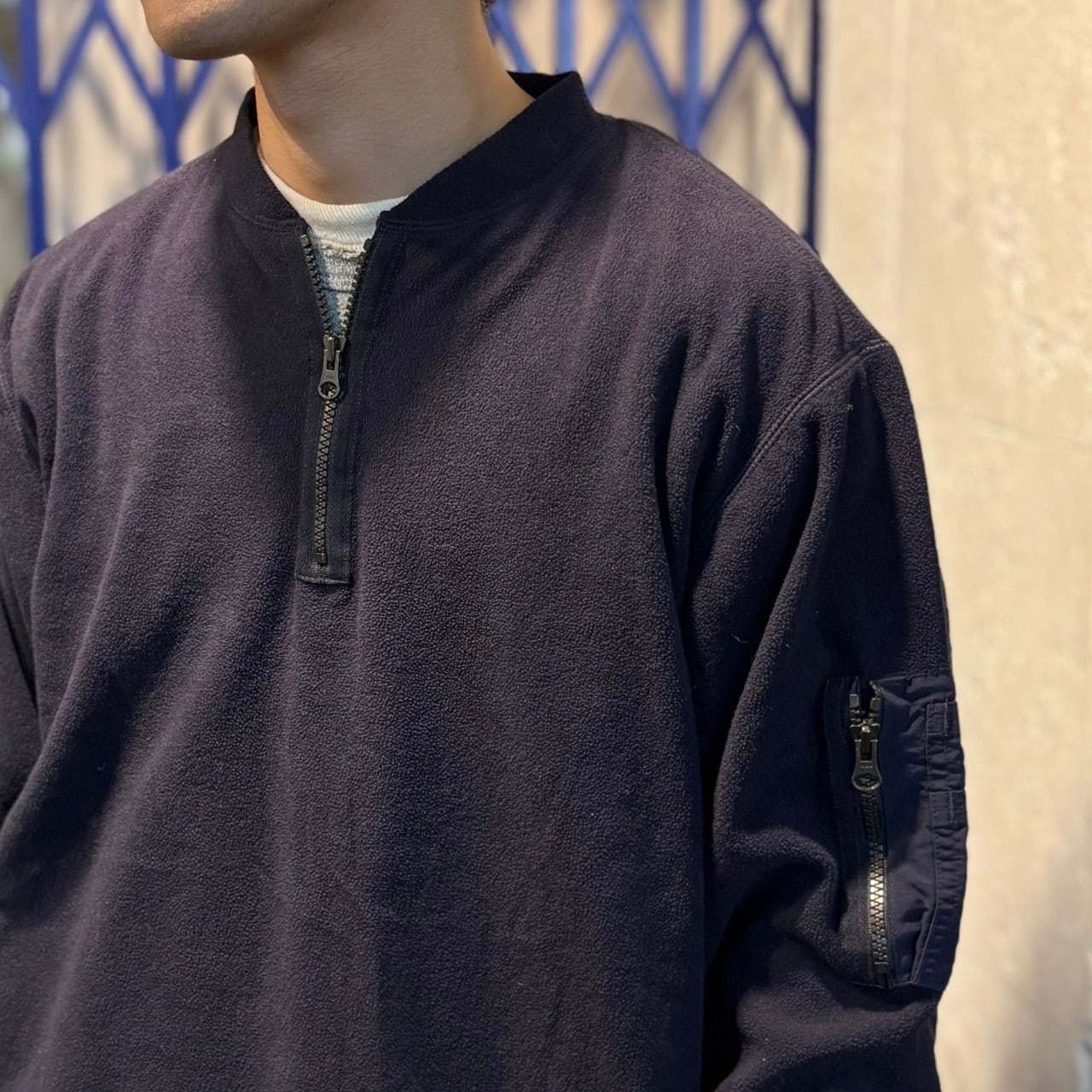 ハーフジップのフリースカットソー。