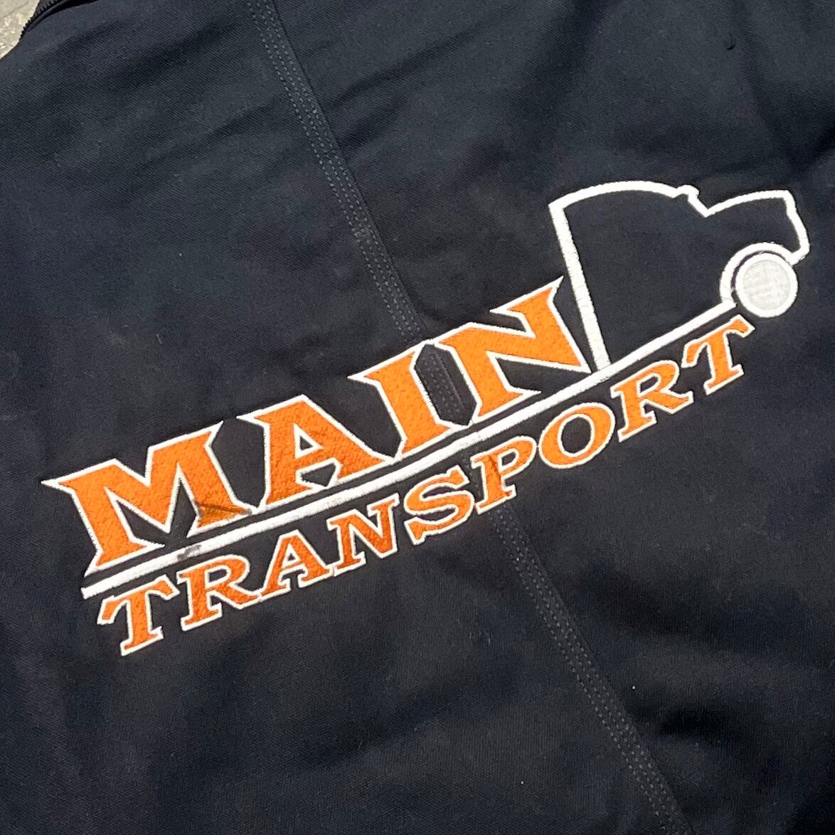 通常フロントの左胸に付くことの多い企業刺繍ですが、こちらはひと味違う背中で語れるタイプ
