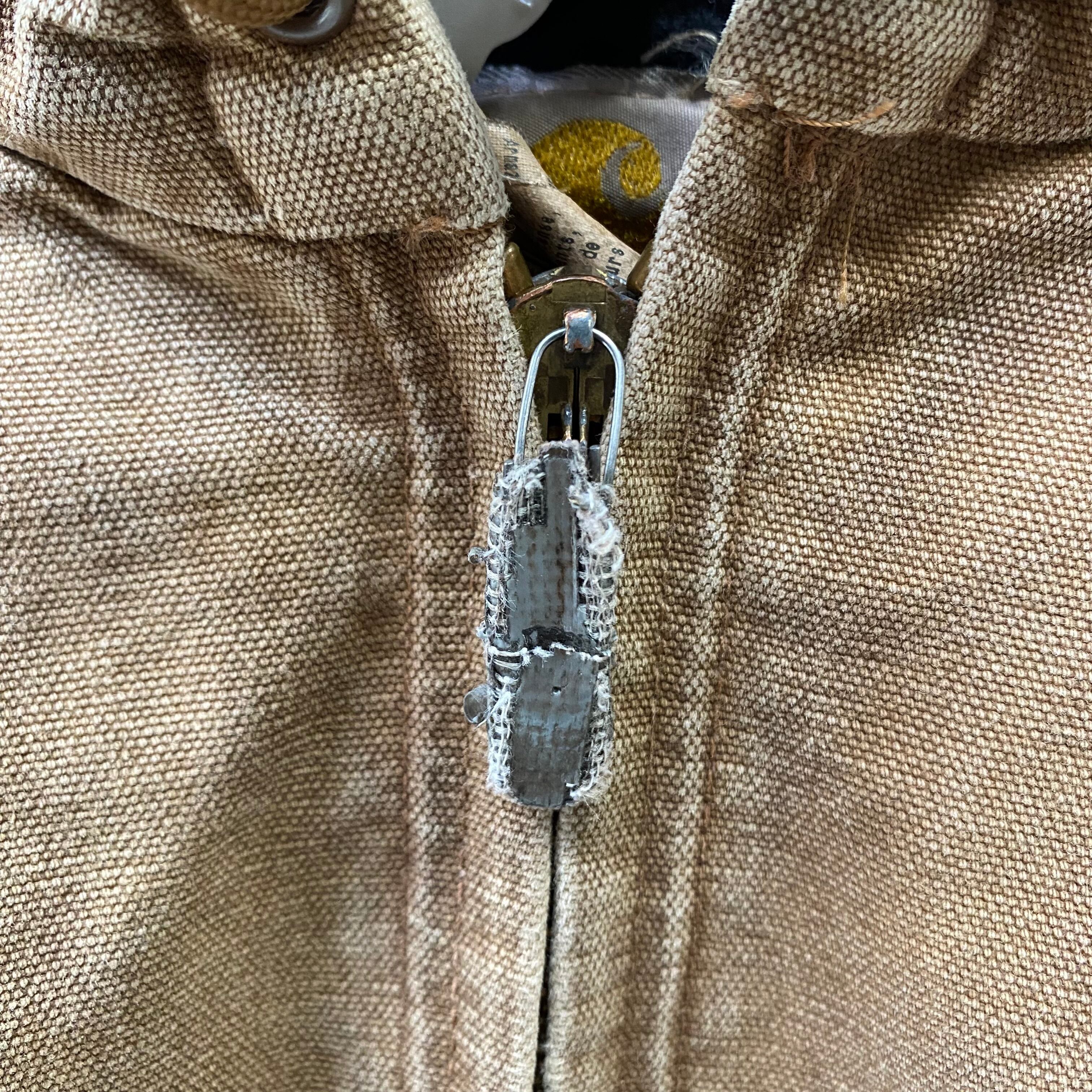 ジッパーの持ち手が欠損していますが、前の所有者によって新たな持ち手が付けられています。