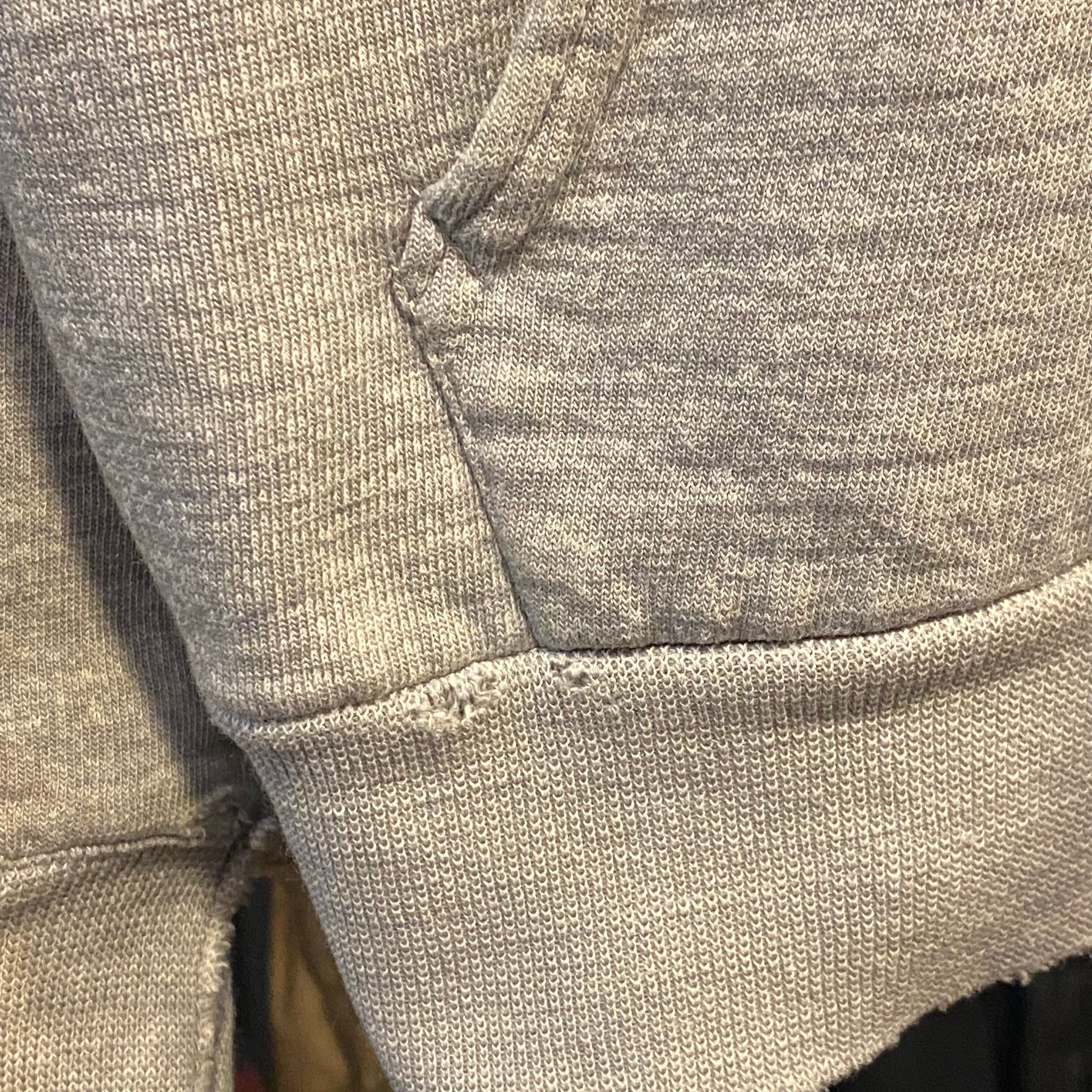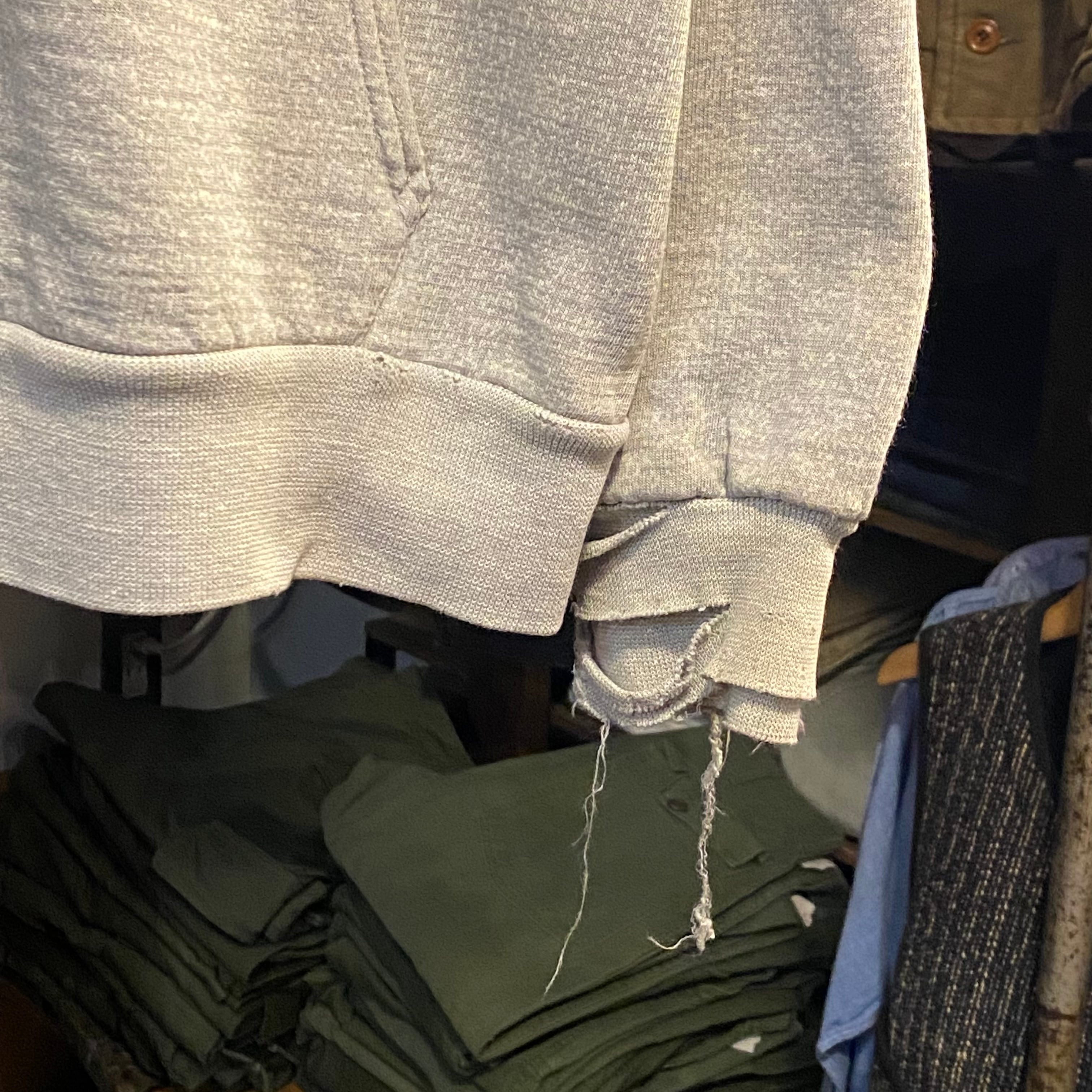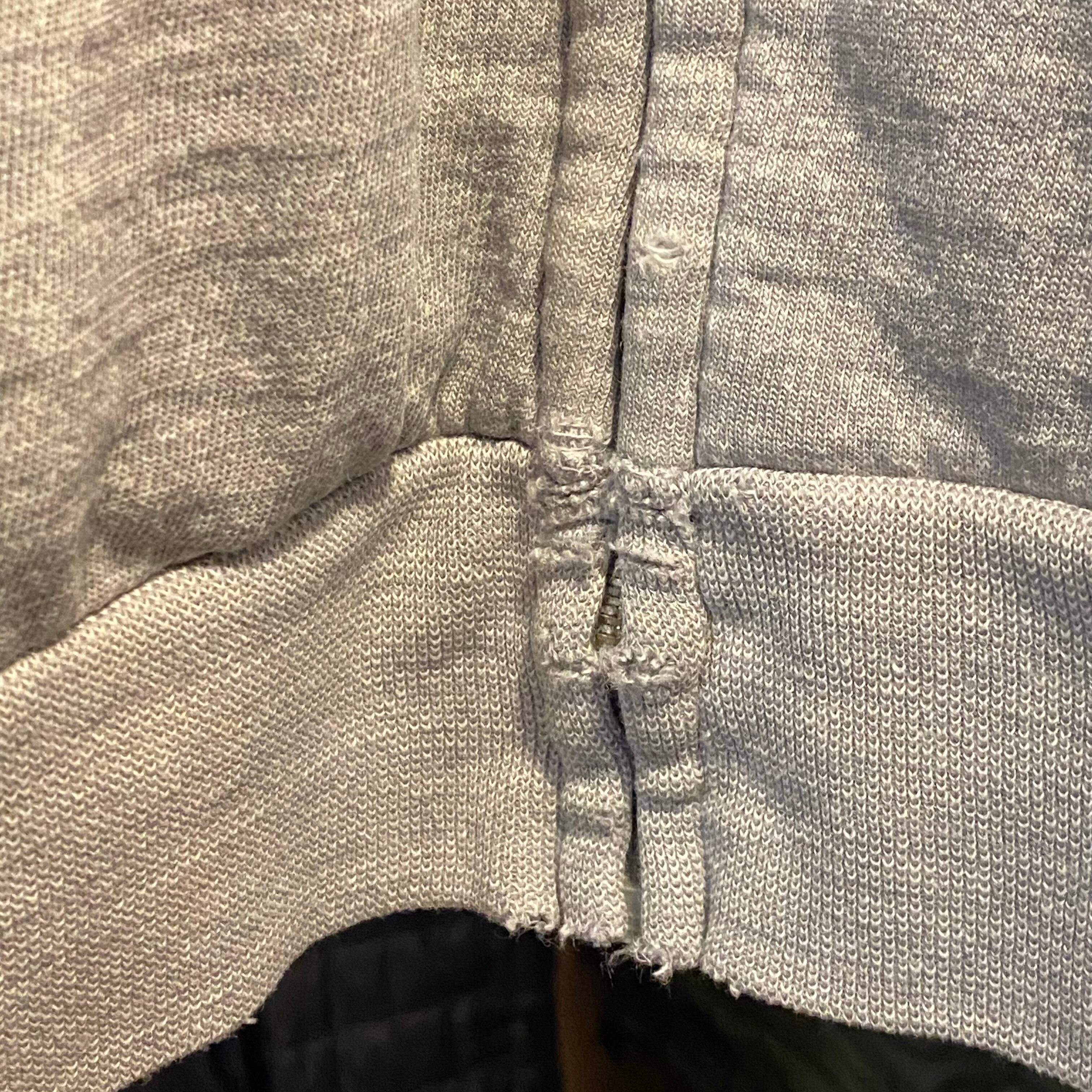 袖リブパンク、ダメージ有り。右袖に関しては通常二重になっているところ一重になってしまってます。
