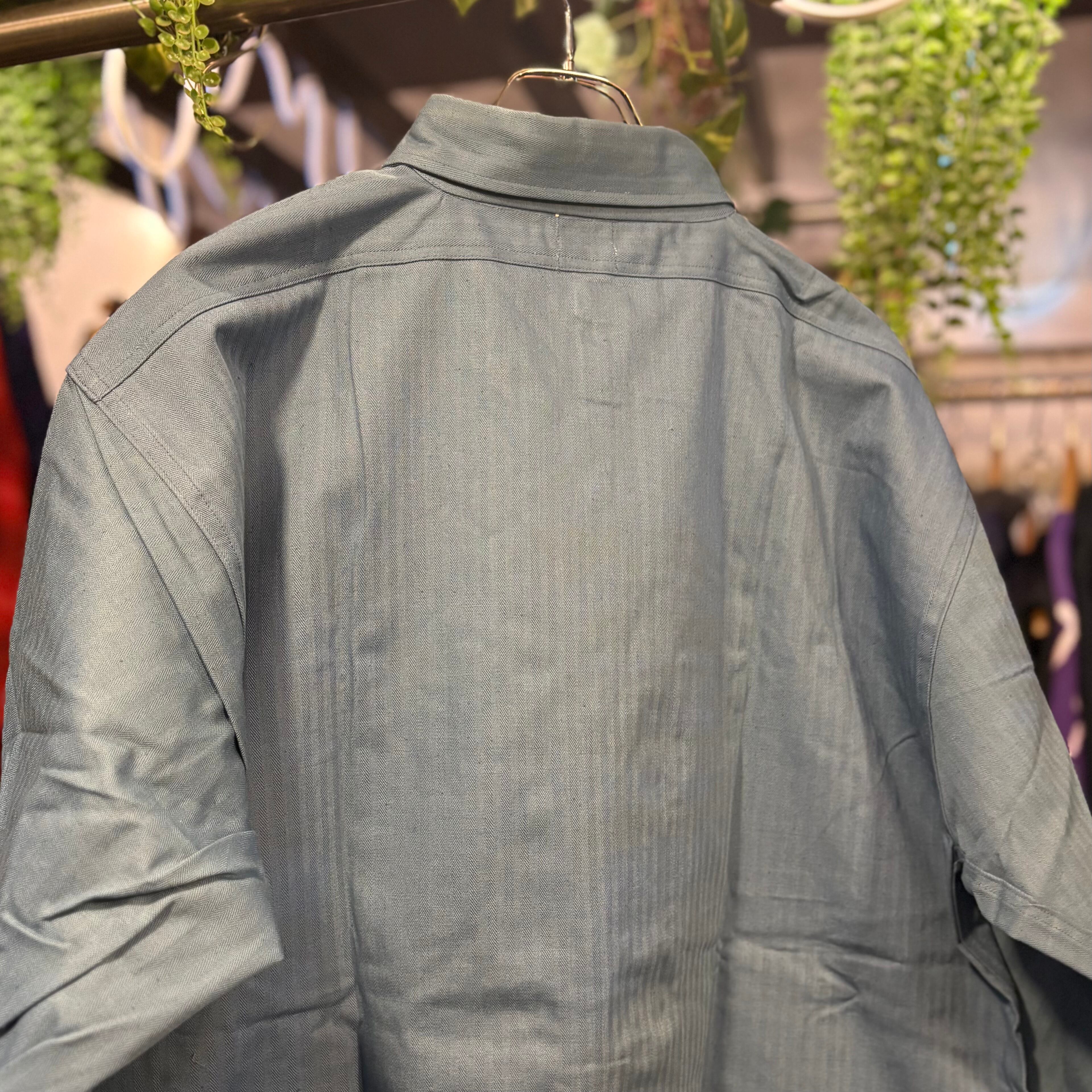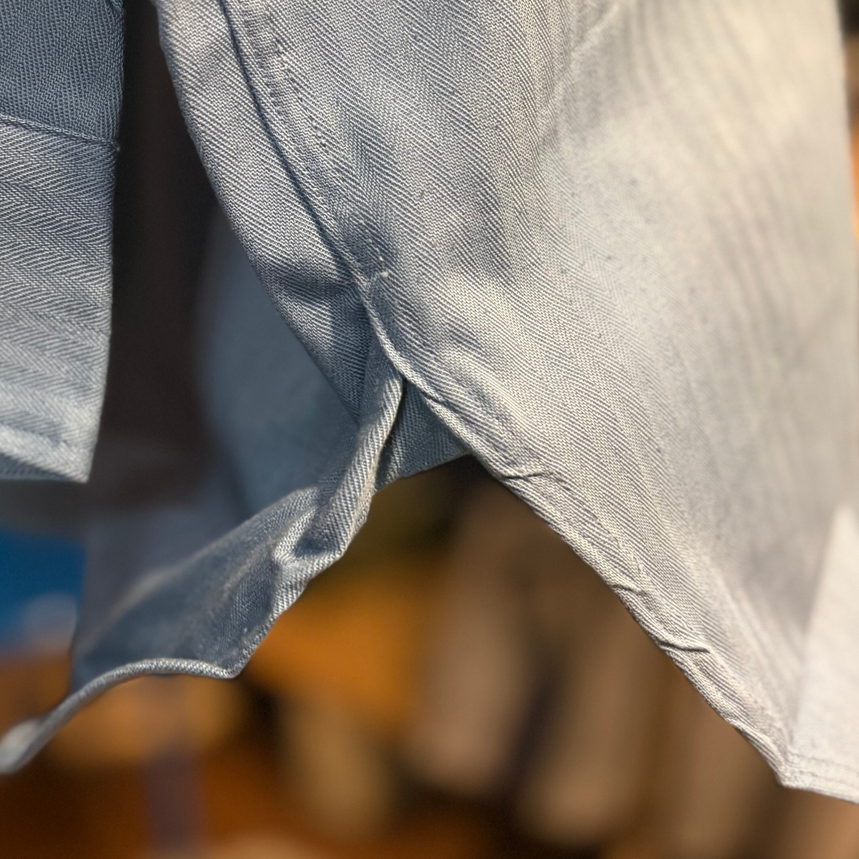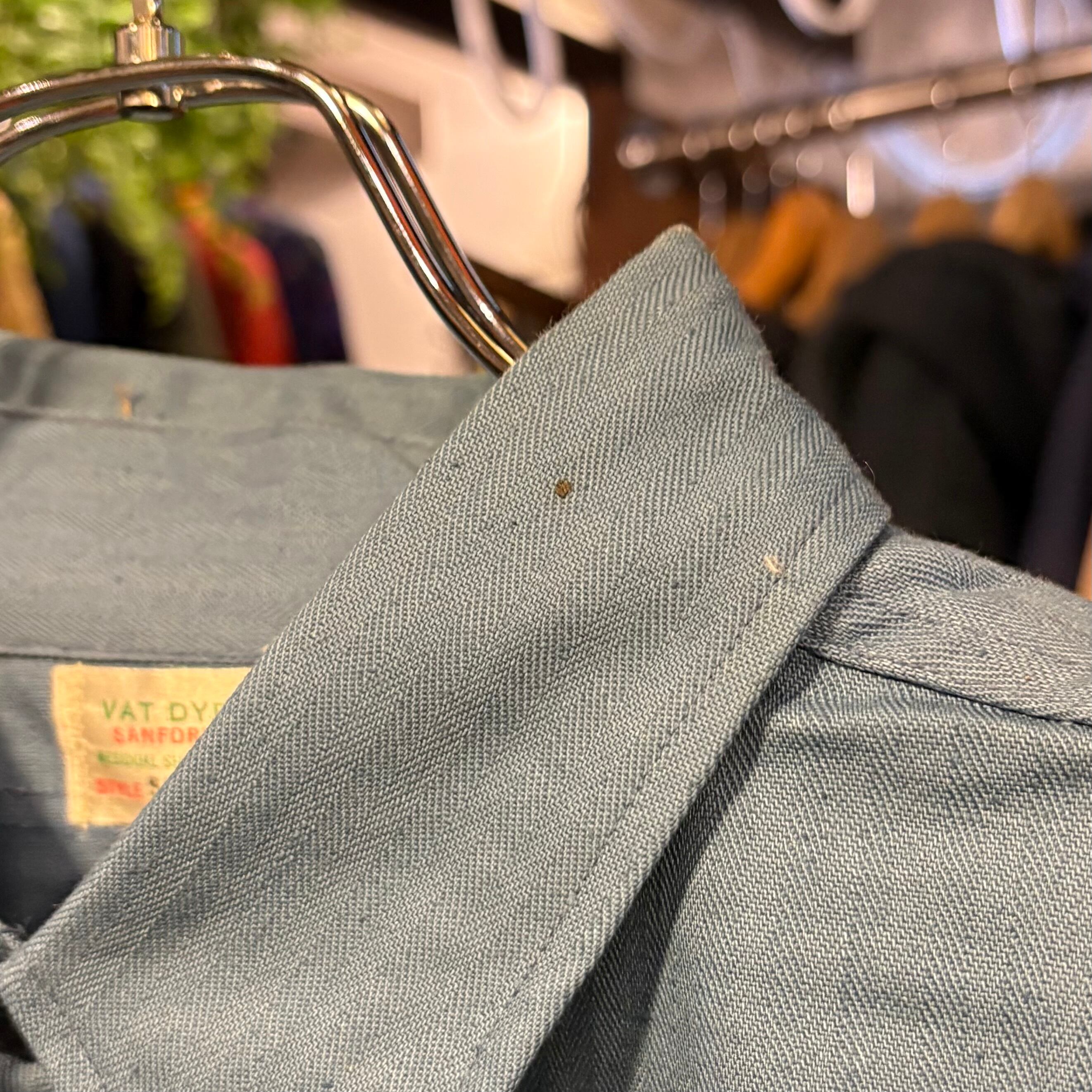 バット染料ならではの独特な色味が古いワークシャツらしさを更に加速させています。