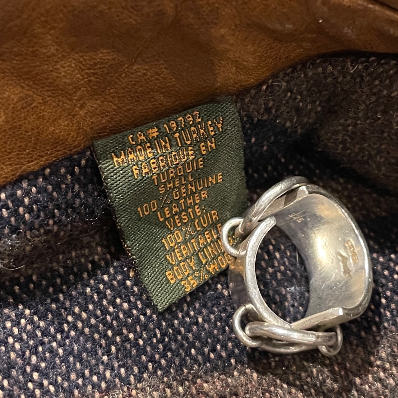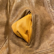 その他にもサイズ/ブランドタグも革そしてポケットの袋までも革を用いる圧巻の作り込み…