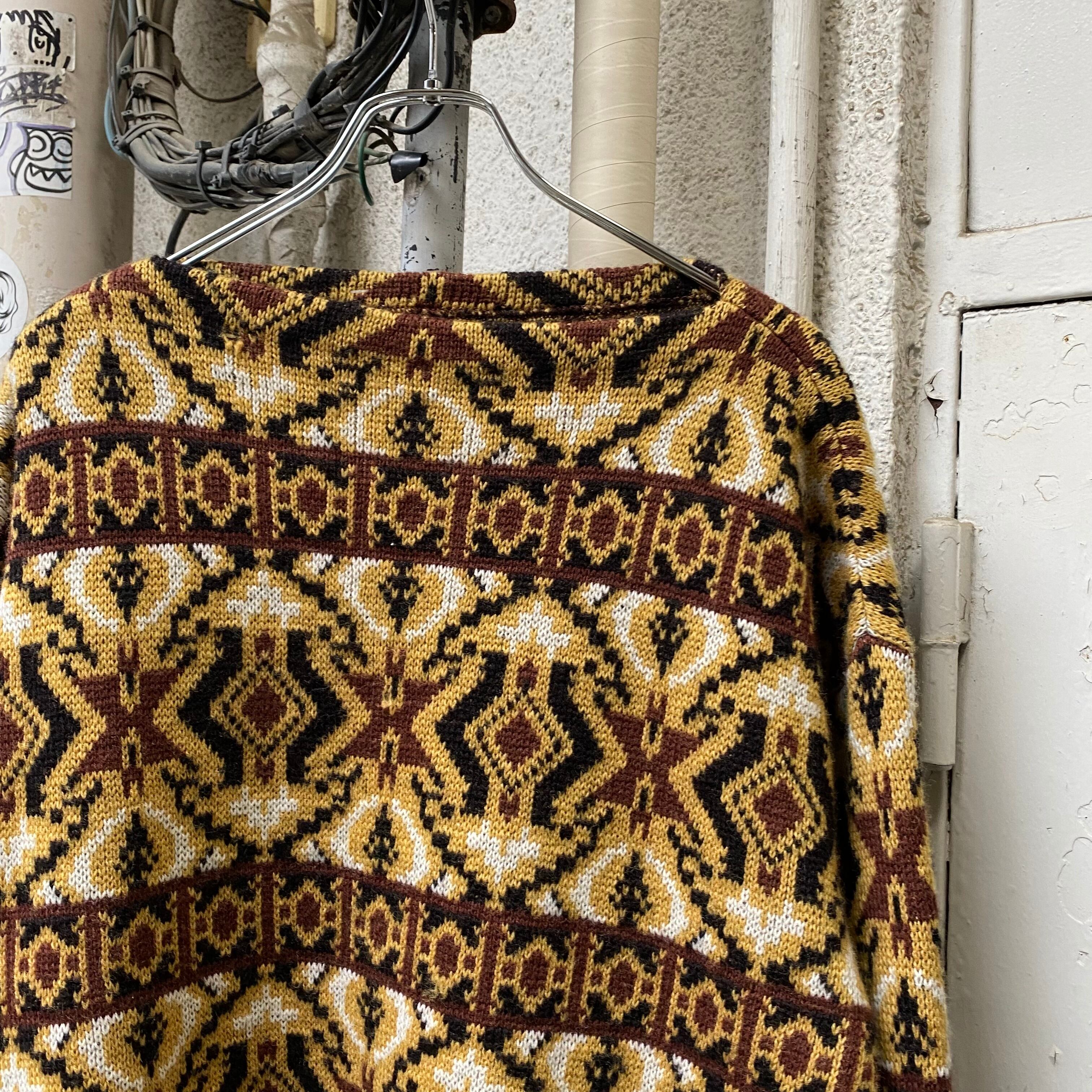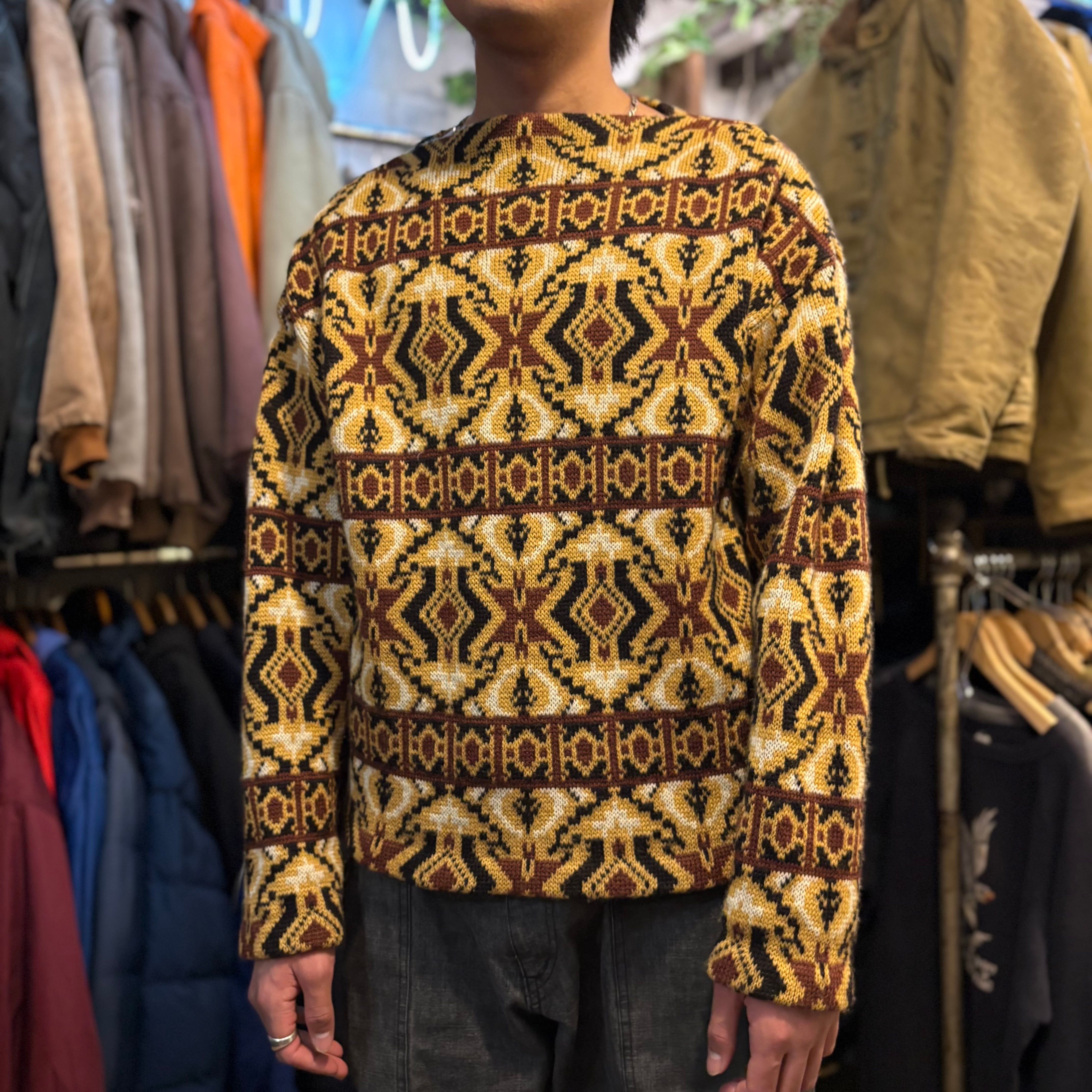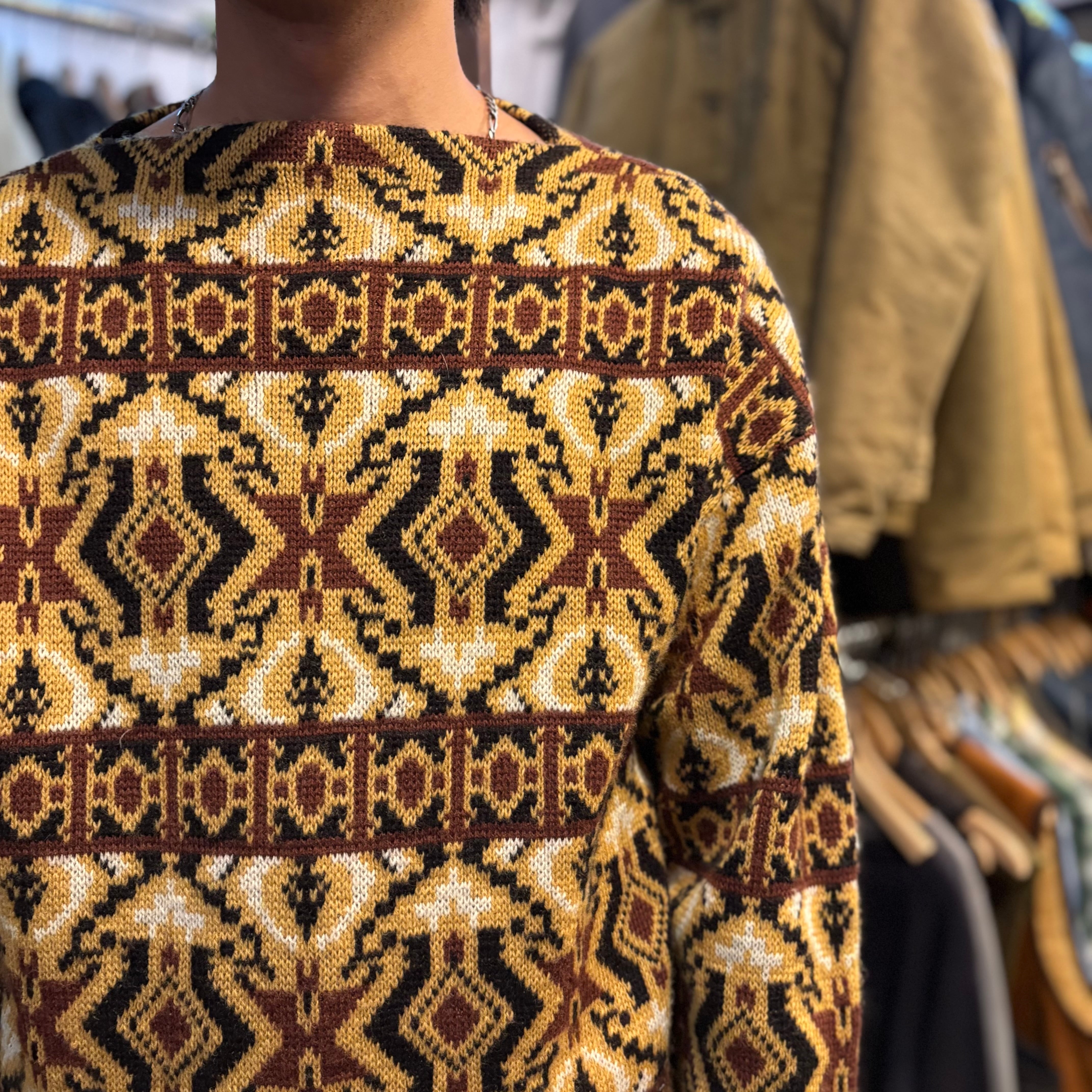 ヴィンテージのニットらしいボートネックの柄セーター。
