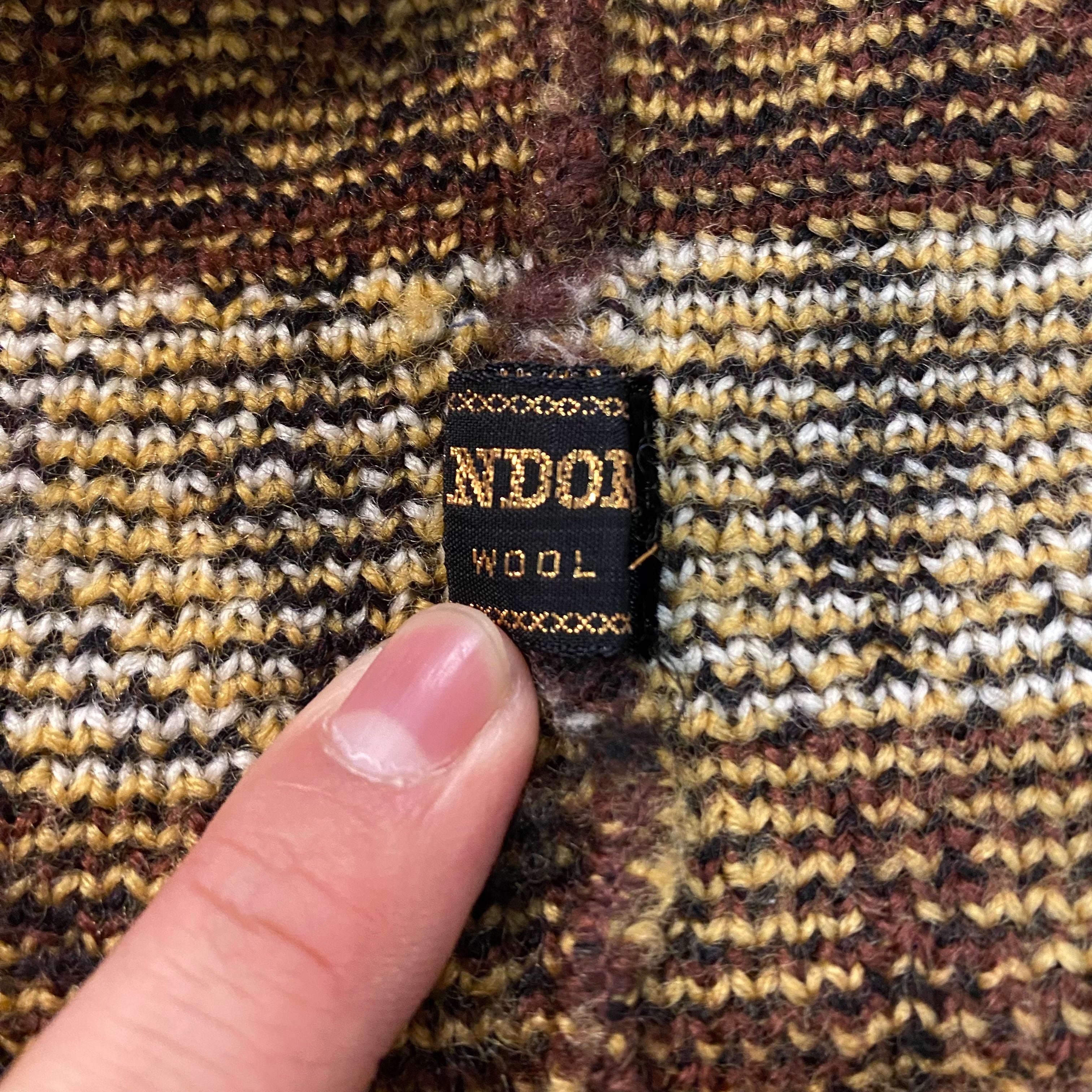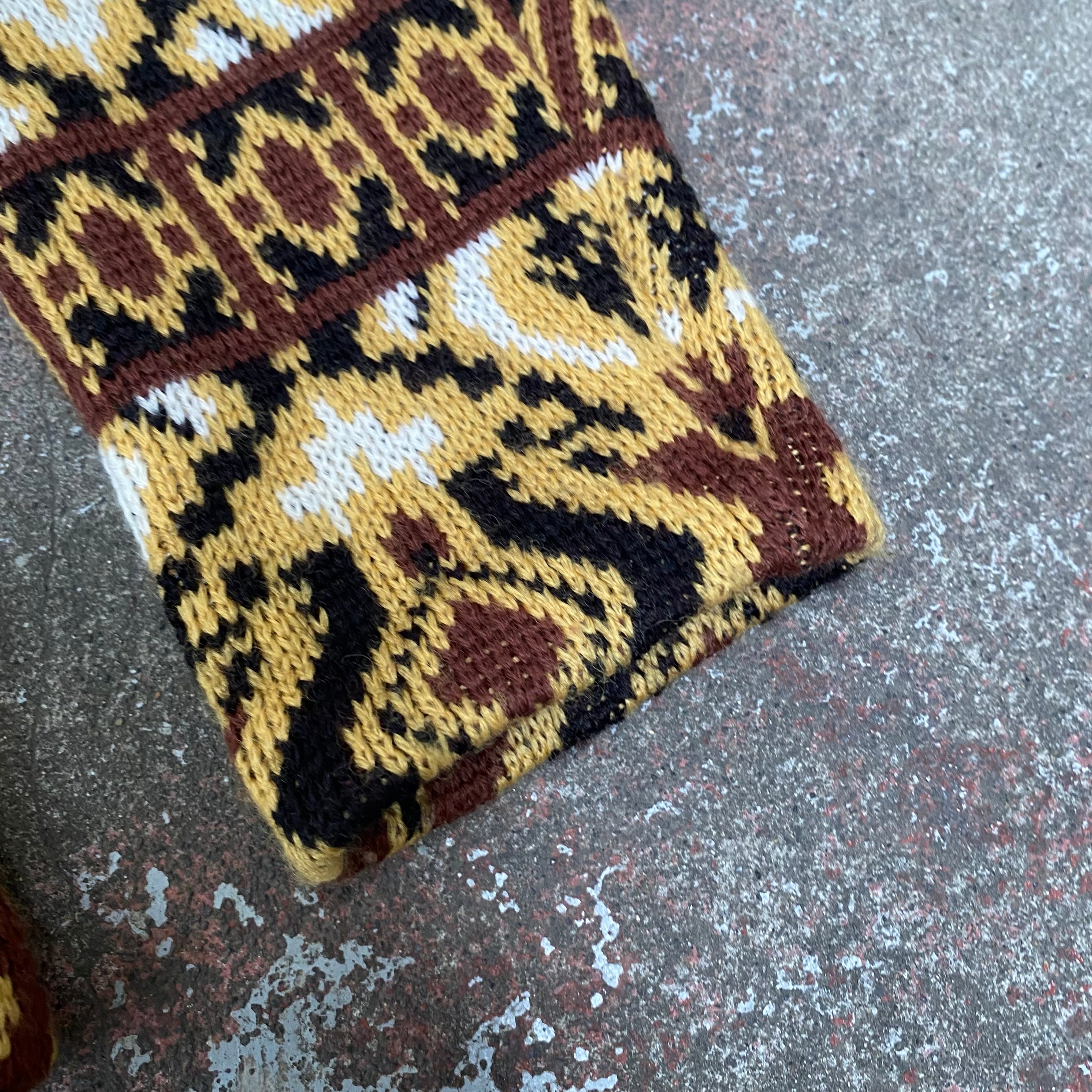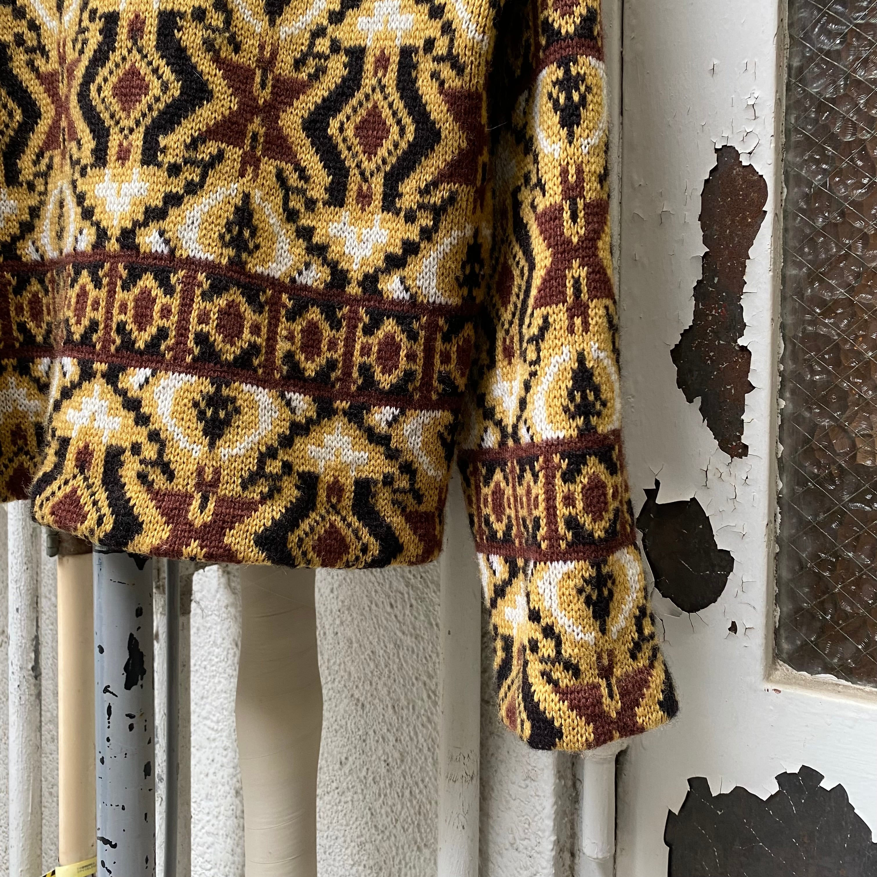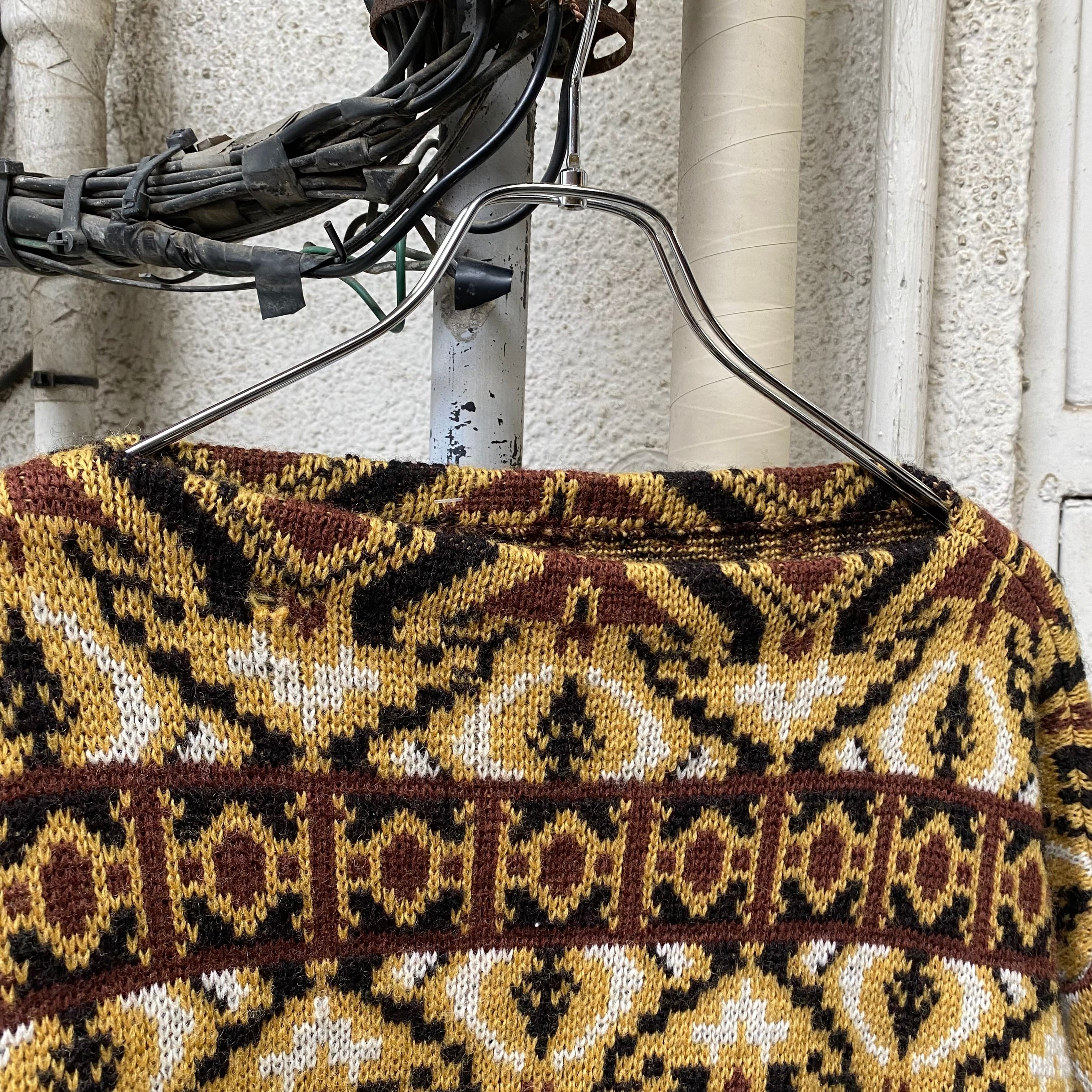古いセーターだと無地やワッペンが貼られている個体が多い印象なので、このような良い柄のセーターってのも珍しいかと。