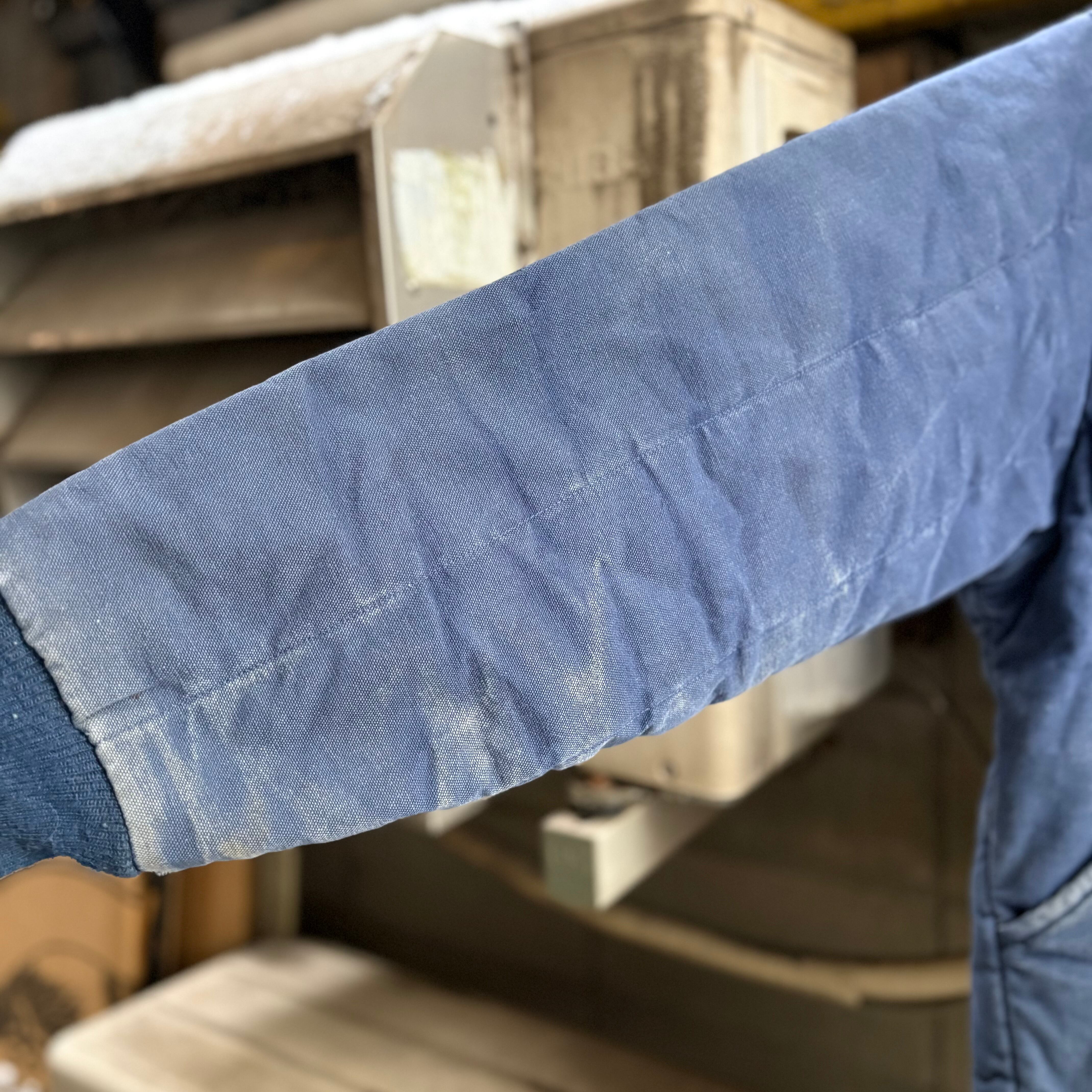 フェードしたダック生地がナス紺に変化した雰囲気のあるザ・ワークな一枚。