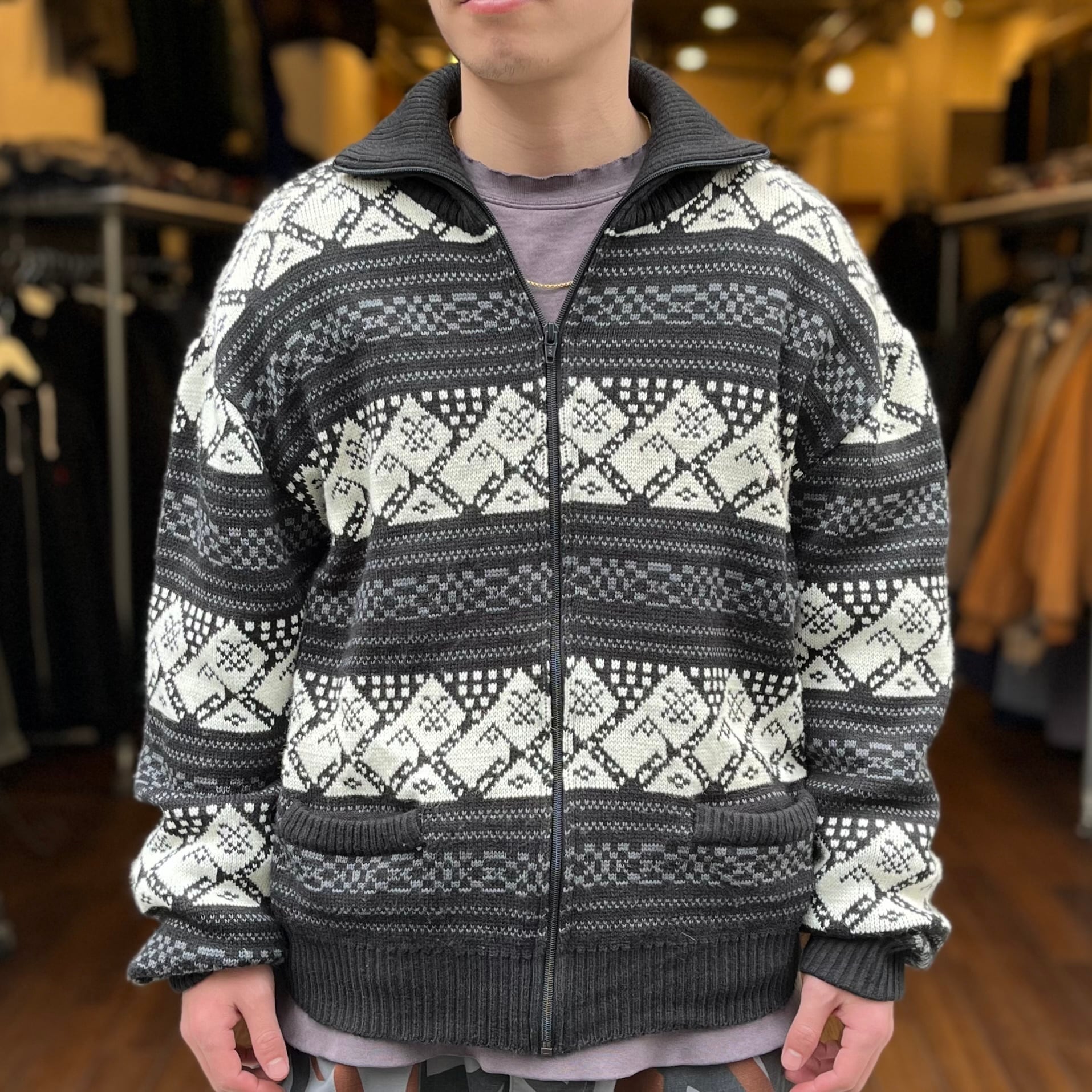 【モノクロ】Hardwood&Pine Zip up Knit Sweater