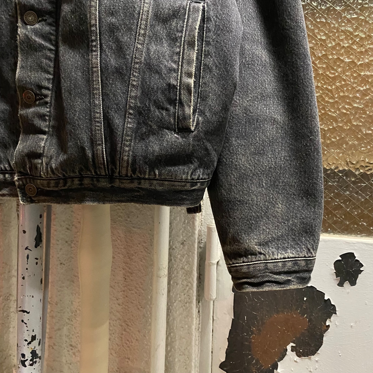 色もまだ残っておりますのでまだまだ着られるトラッカージャケットです。