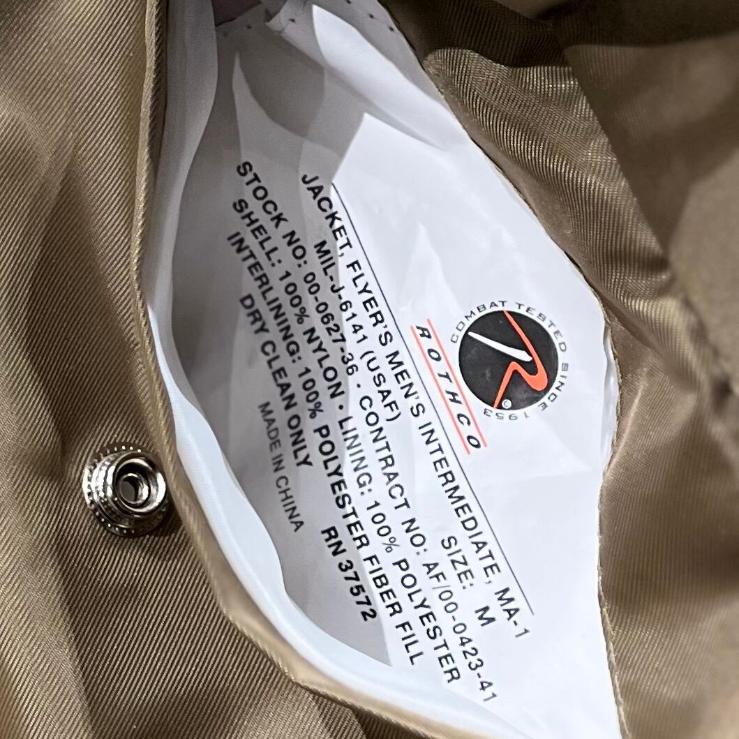 こちらはそんなROTHCO製MA-1の中でも抜群の色合いとミントなコンディションが特徴です
