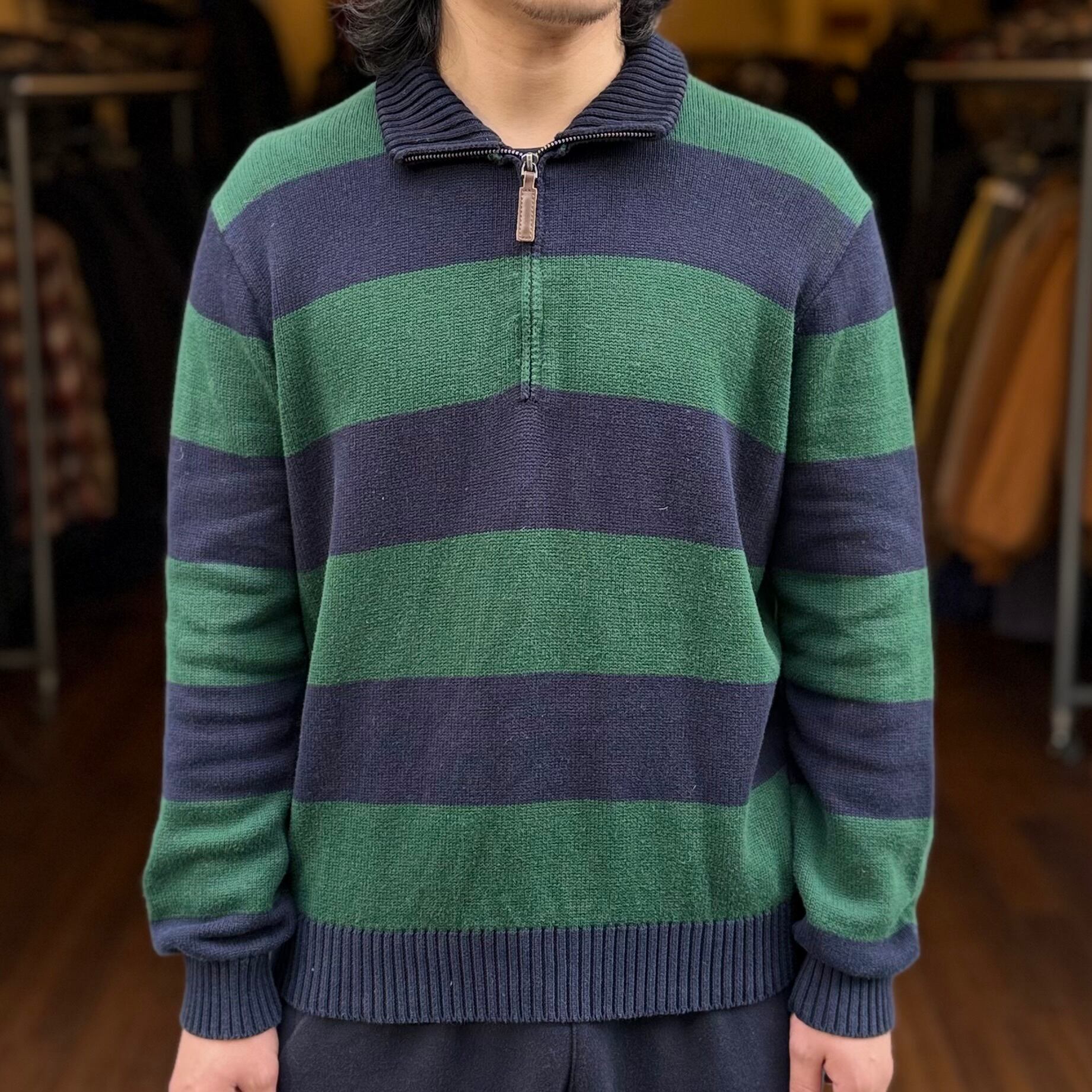 【紺×緑】Brandy Melville Half Zip Cotton Knit