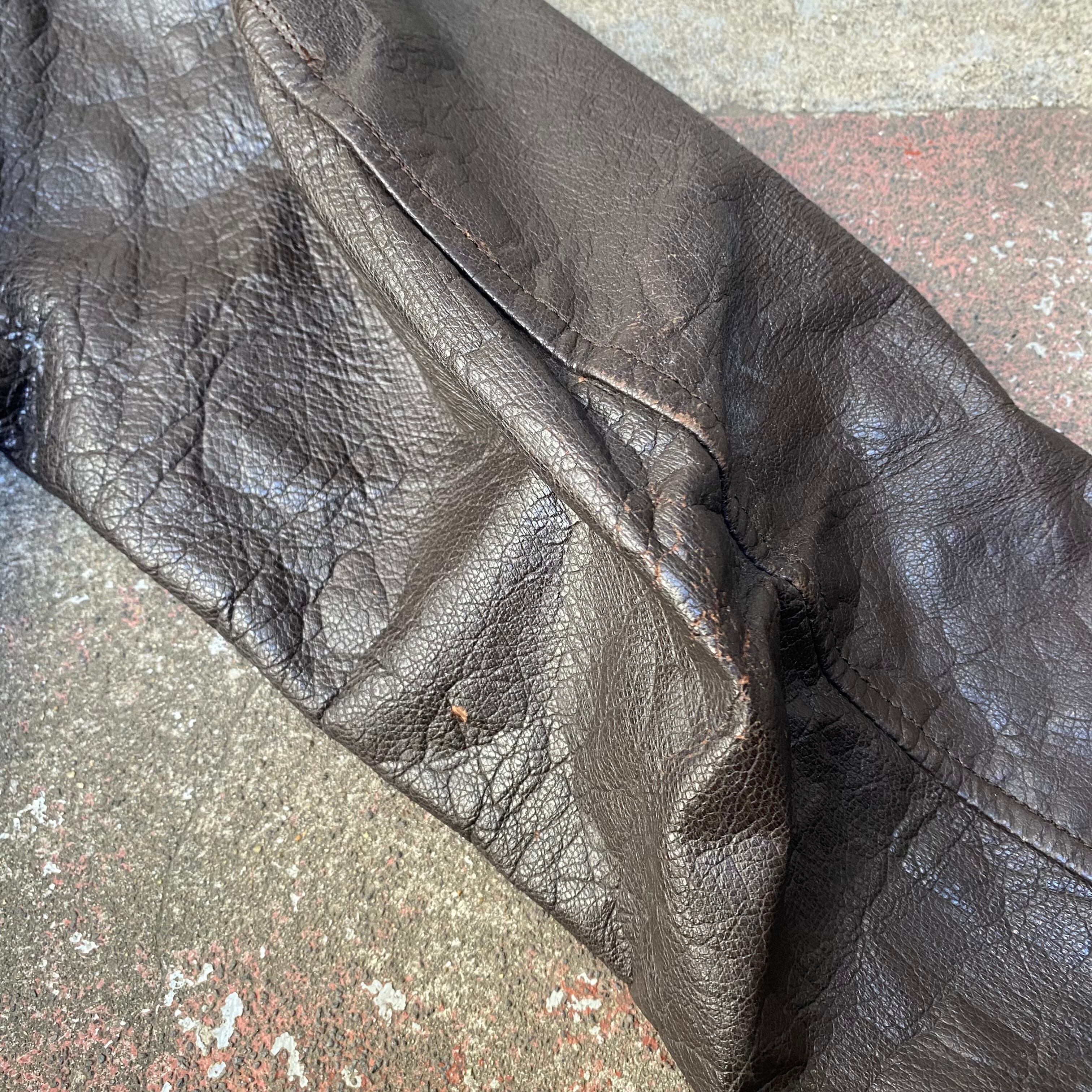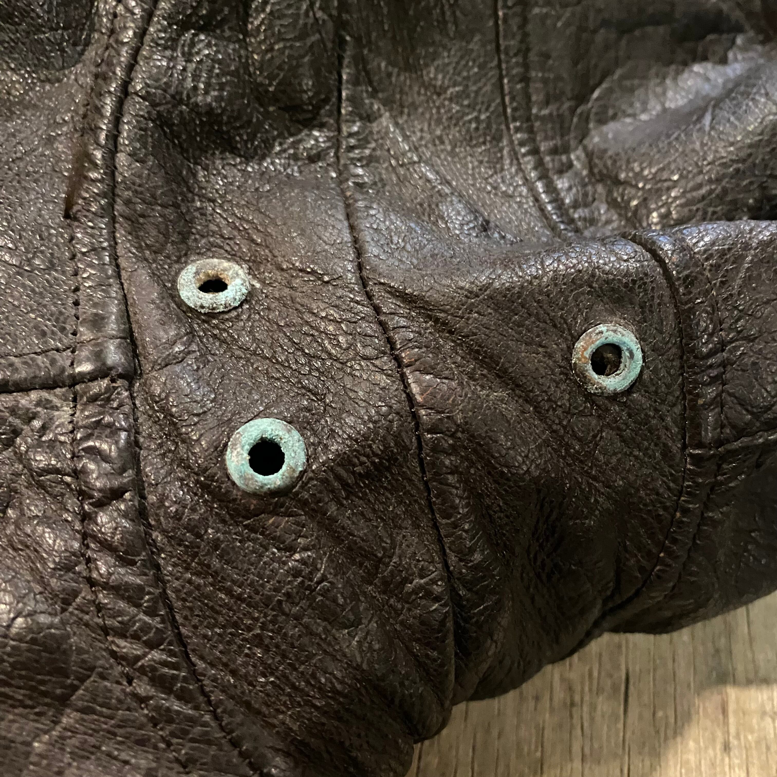 いずれも着用に支障が出るような大きなダメージではないのでビンテージの衣類、レザージャケットに慣れていらっしゃれば問題なくご着用いただけるかと思います。