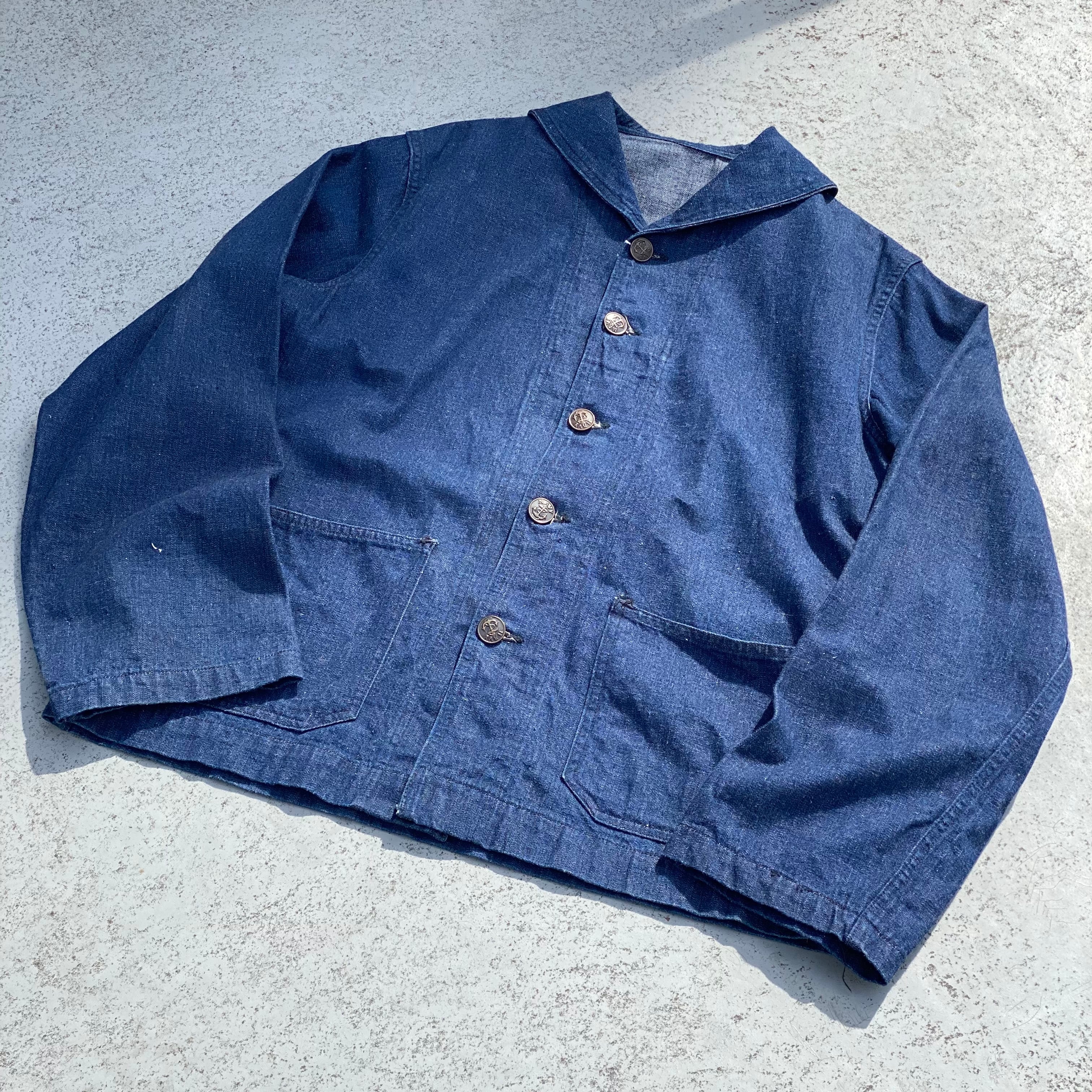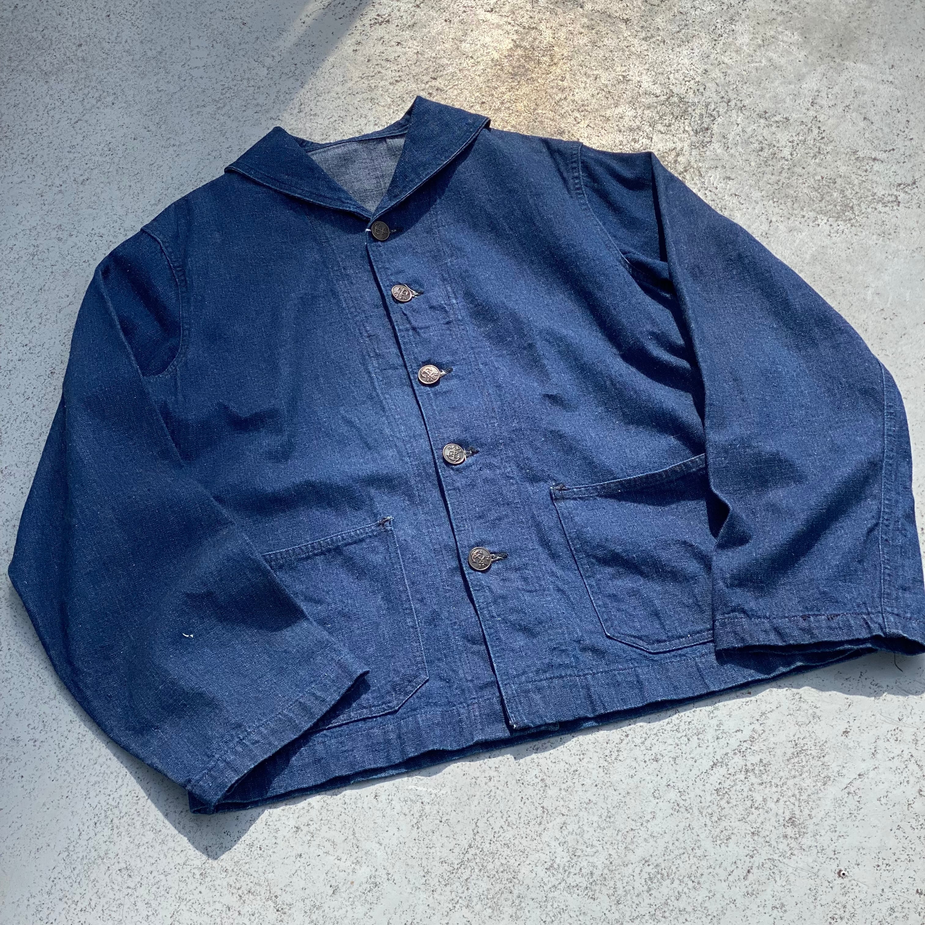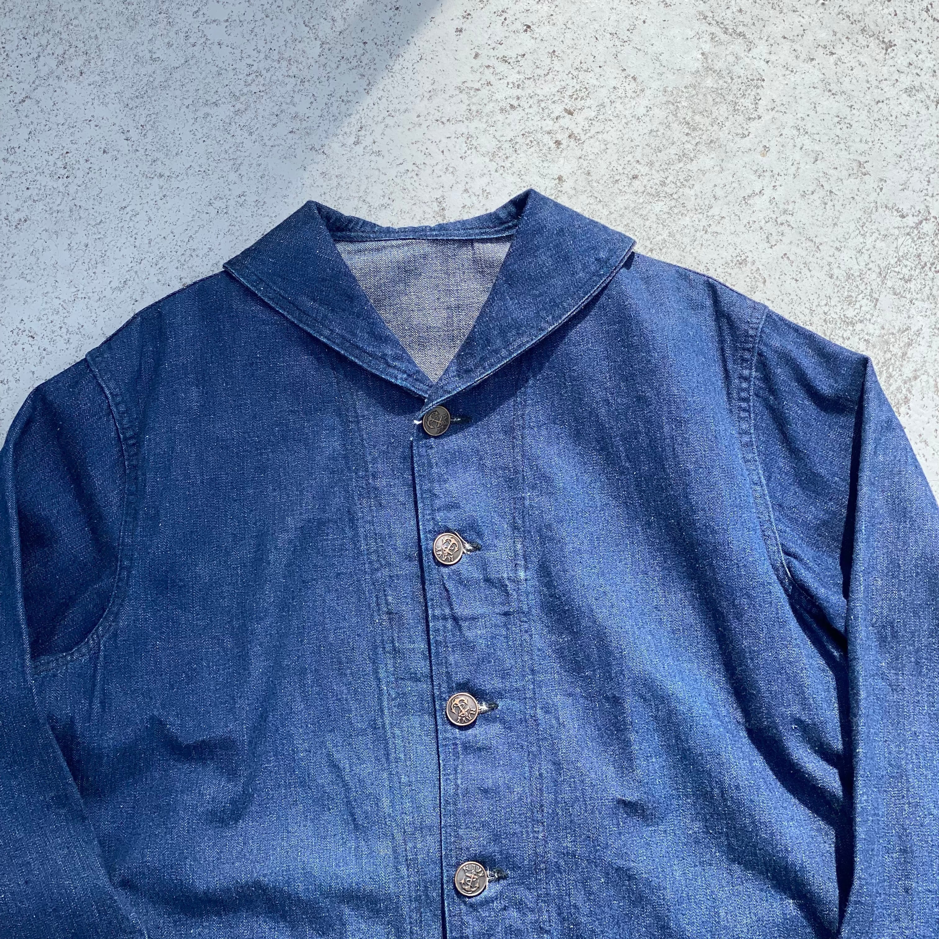 【身幅60㎝!!】40's U.S NAVY Denim Shawl Collar Cover All