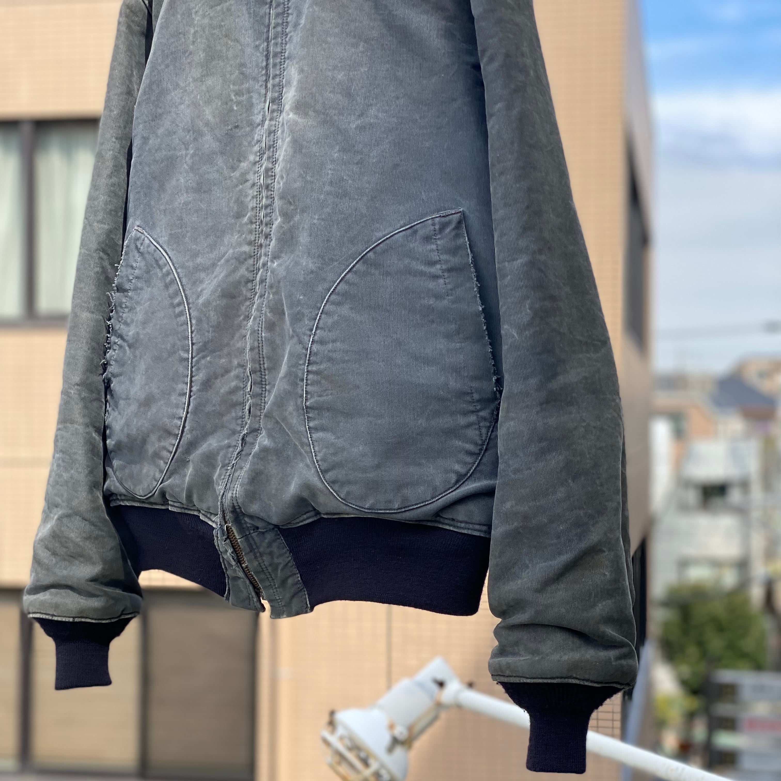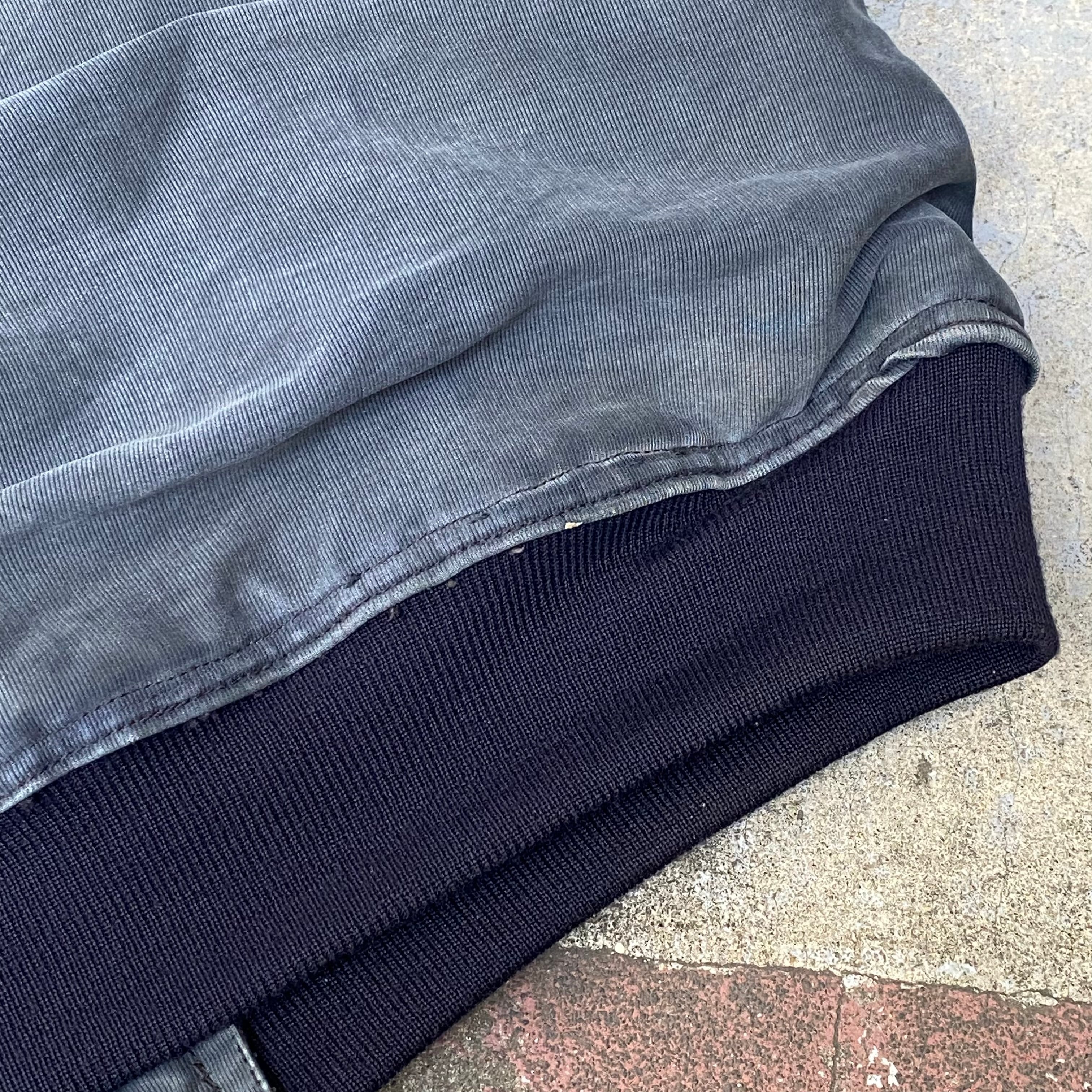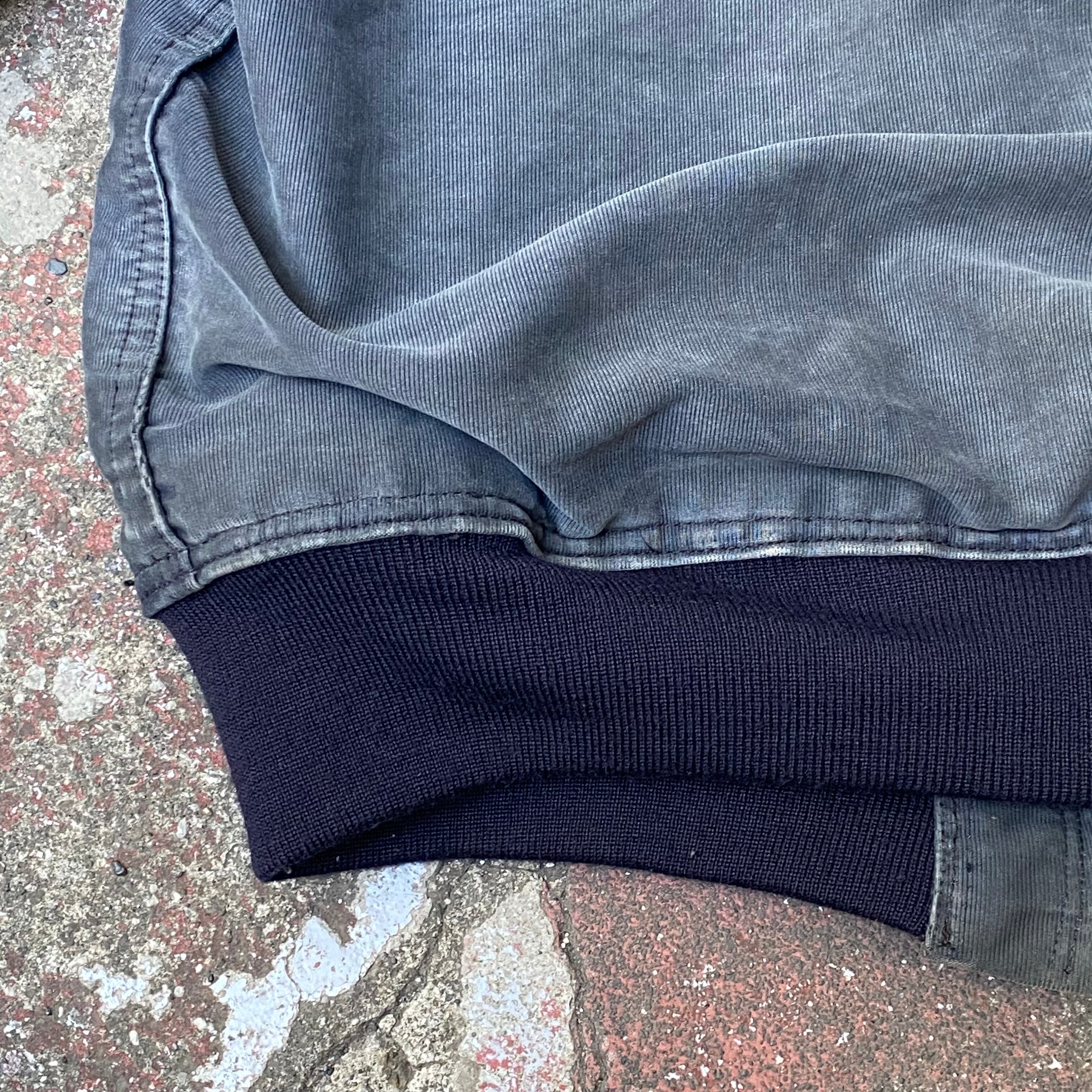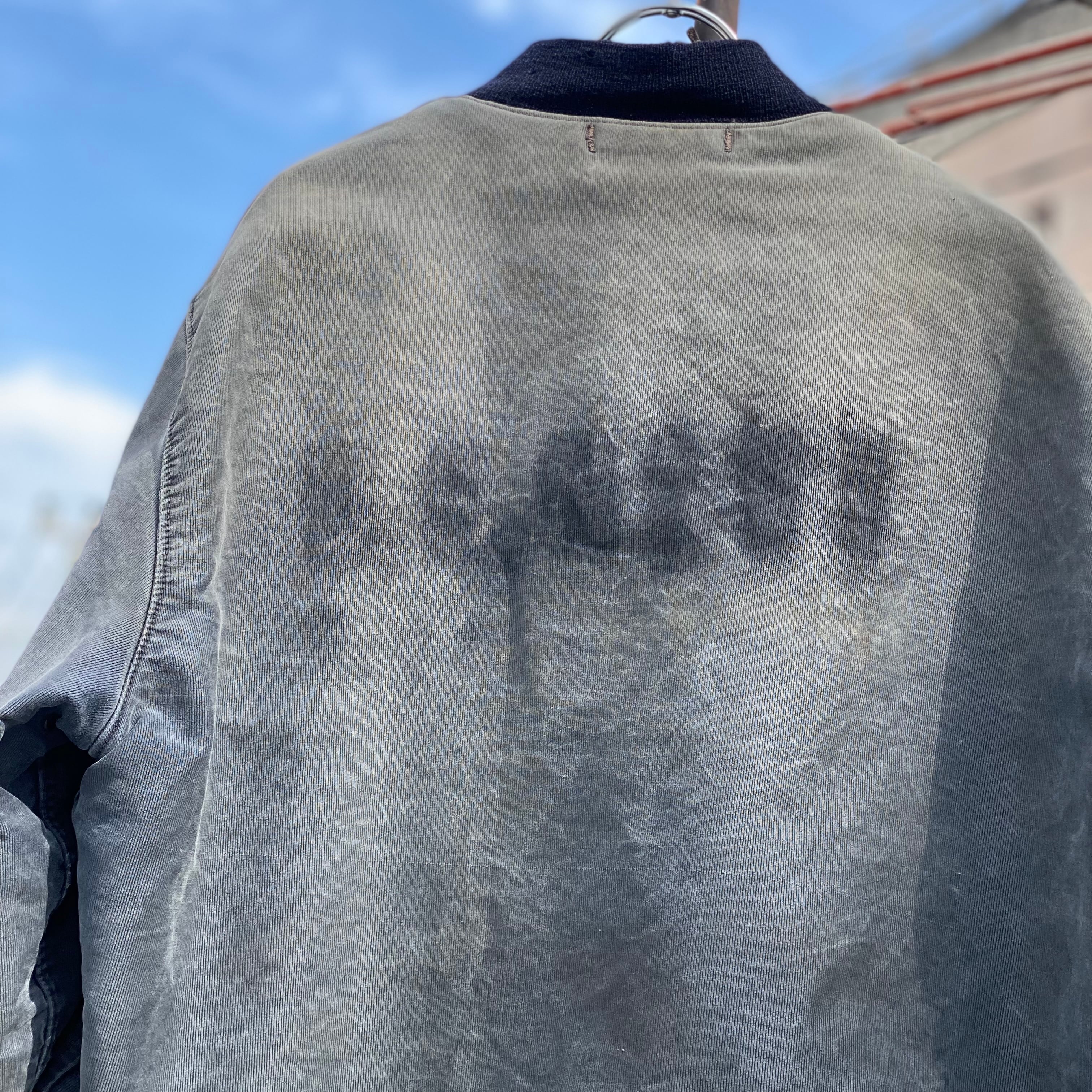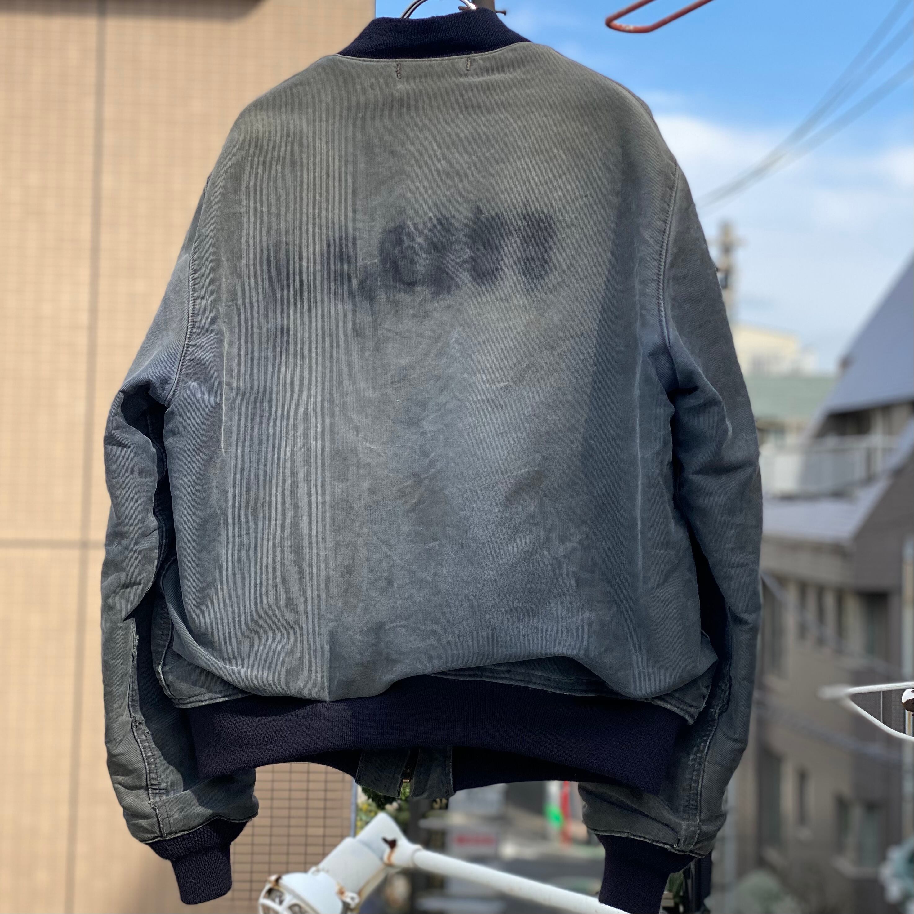 ポケットの入り口にほつれ有り、両袖に小さいダメージ数カ所有り、全体的な使用感有り、裾、袖のリブが交換されてます。タグ欠損。いずれも着用に支障が出るような致命的なものではなく問題なくご着用いただけます。