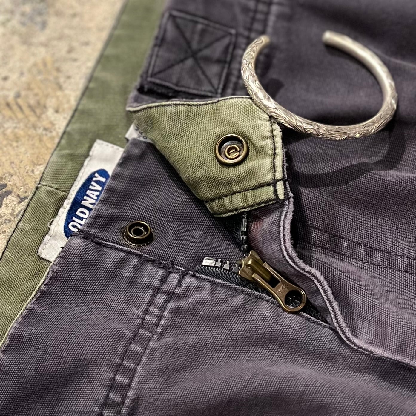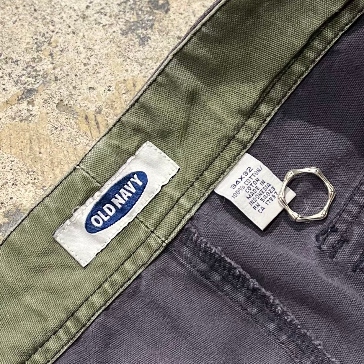 OLD NAVYらしいマチ付きの立体ポケットがサイドに付くタイプのカーゴパンツで、ジップなどのディテールも相まってテクニカルな印象を受けます