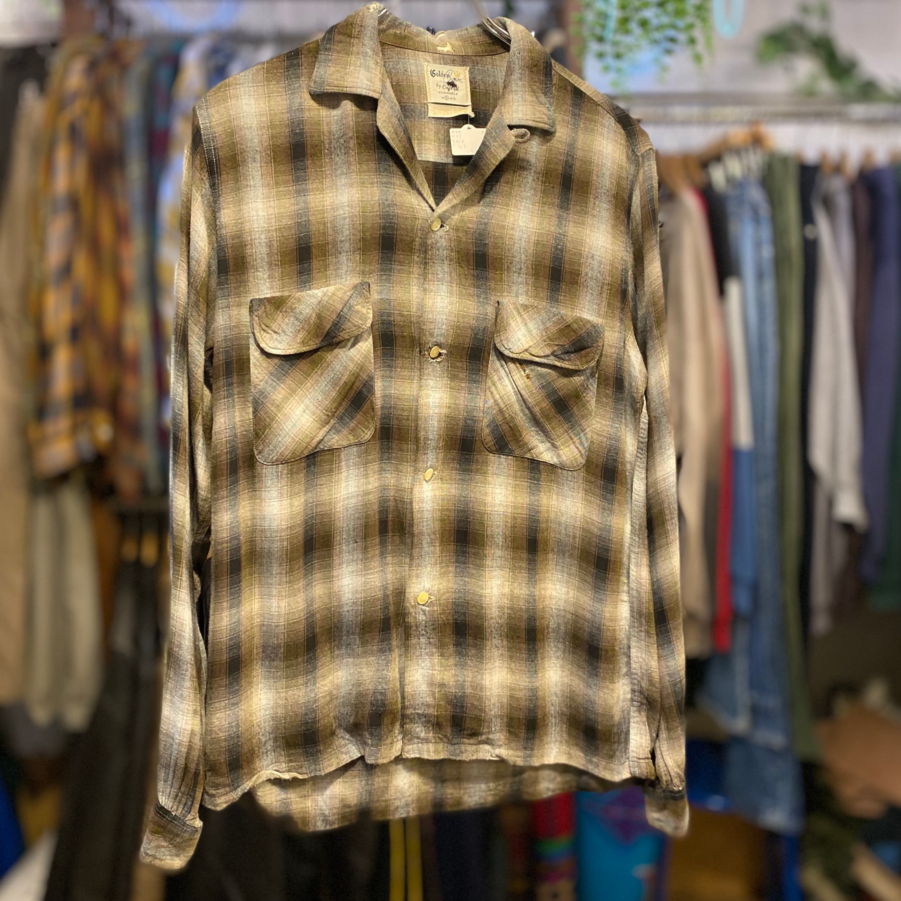 60's Shadow Plaid Rayon Shirt