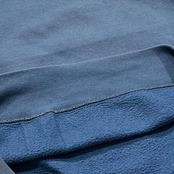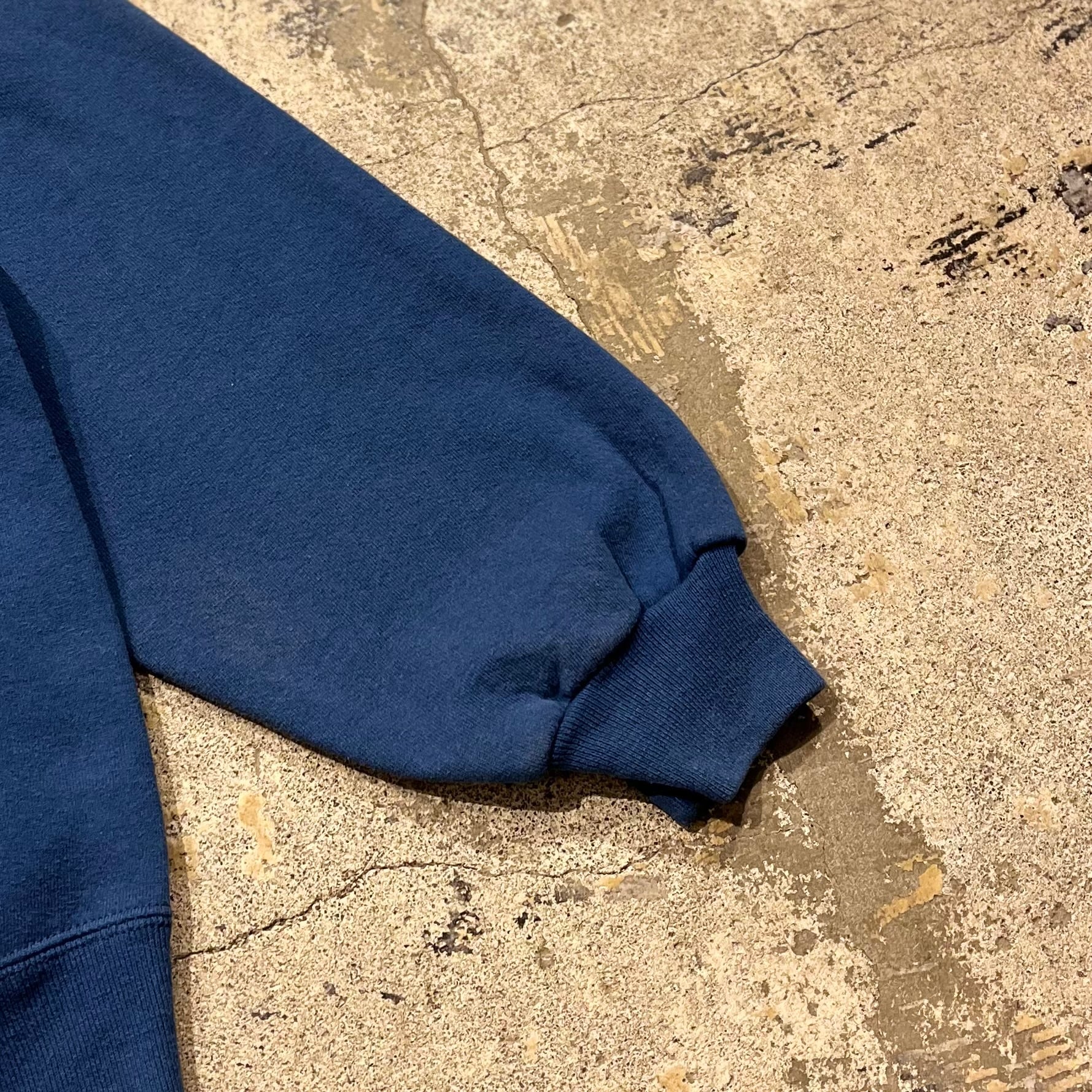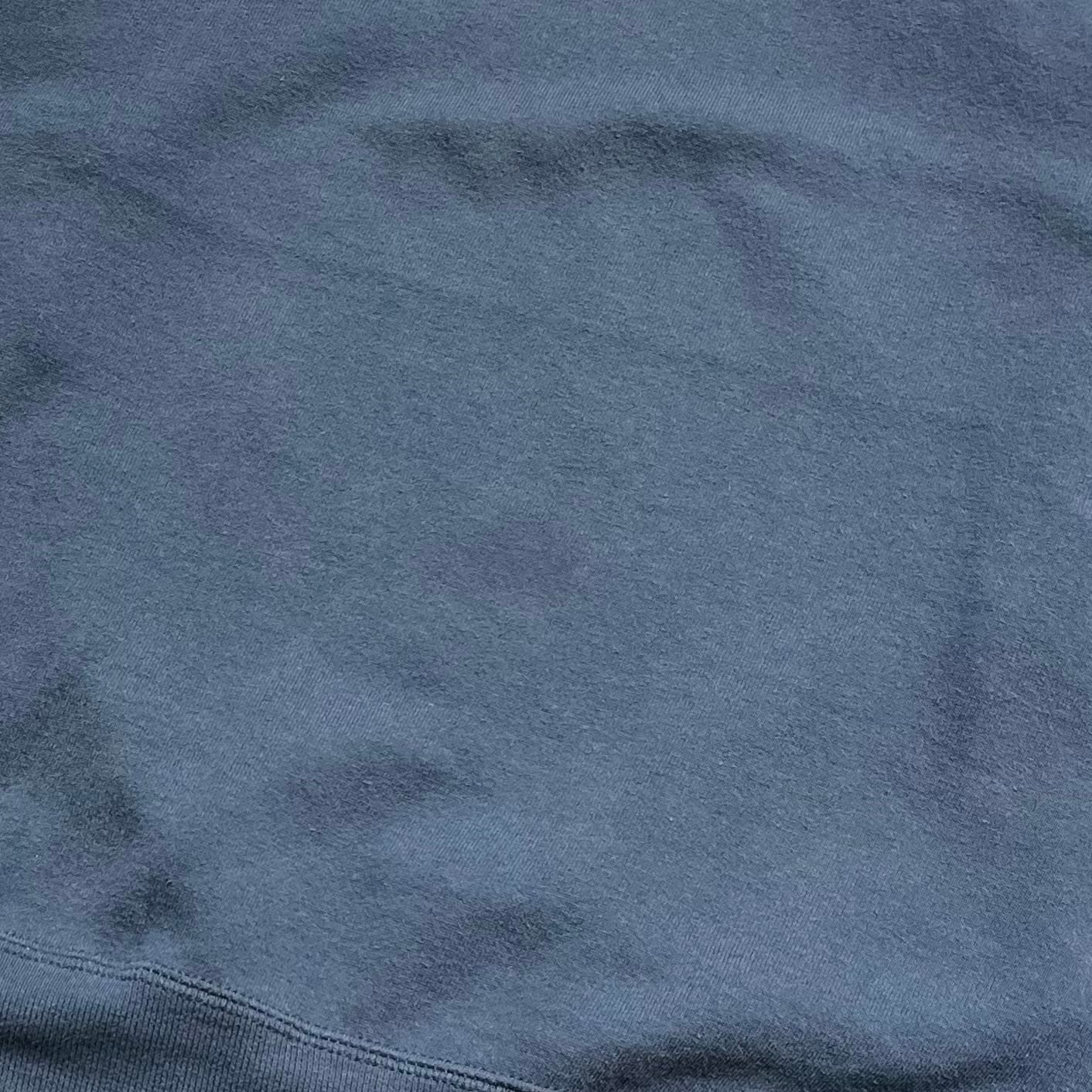 個人的に色落ちしたブルーデニムを履いて、白Tレイヤードちょい出し、からのこのスウェットで完璧な同色コーデを組みたいところです